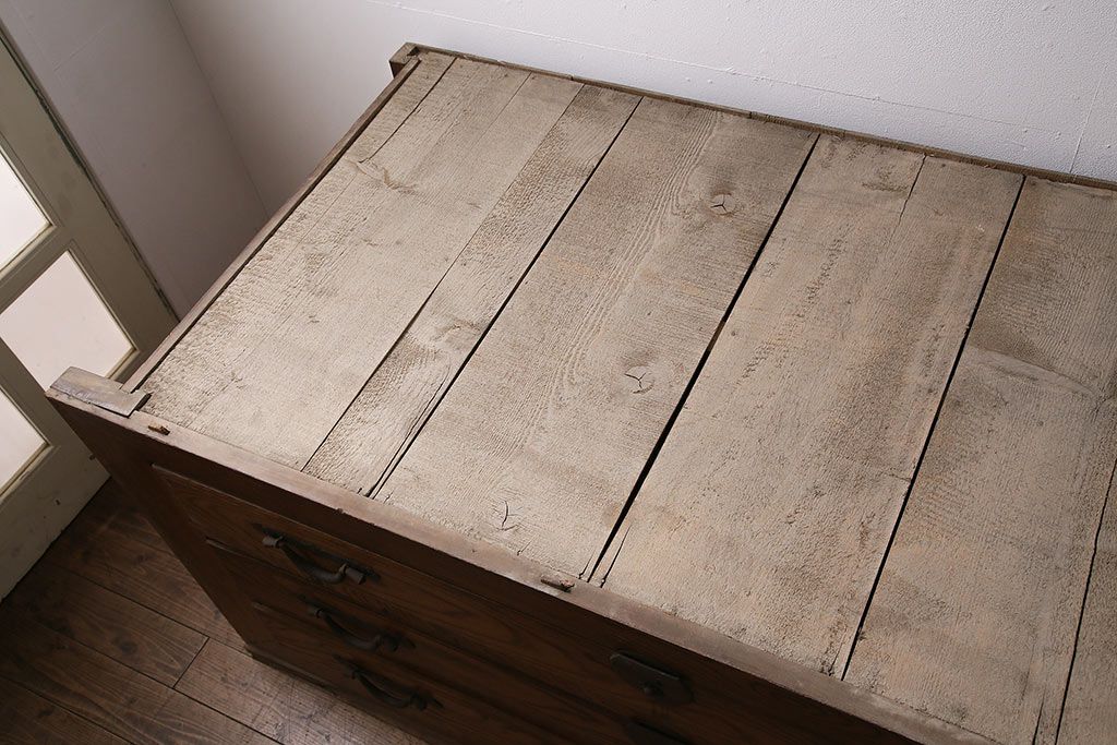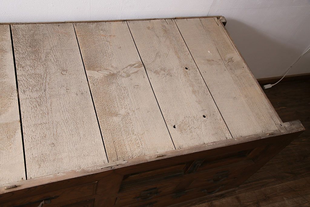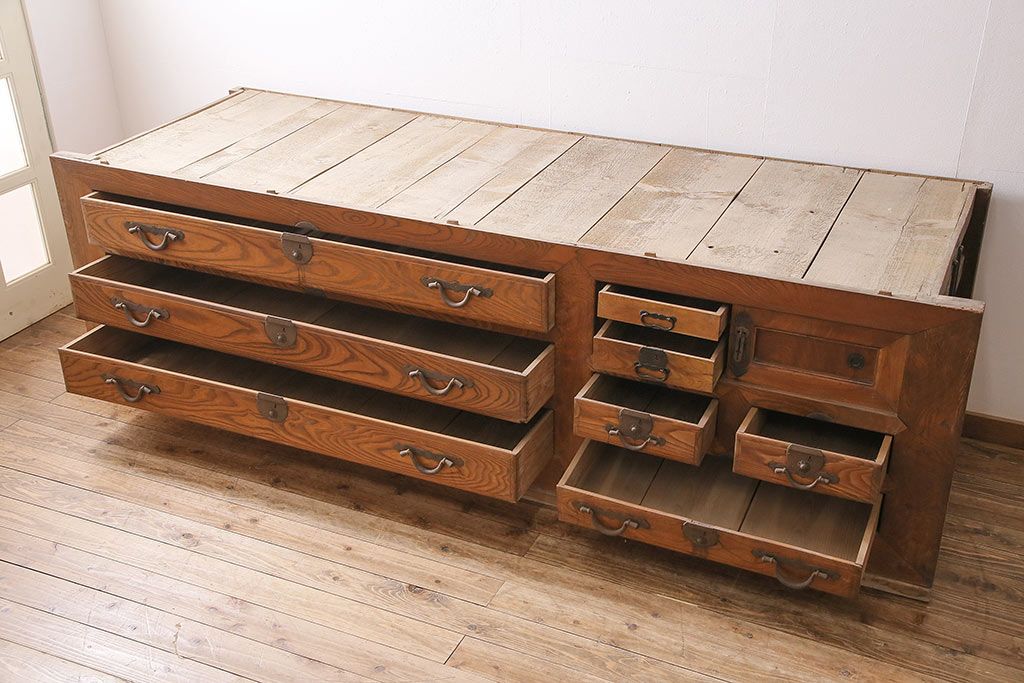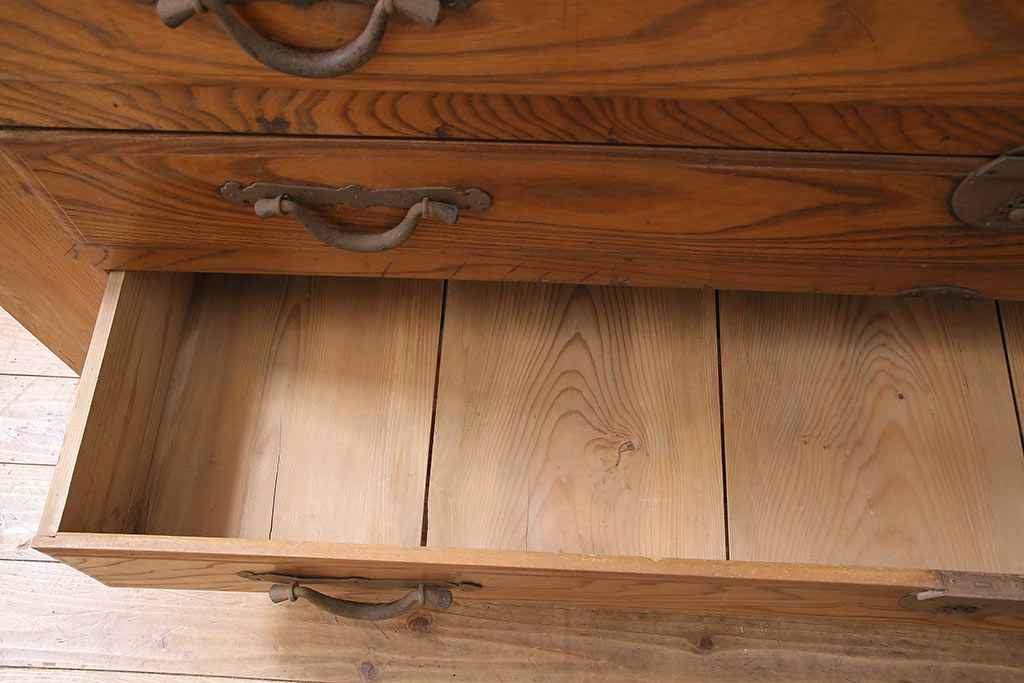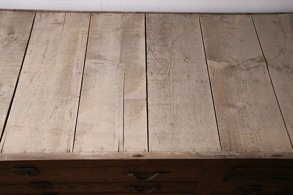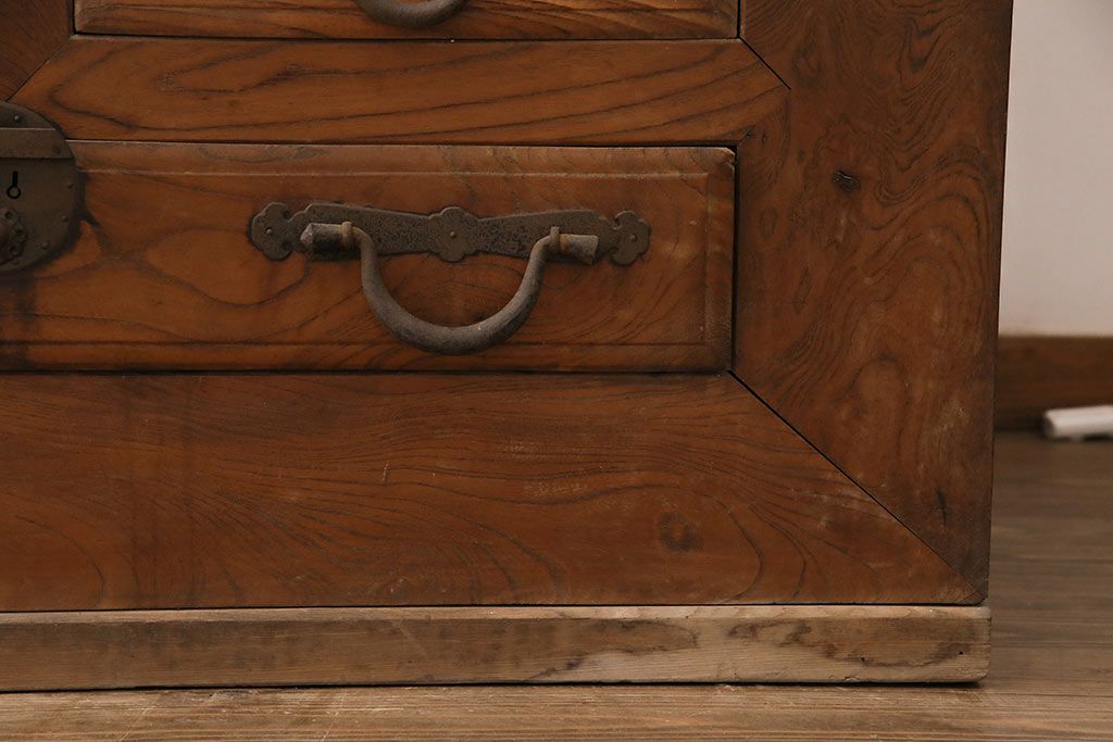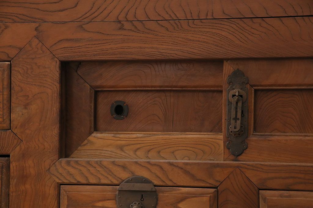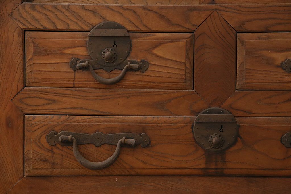 ラフジュ工房> 和箪笥> 夜具箪笥 > 和製アンティーク 前面ケヤキ材 特大サイズで迫力抜群!希少な九尺物の収納箪笥(9尺、布団箪笥、重ね箪笥、水屋箪笥、夜具箪笥)(R-047135)
