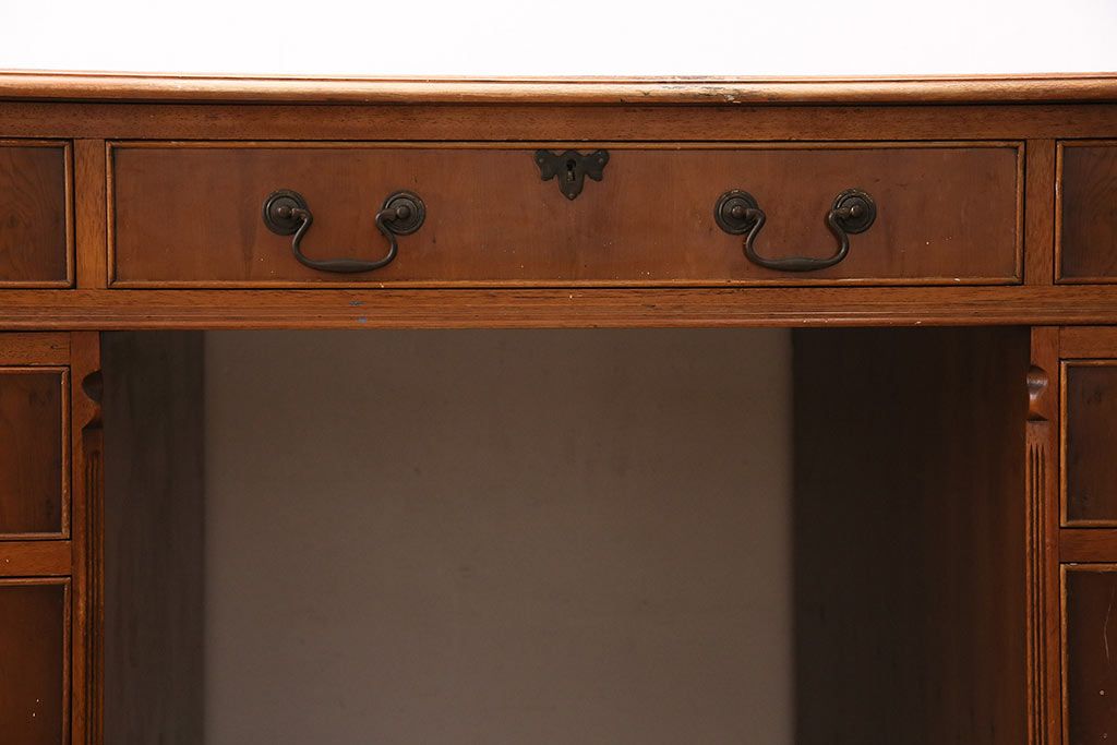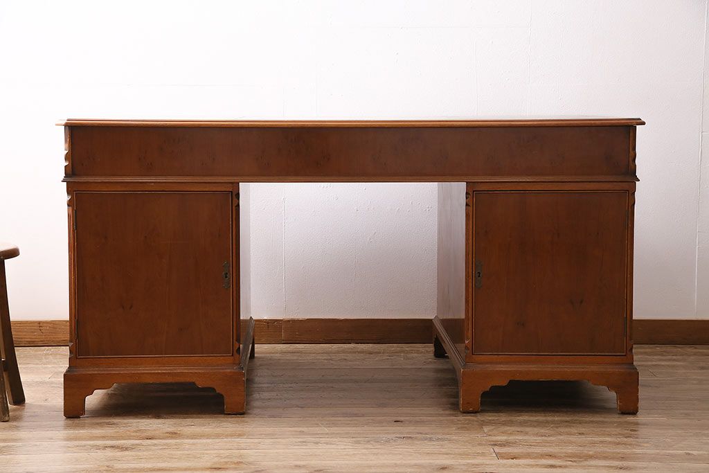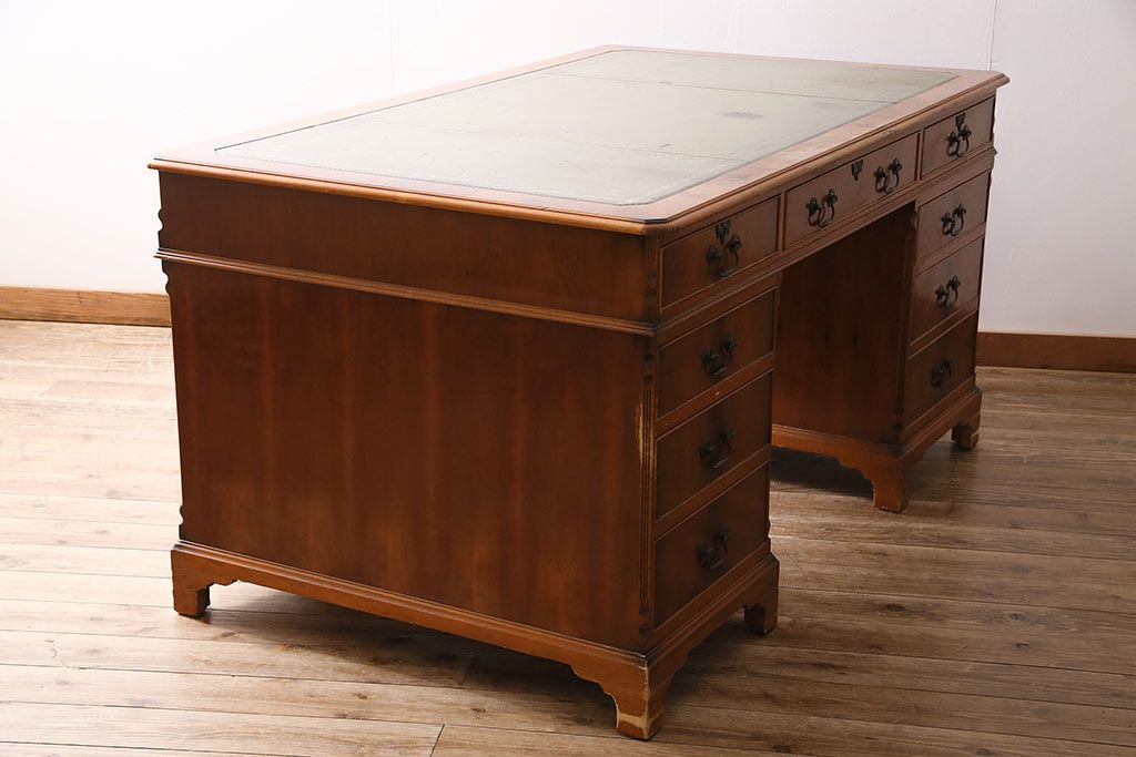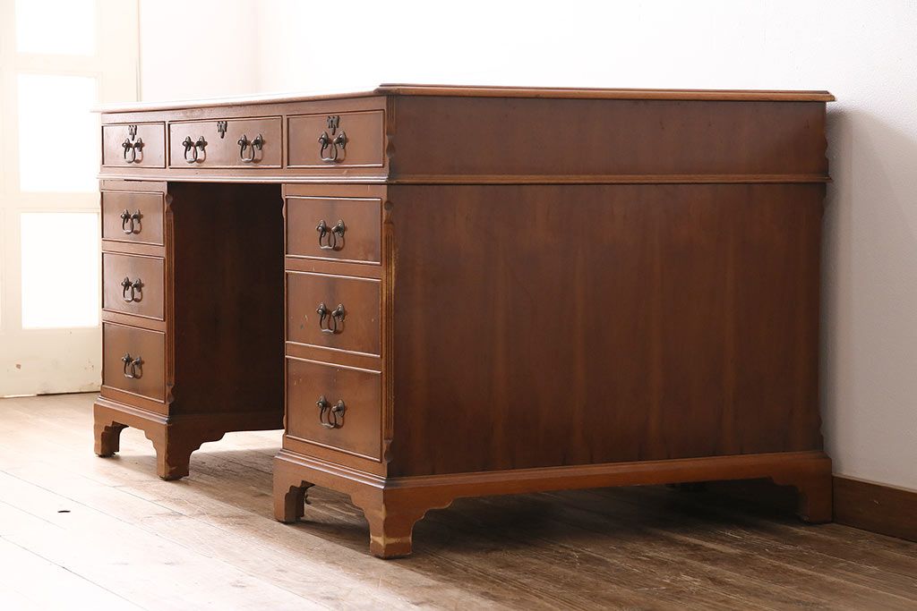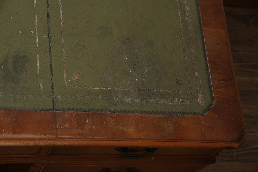 イギリスアンティーク 両面使いが出来るレザートップの両袖デスク(パートナーデスク、机、在宅ワーク、在宅用ワークデスク)(R-047117)
