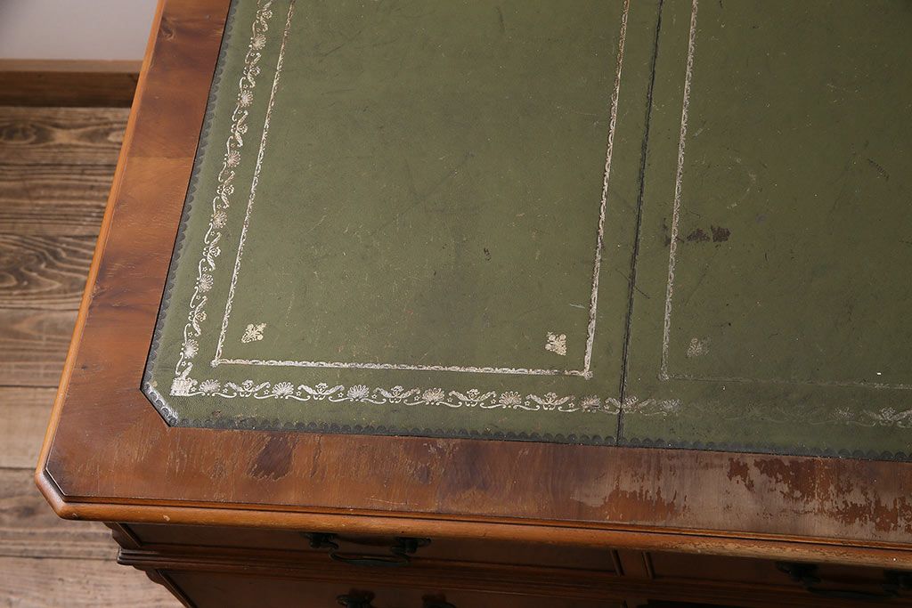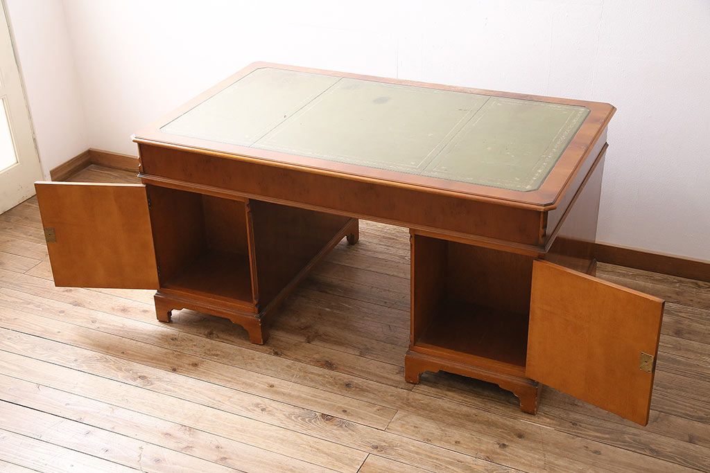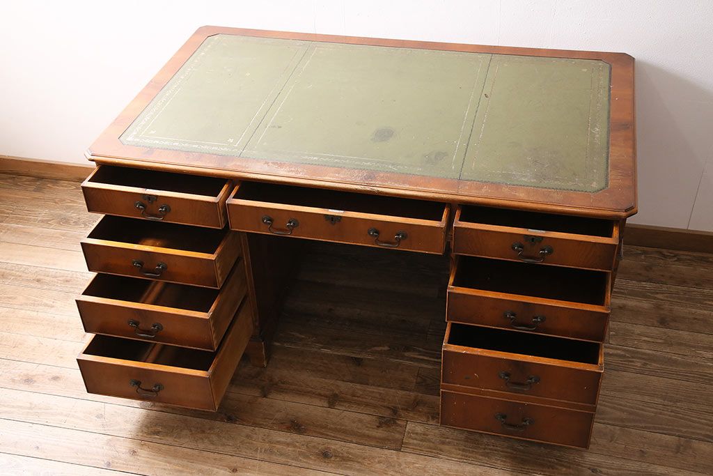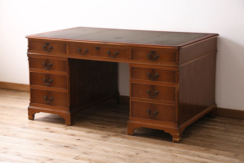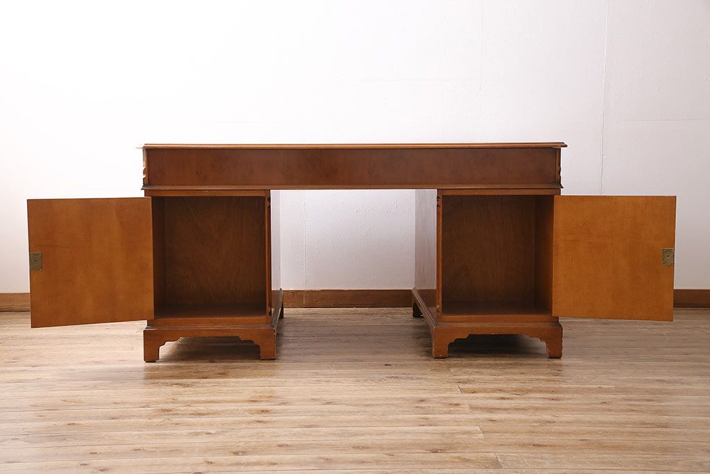 イギリスアンティーク 両面使いが出来るレザートップの両袖デスク(パートナーデスク、机、在宅ワーク、在宅用ワークデスク)(R-047117)