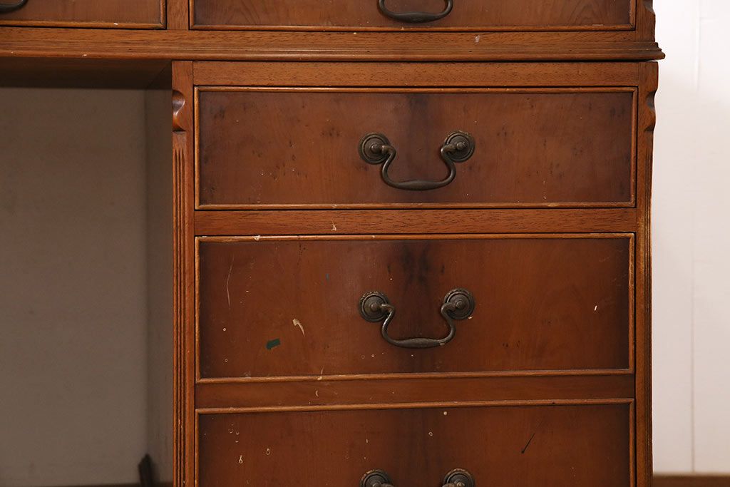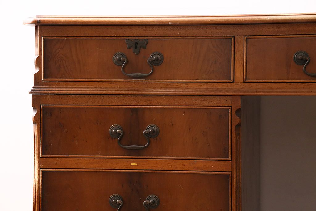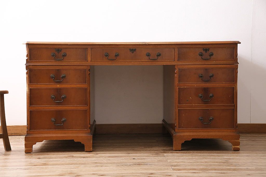 デスク> ワークデスク > イギリスアンティーク 両面使いが出来るレザートップの両袖デスク(パートナーデスク、机、在宅ワーク、在宅用ワークデスク)(R-047117)