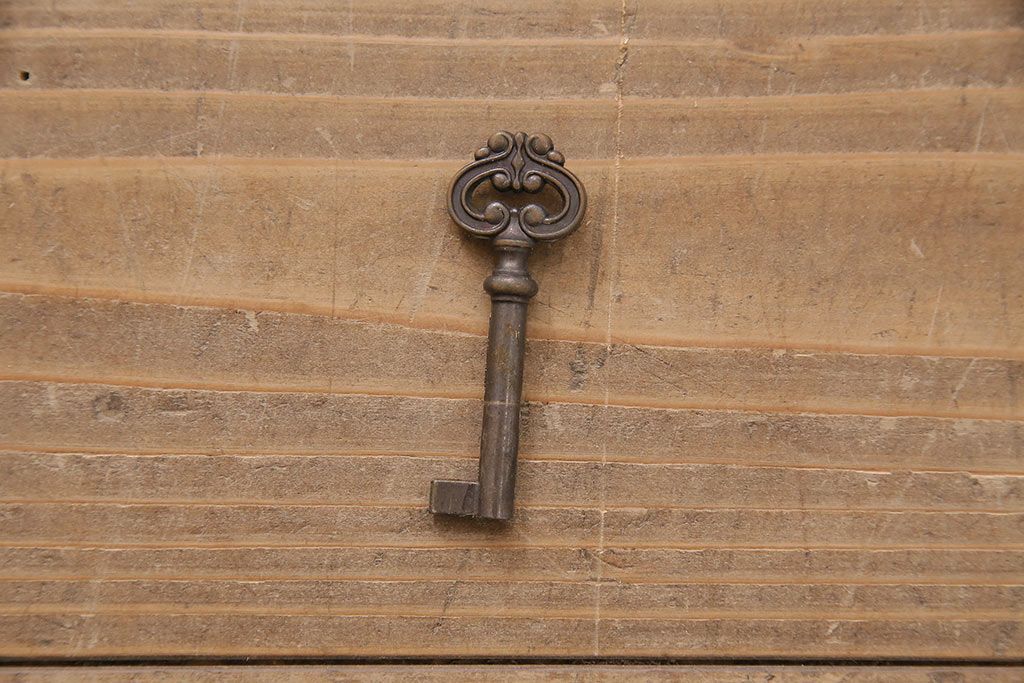 鍵は付属します。画像にありますように、袋に入れお付けします。あくまでも現状品ですので、長期の使用保証は出来かねます。
