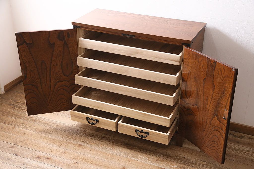 中古 伝統民芸 岩谷堂箪笥 脚付きリメイク 2wayが便利な衣装盆付きのサイドボード(衣装タンス、着物箪笥)(R-047145)