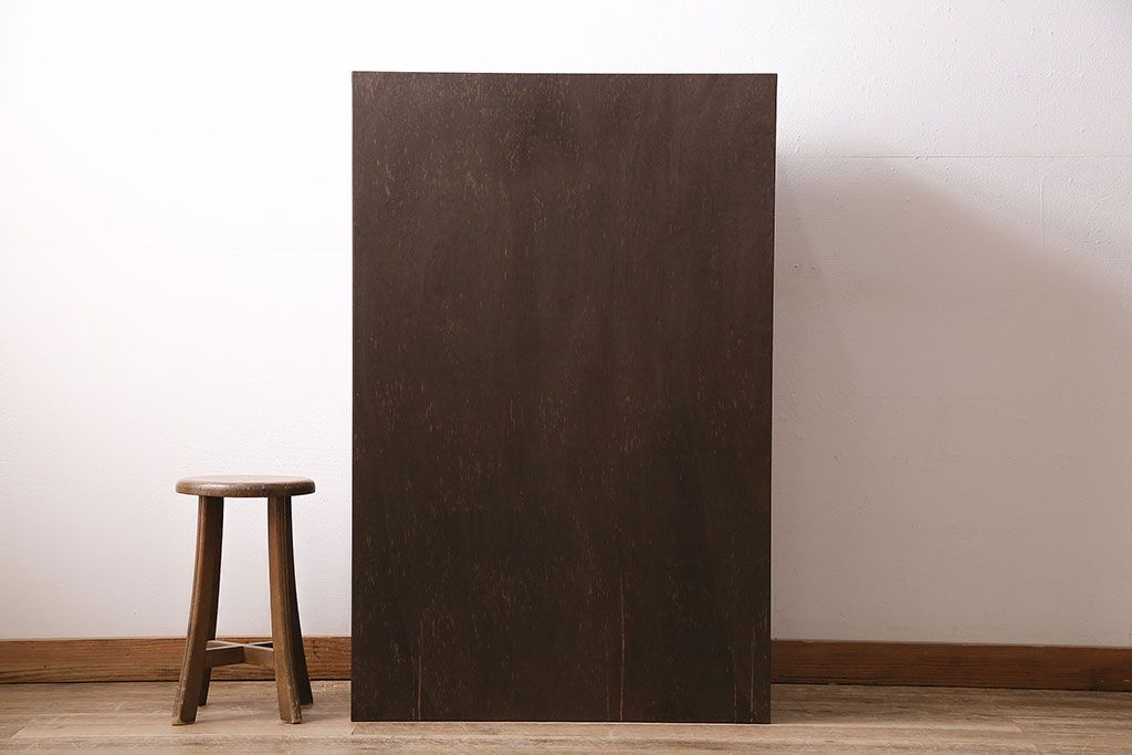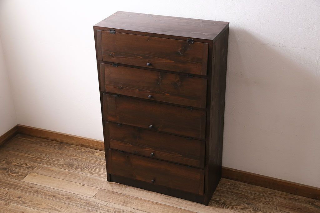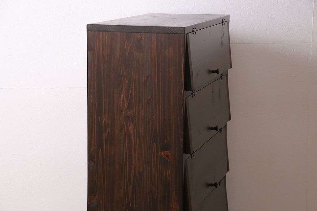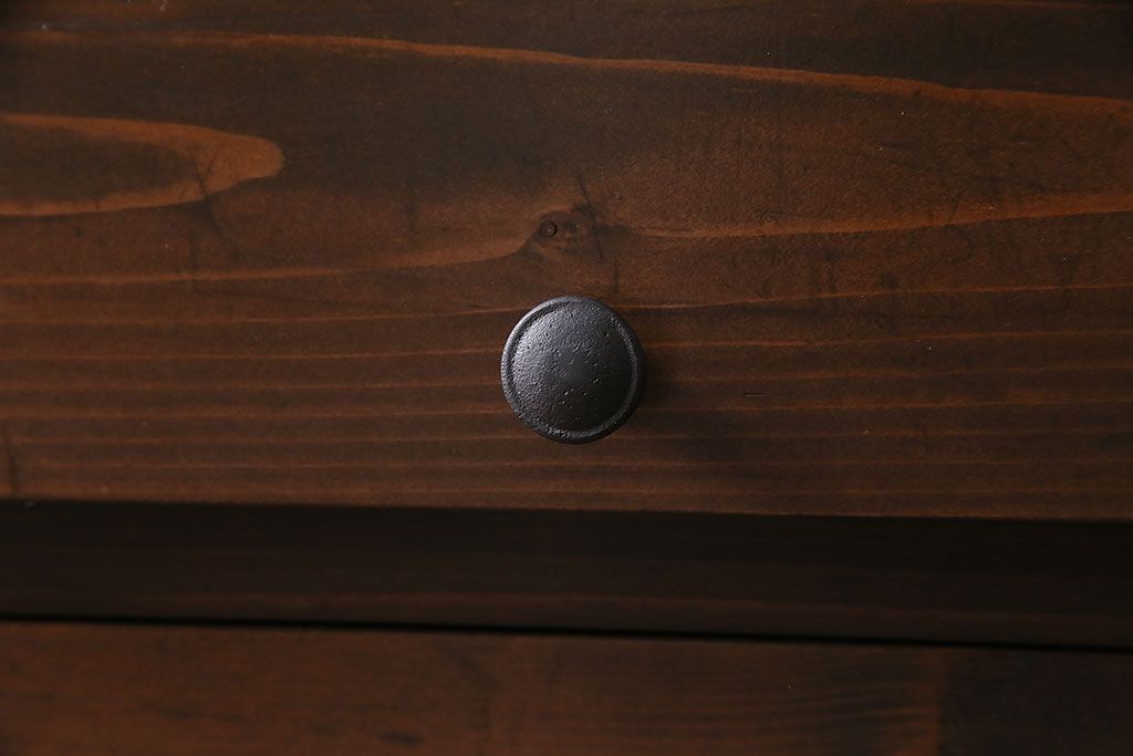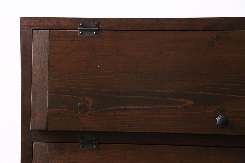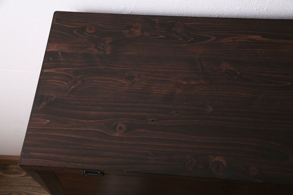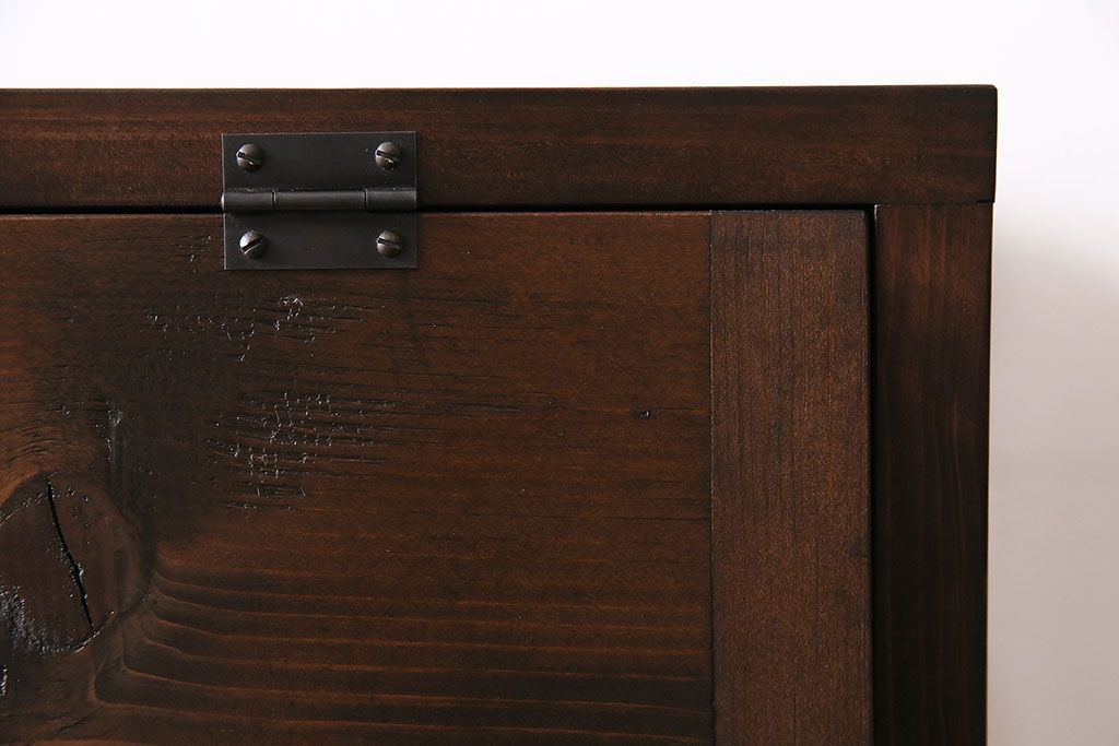 フルオーダー家具実績 > パタパタ扉の下駄箱を新規製作!本体はヒノキ無垢材、前板は古材を使用。取っ手を取り付け。濃い茶色で着色し仕上げ。(収納棚、戸棚、キャビネット、ロッカー)