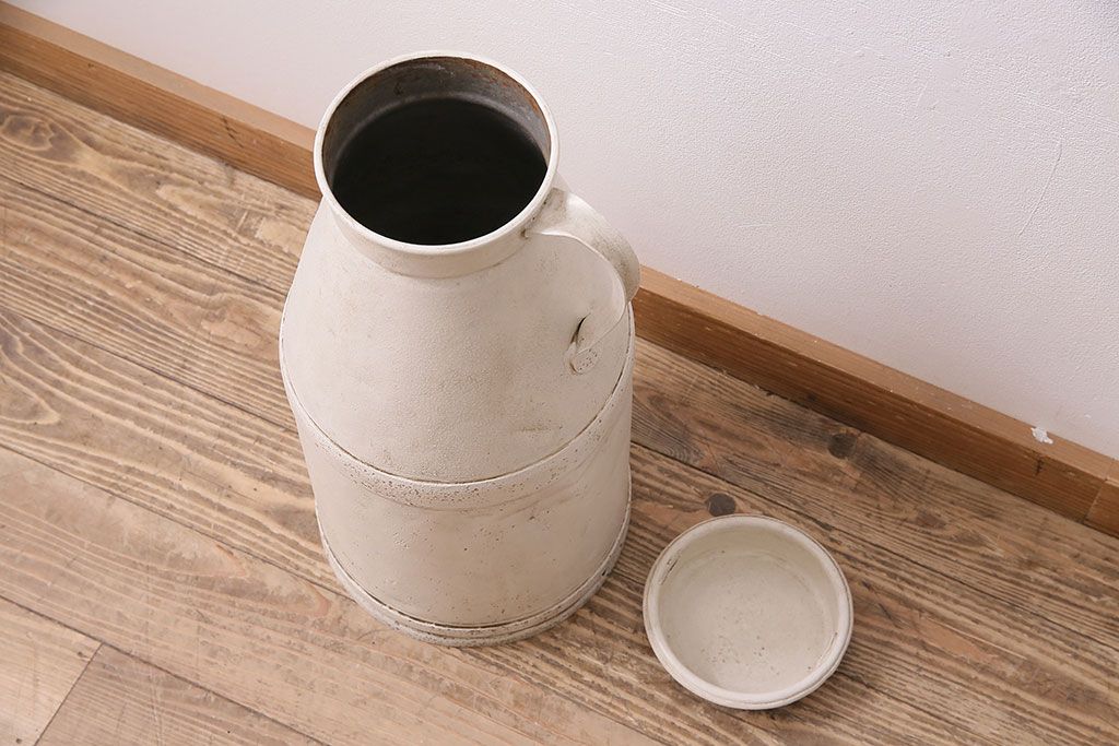 シャビーな雰囲気が漂う大きなミルク缶(ペイント、牛乳缶、ディスプレイ、ガーデニング雑貨)(R-047472)