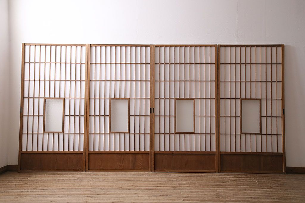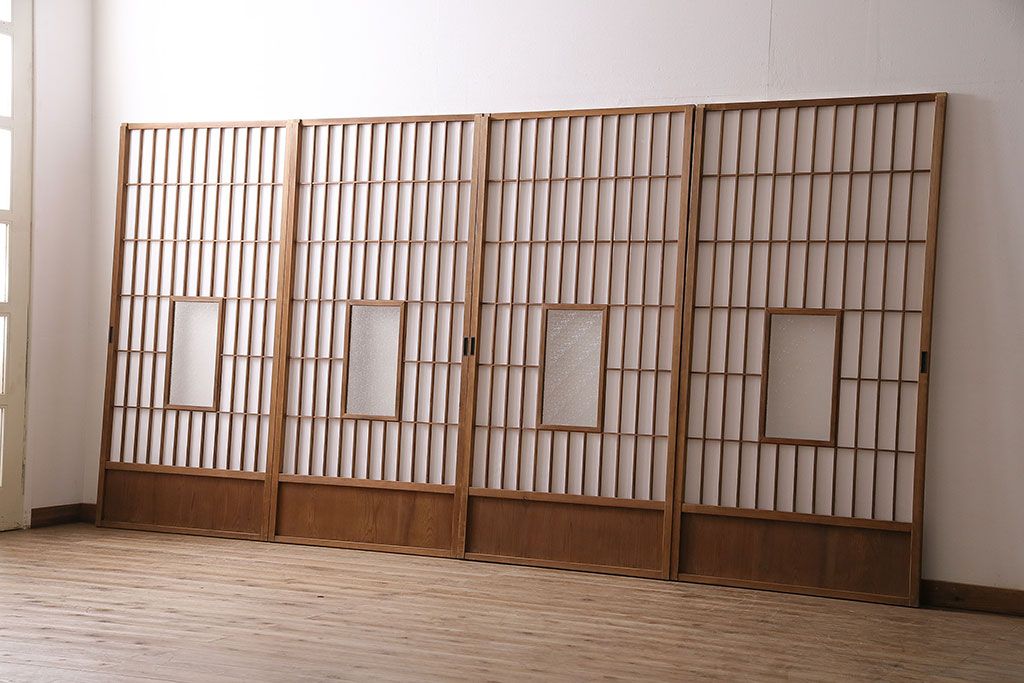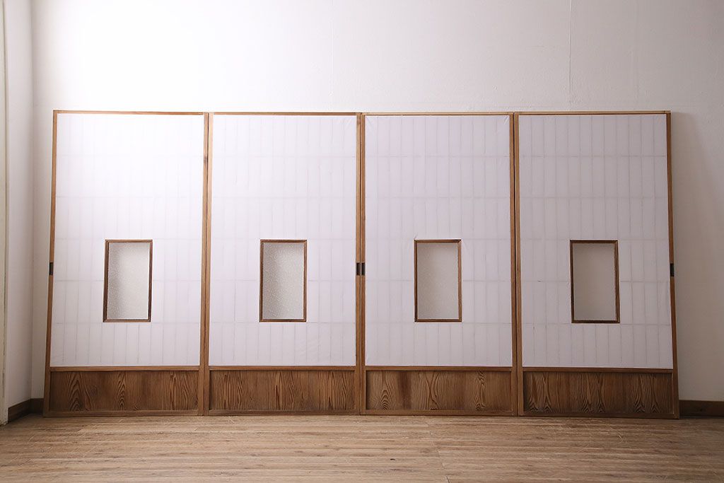 1枚目の画像にある建具4枚のうち、1枚のみ計測致しました。各サイズ、重量は1枚の数値を記載しておりますので、そちらをご参考ください。