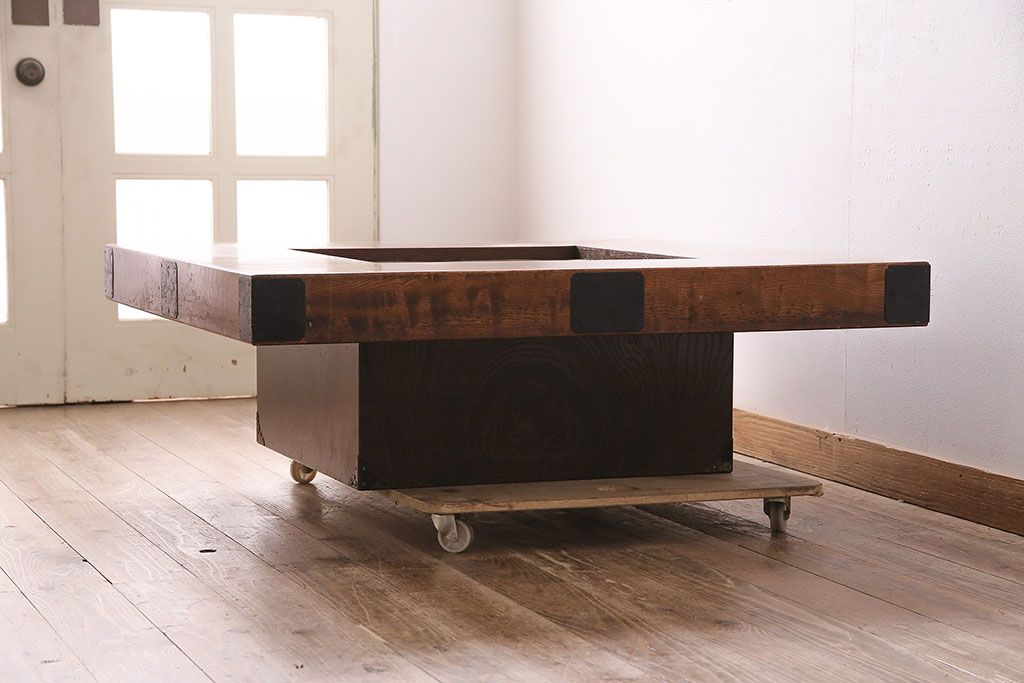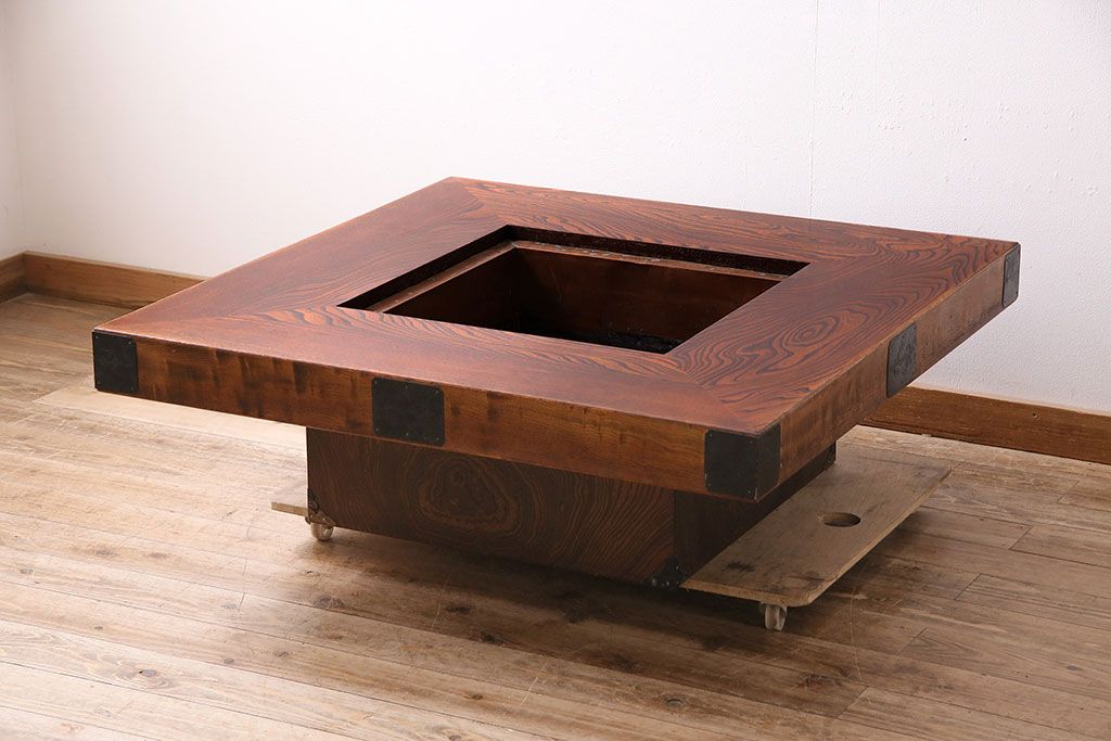 民芸家具 > 中古 民芸家具 ケヤキ材の迫力ある杢目が楽しめる重厚感抜群の木製火鉢(囲炉裏)(R-047394)