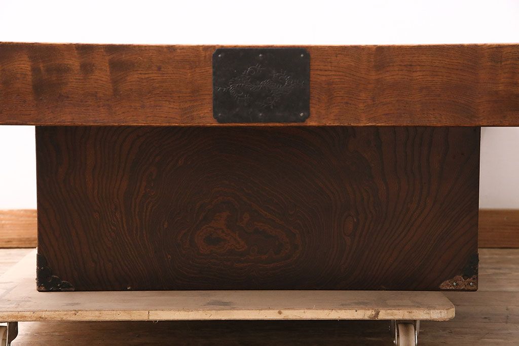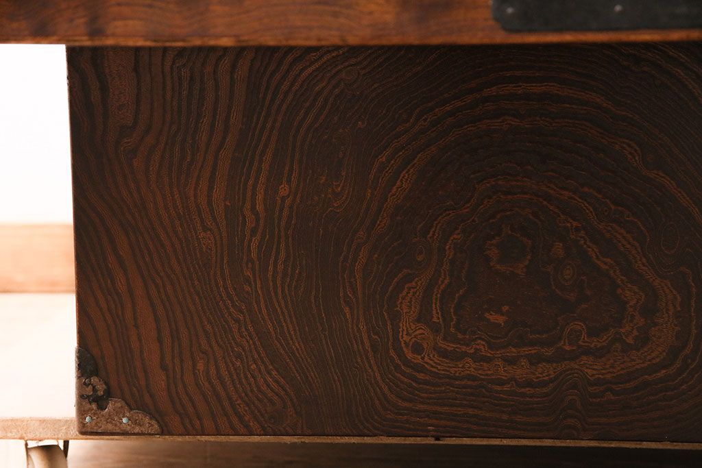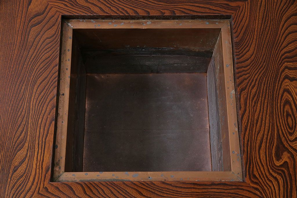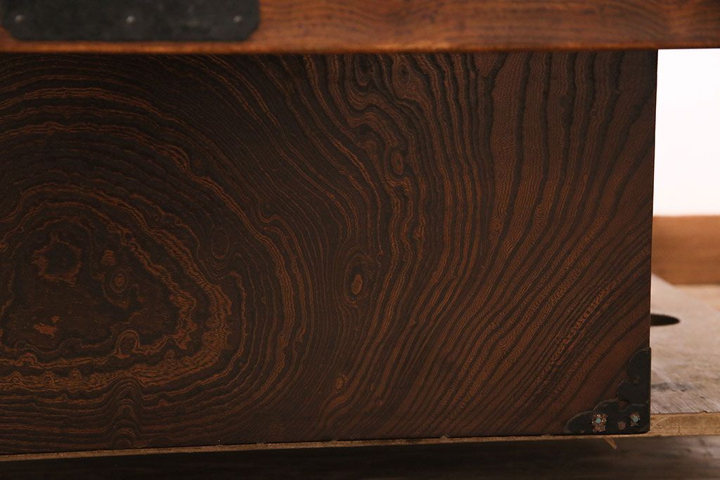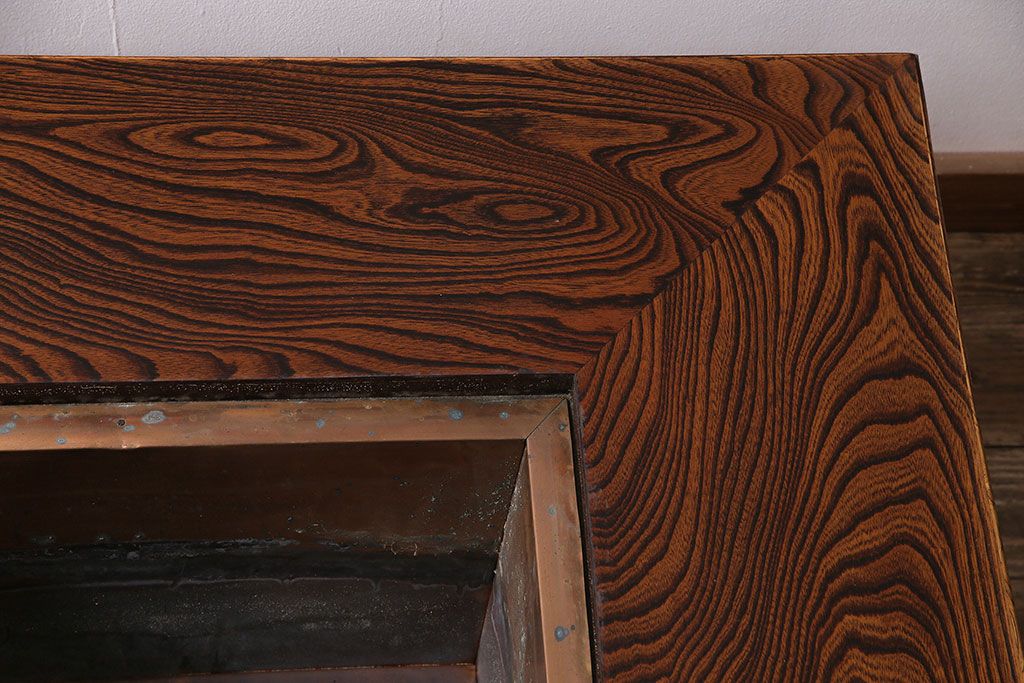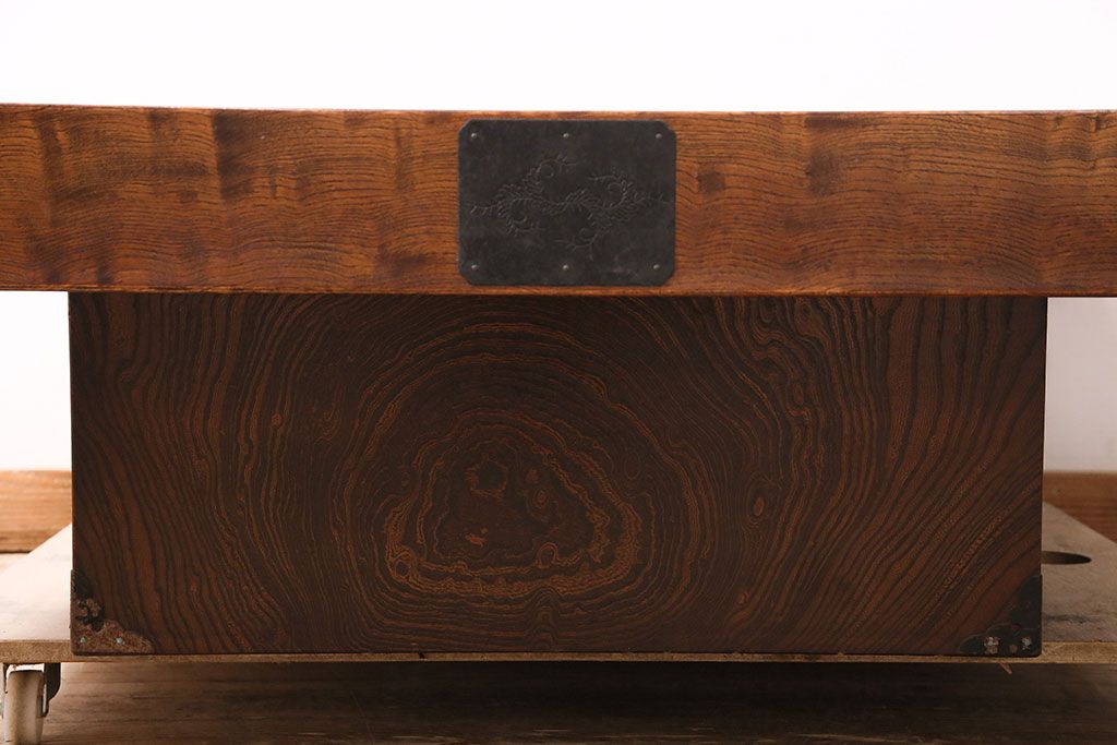 中古 民芸家具 ケヤキ材の迫力ある杢目が楽しめる重厚感抜群の木製火鉢(囲炉裏)(R-047394)