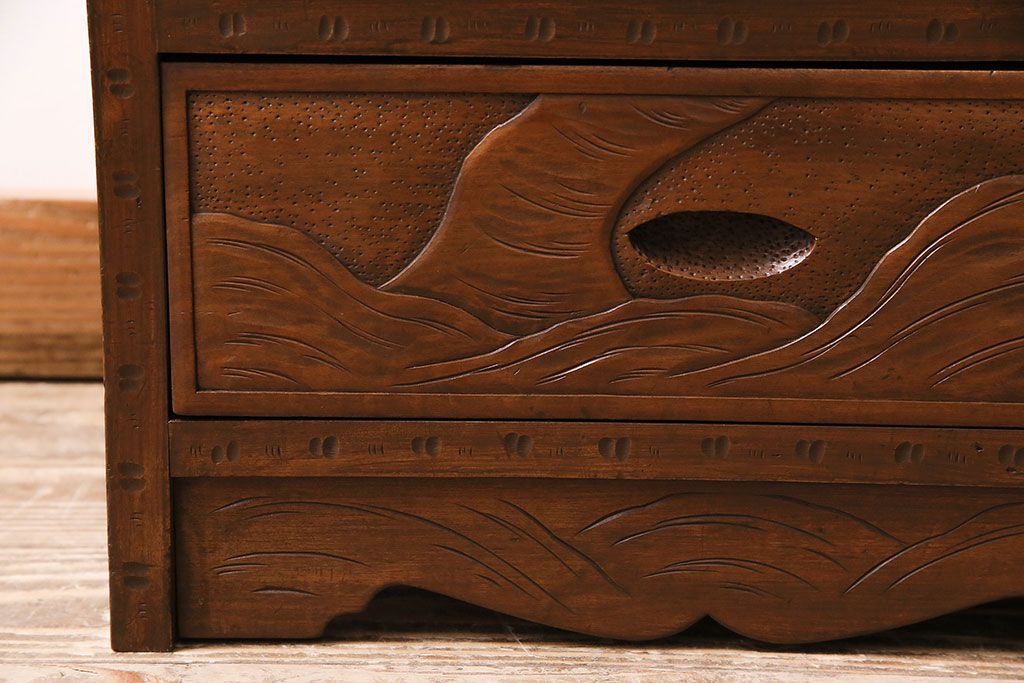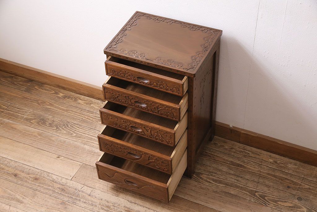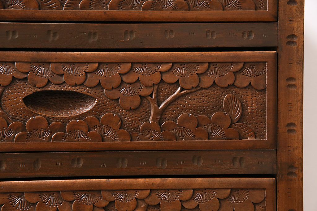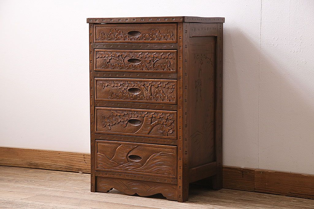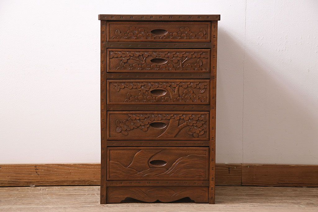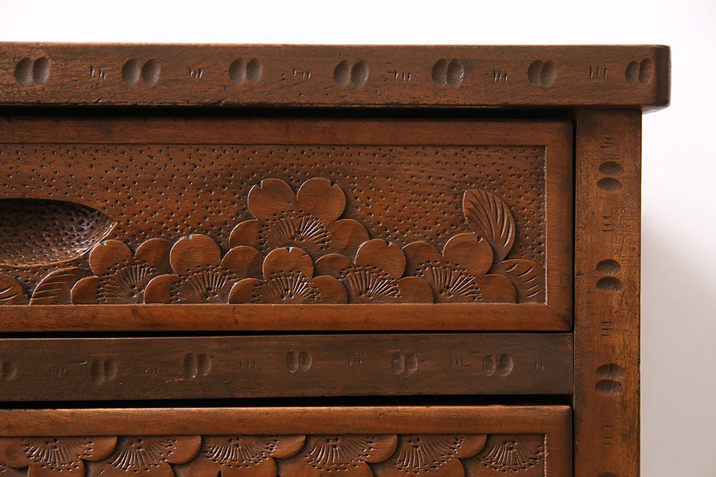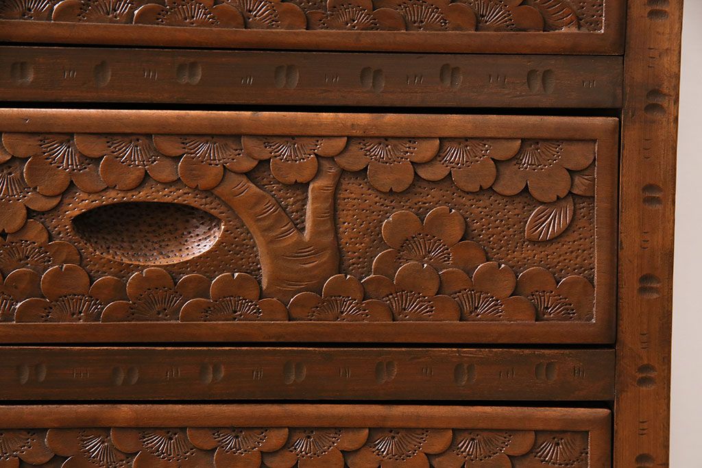 中古 美品 伝統工芸の軽井沢彫り 桜の図が優美な小引き出し(小物収納、チェスト)(R-047514)です。