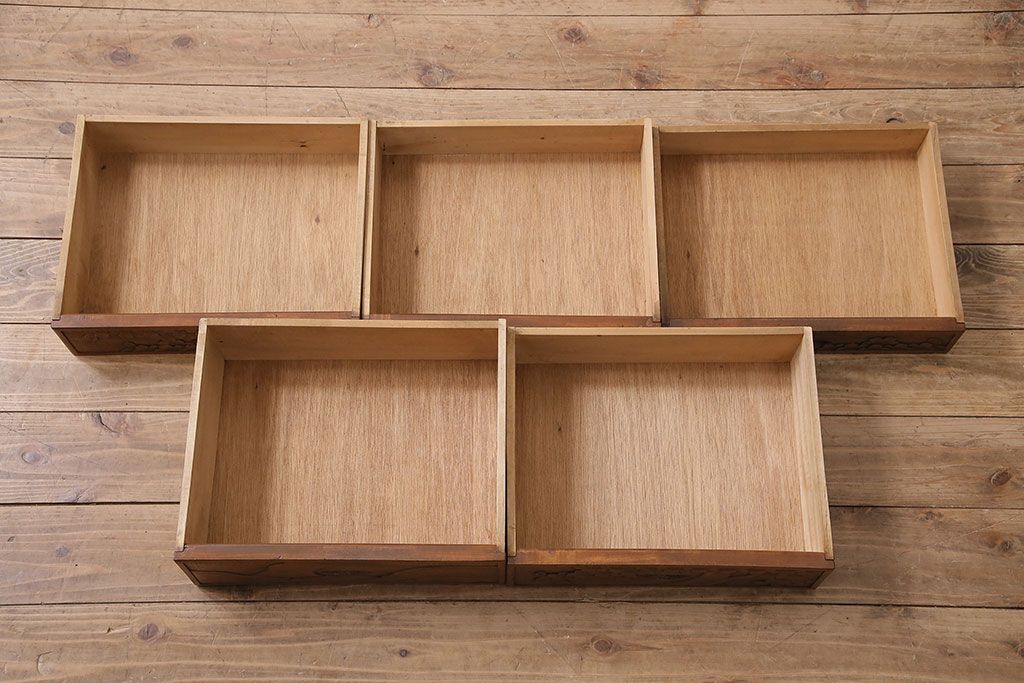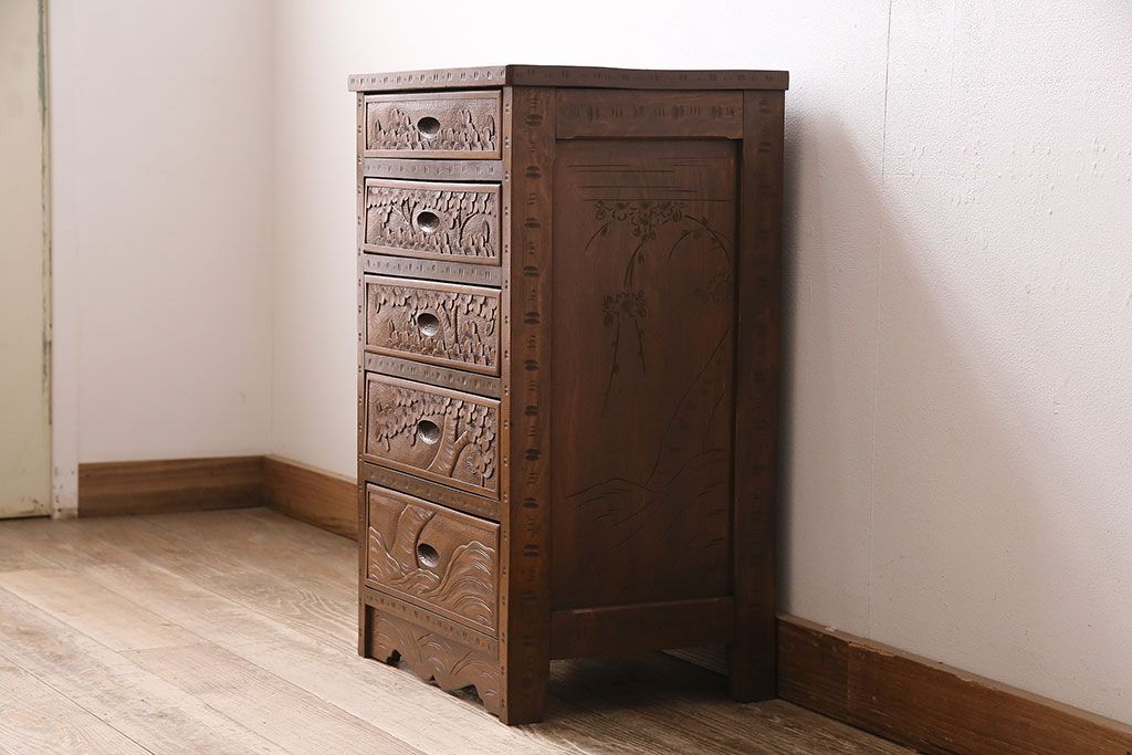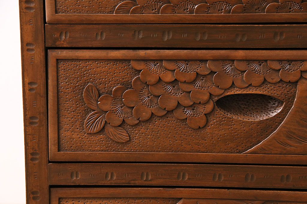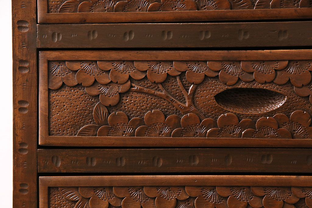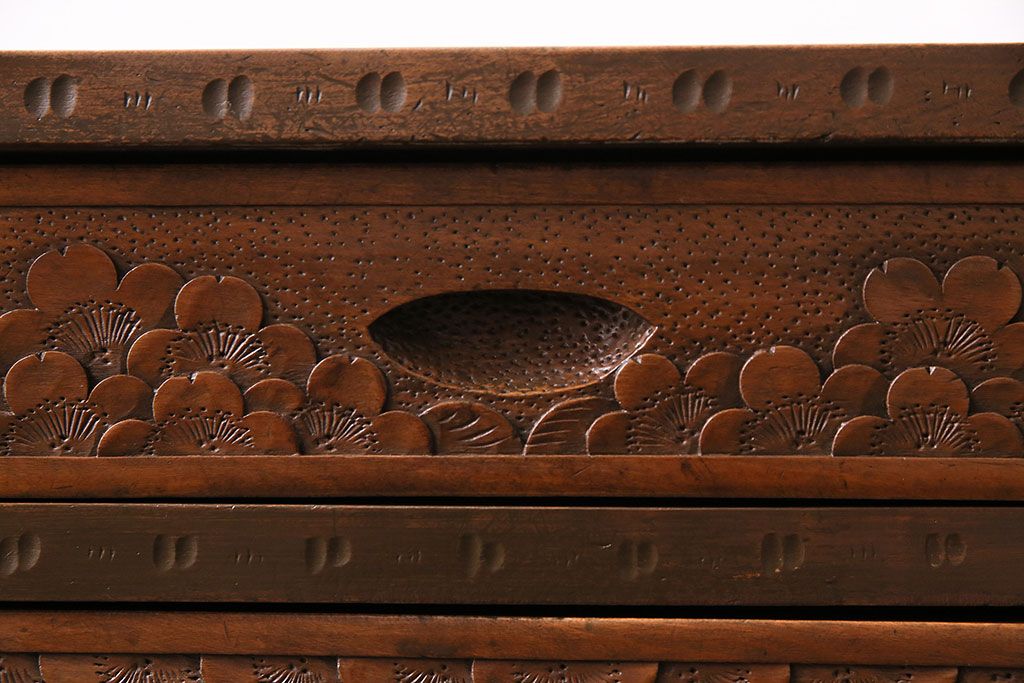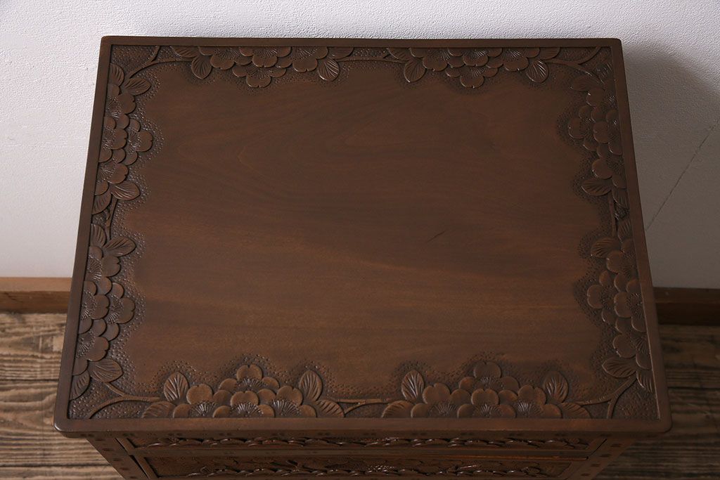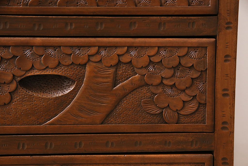 中古 美品 伝統工芸の軽井沢彫り 桜の図が優美な小引き出し(小物収納、チェスト)(R-047514)です。