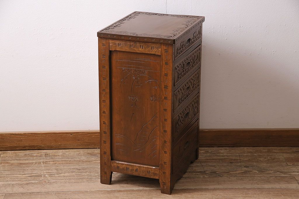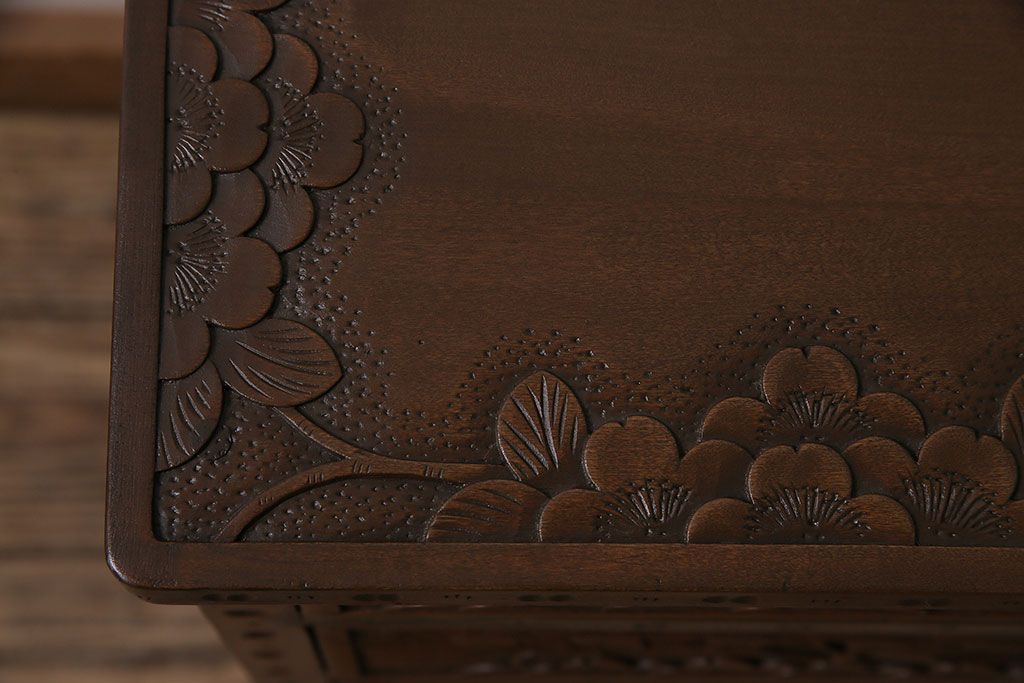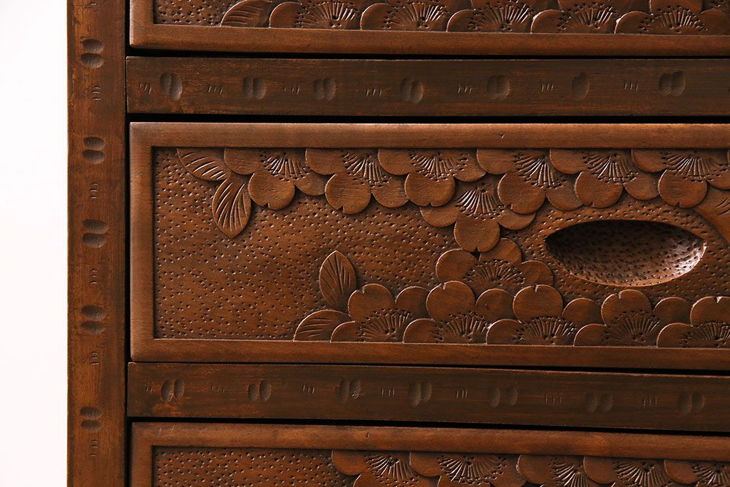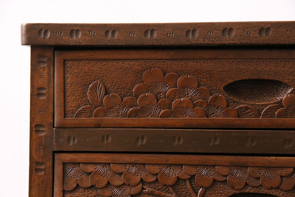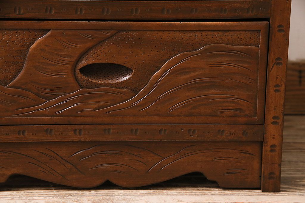 長野県の伝統工芸品、軽井沢彫りのチェストです。