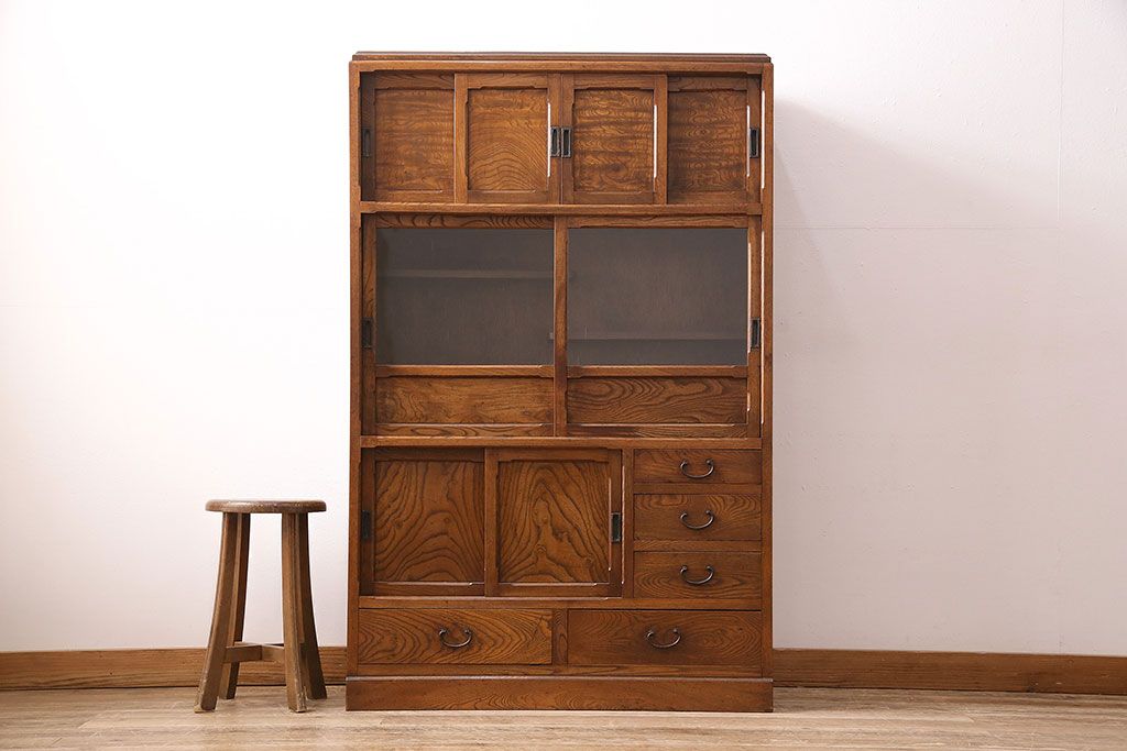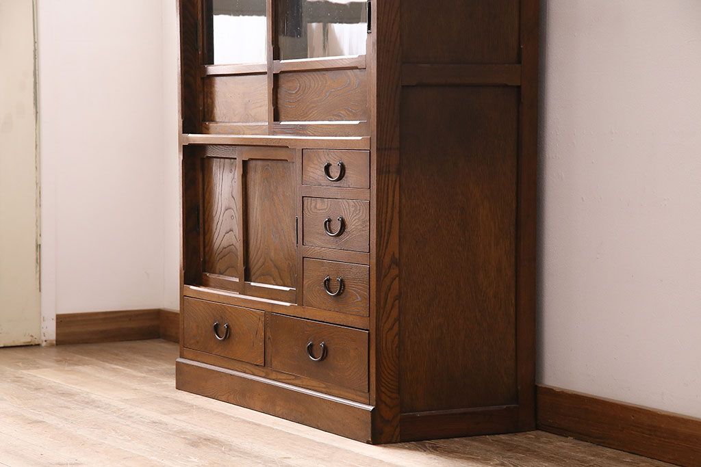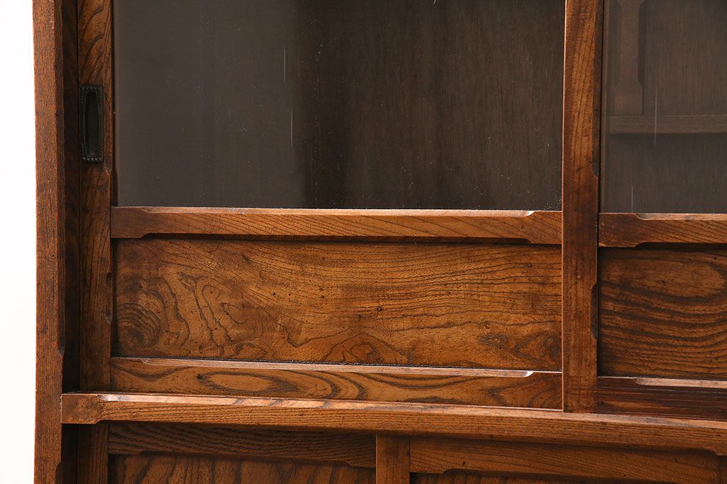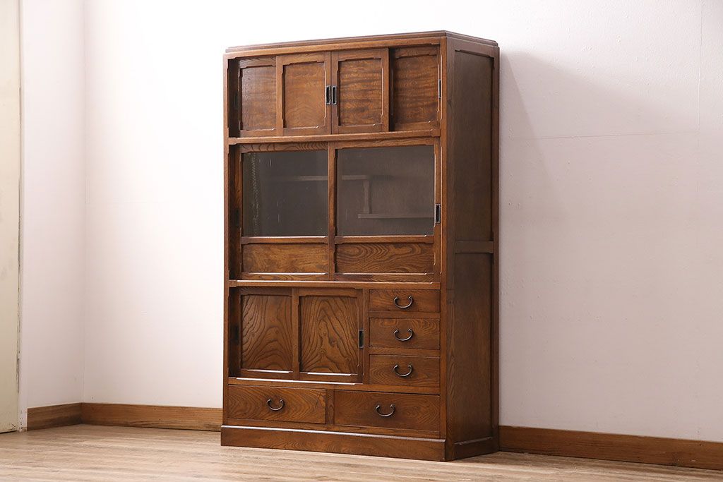 アンティーク 前面ケヤキ材製 凛とし佇まいが上質な空間を演出してくれる茶箪笥(茶棚、飾り棚、収納棚)(R-047683)