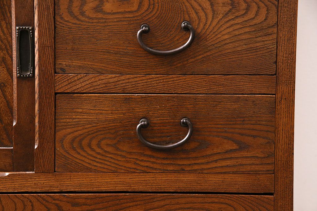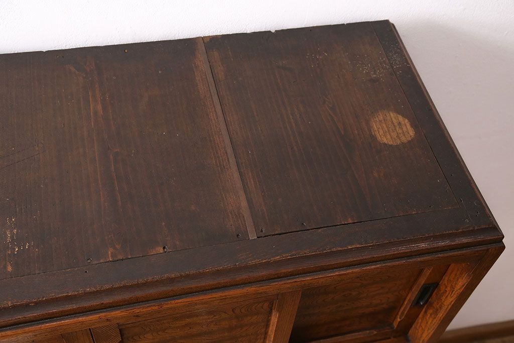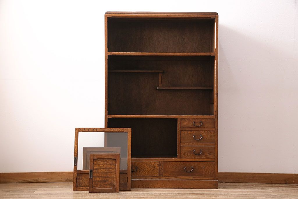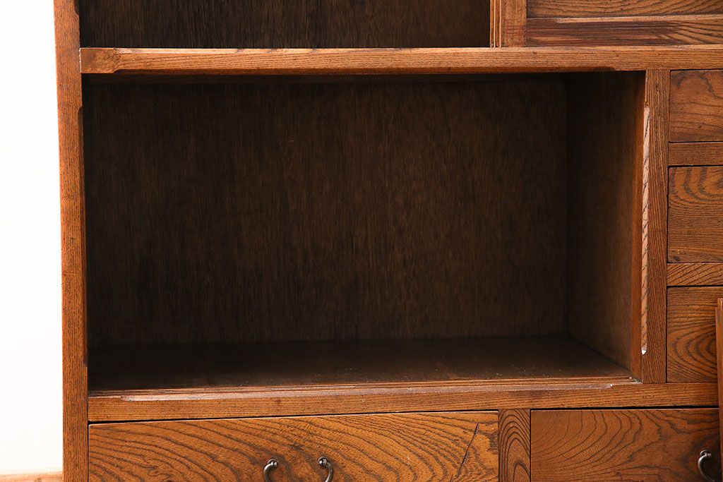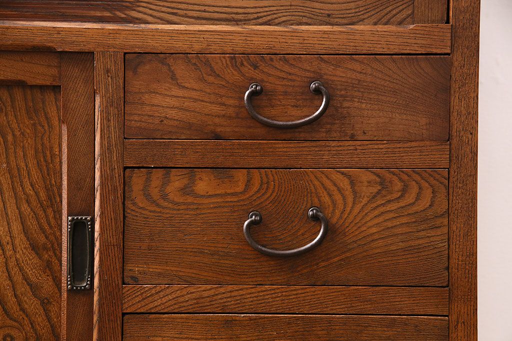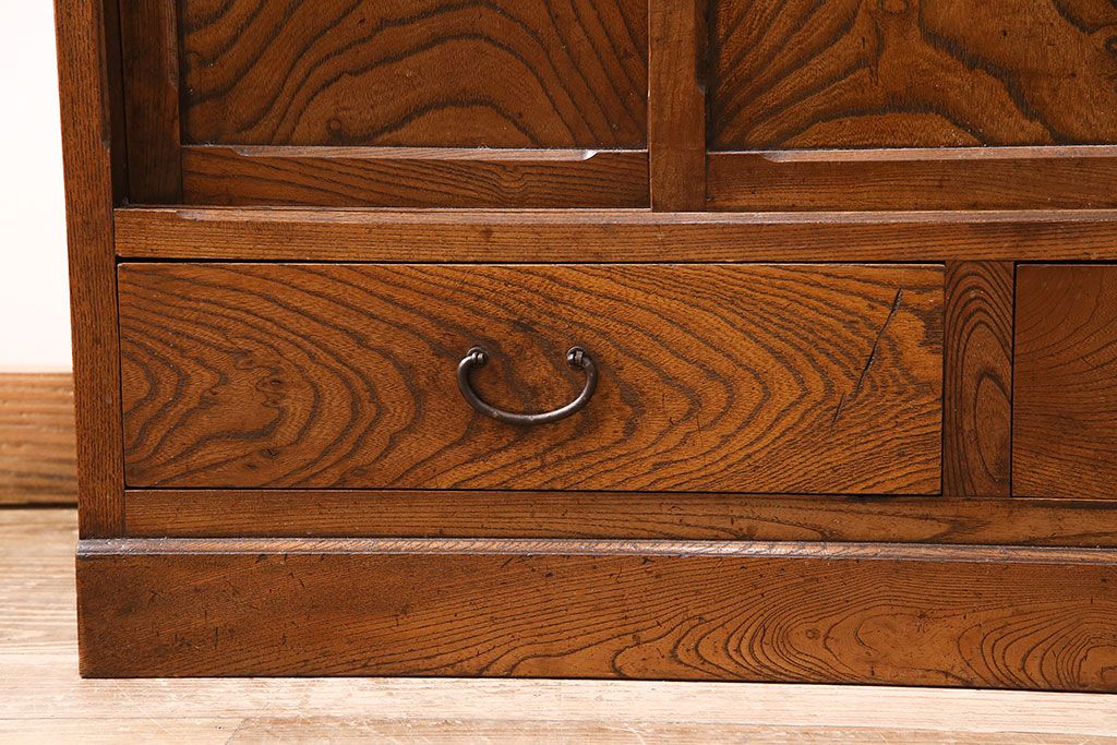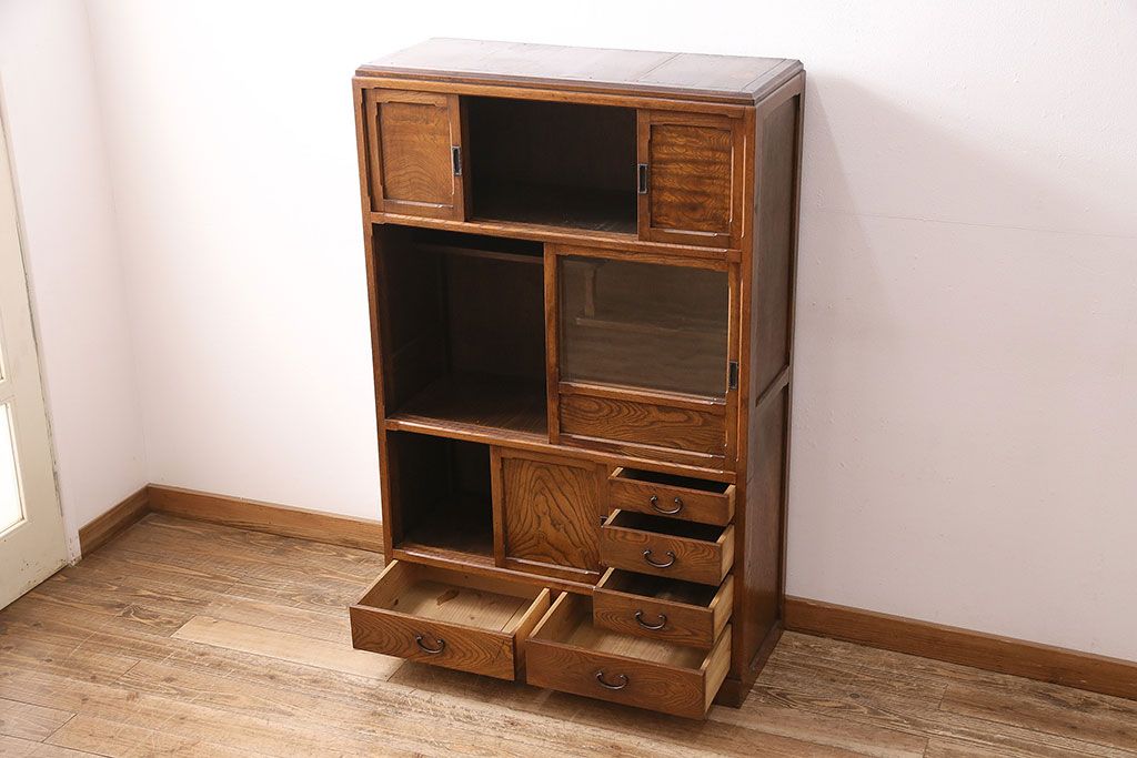 和箪笥> 茶箪笥・茶棚 > アンティーク 前面ケヤキ材製 凛とし佇まいが上質な空間を演出してくれる茶箪笥(茶棚、飾り棚、収納棚)(R-047683)