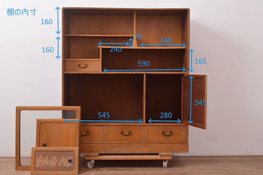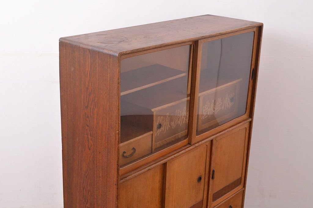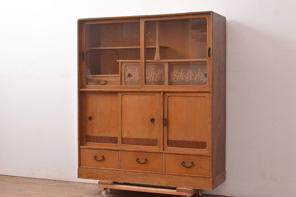 昭和レトロ 栓材 古く懐かしいデザインの中に現代的な雰囲気が感じられる茶箪笥(茶棚、飾り棚、収納棚)(R-047505)