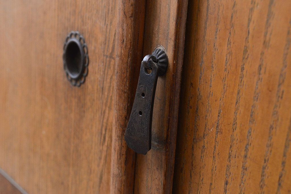 和箪笥> 茶箪笥・茶棚 > 昭和レトロ 栓材 古く懐かしいデザインの中に現代的な雰囲気が感じられる茶箪笥(茶棚、飾り棚、収納棚)(R-047505)