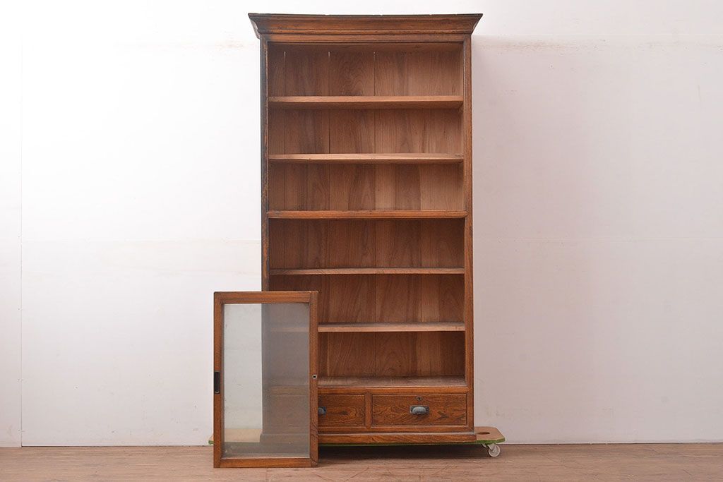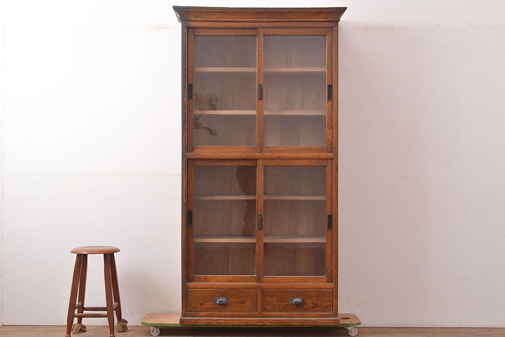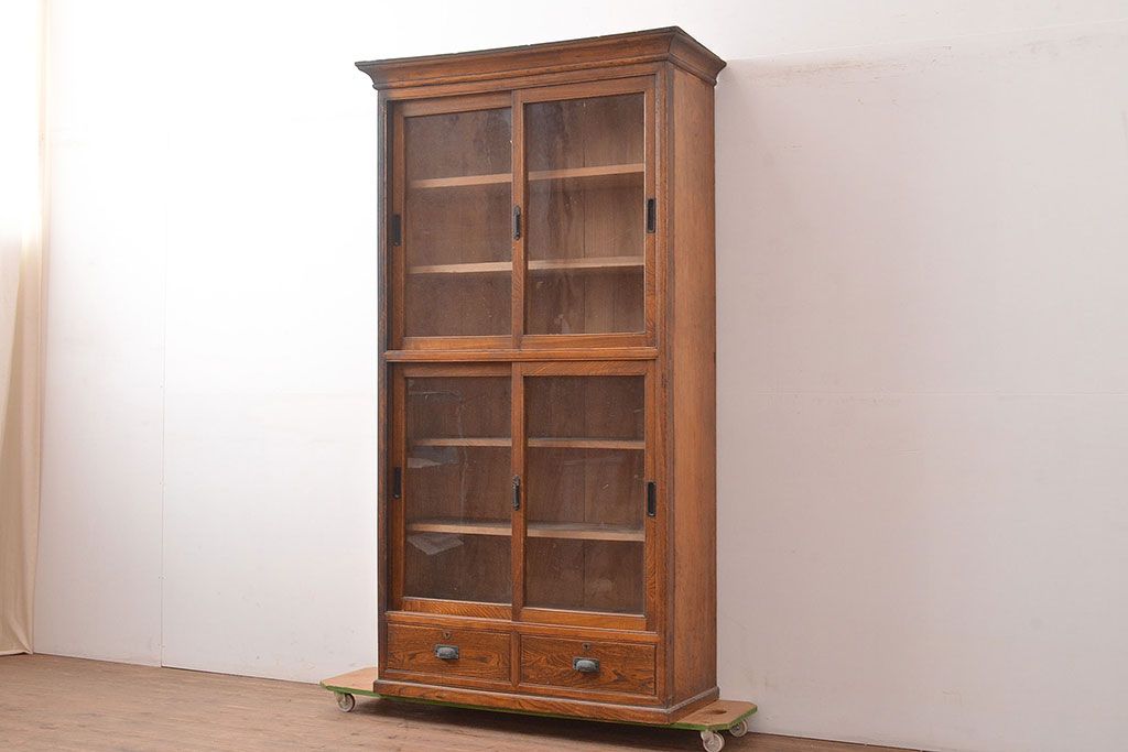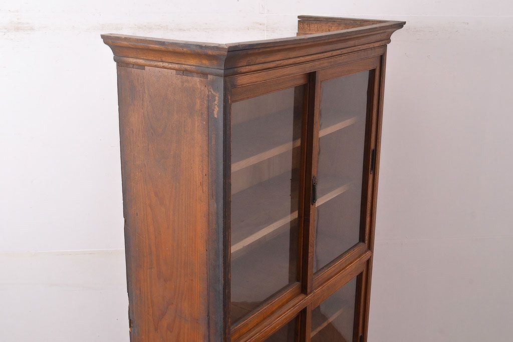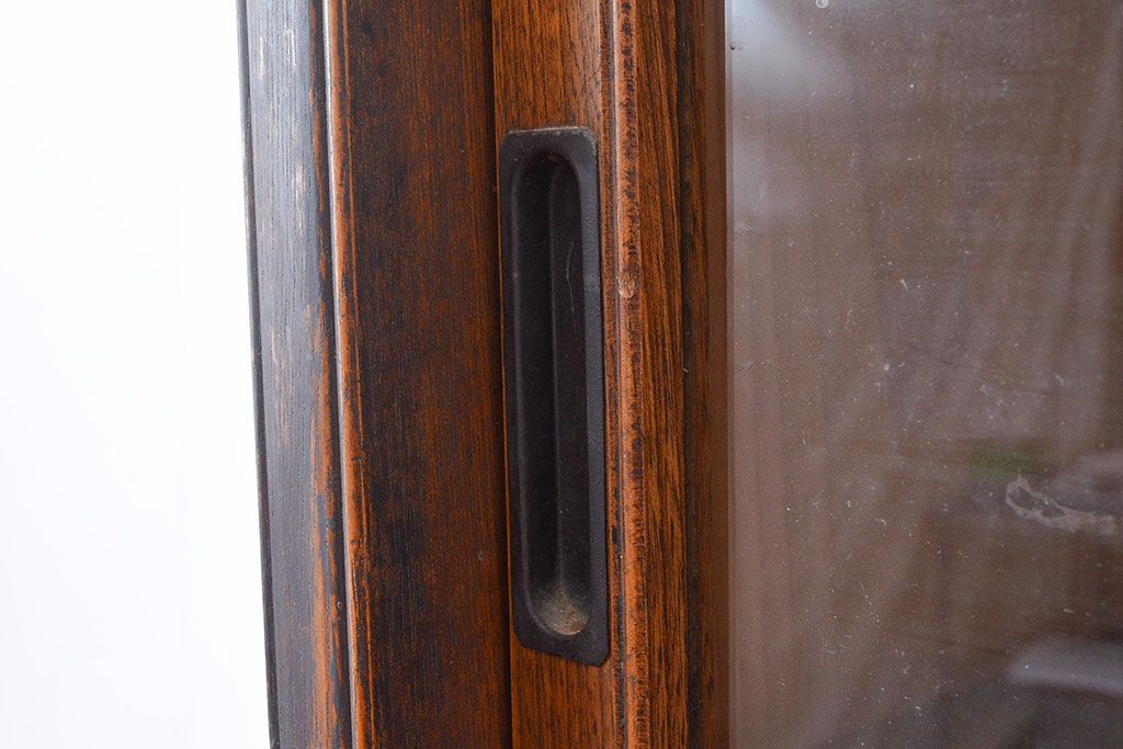 和製アンティーク 前面栓材 大正ロマンやレトロスタイルに合うガラス戸棚(収納棚、キャビネット)(R-047381)です。