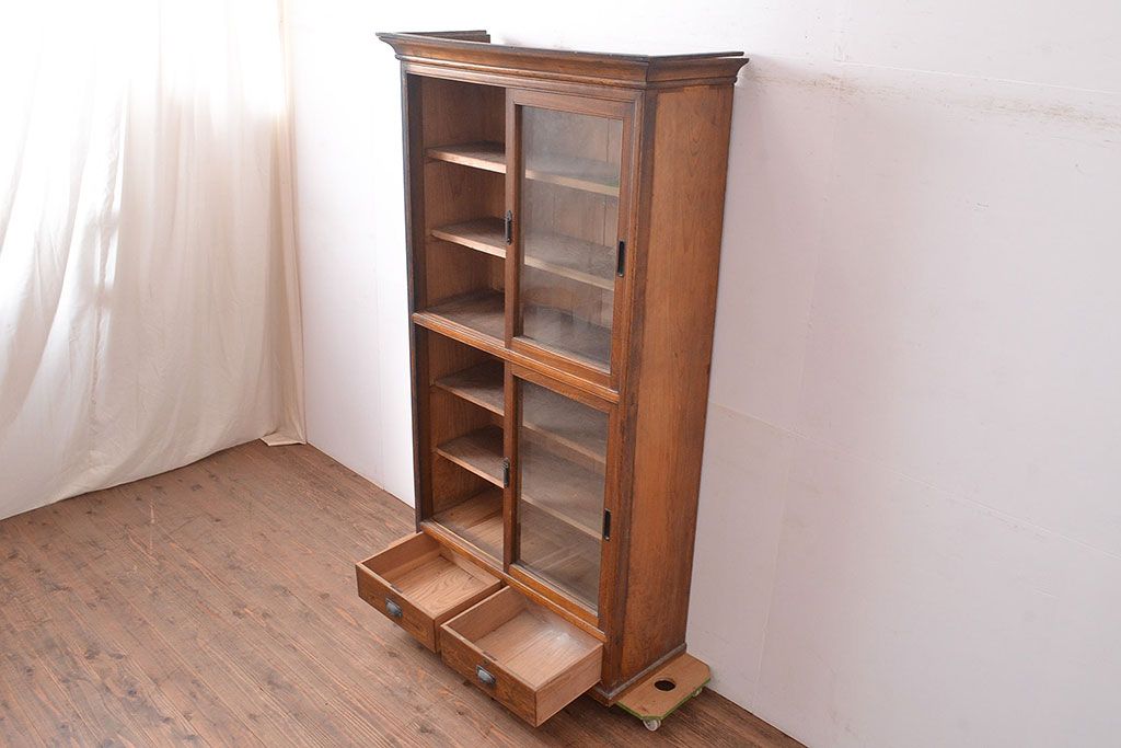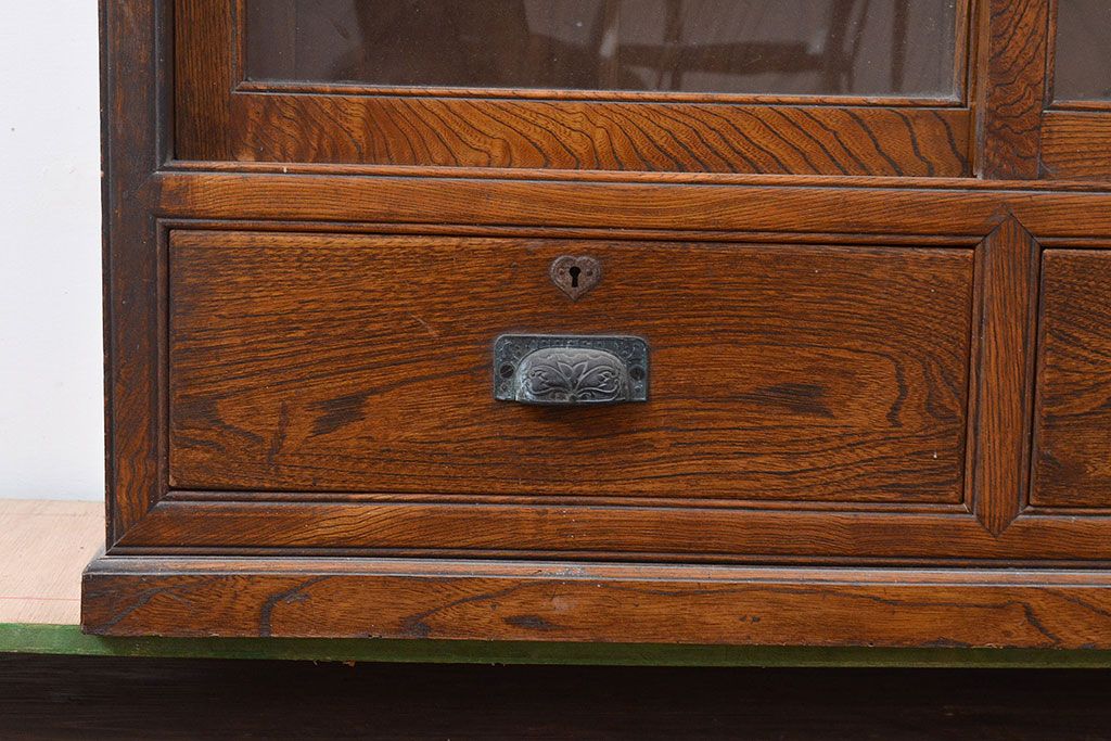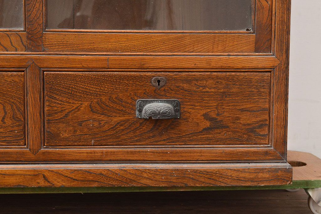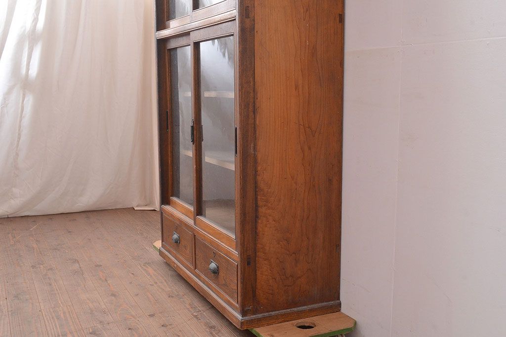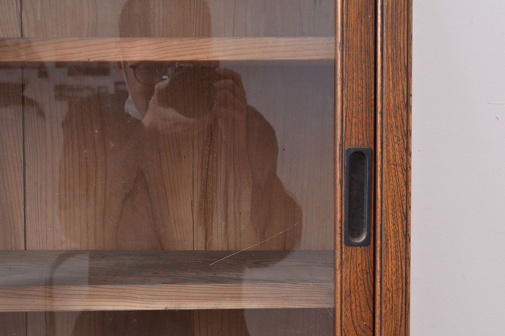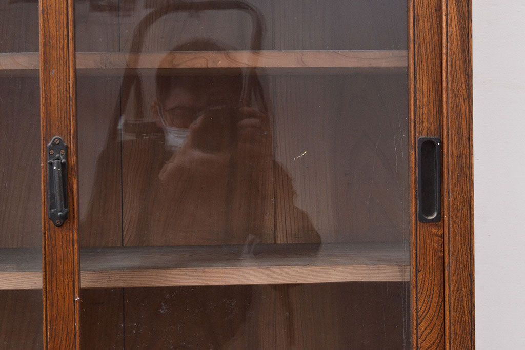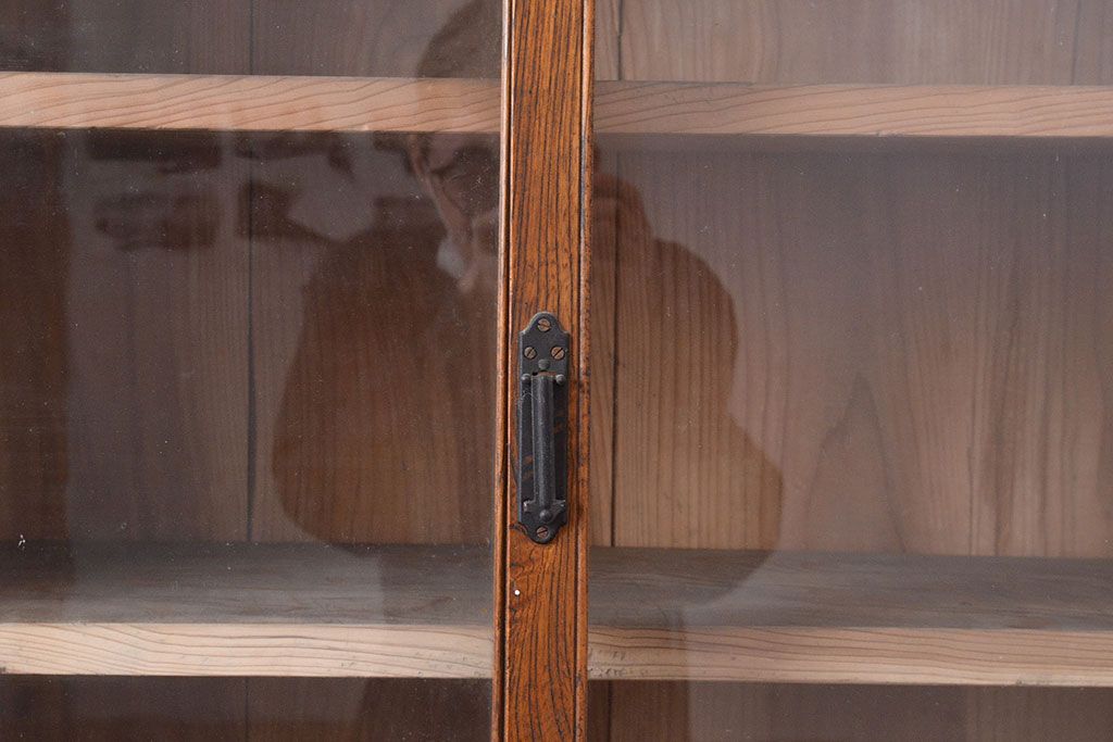 和製アンティーク 前面栓材 大正ロマンやレトロスタイルに合うガラス戸棚(収納棚、キャビネット)(R-047381)