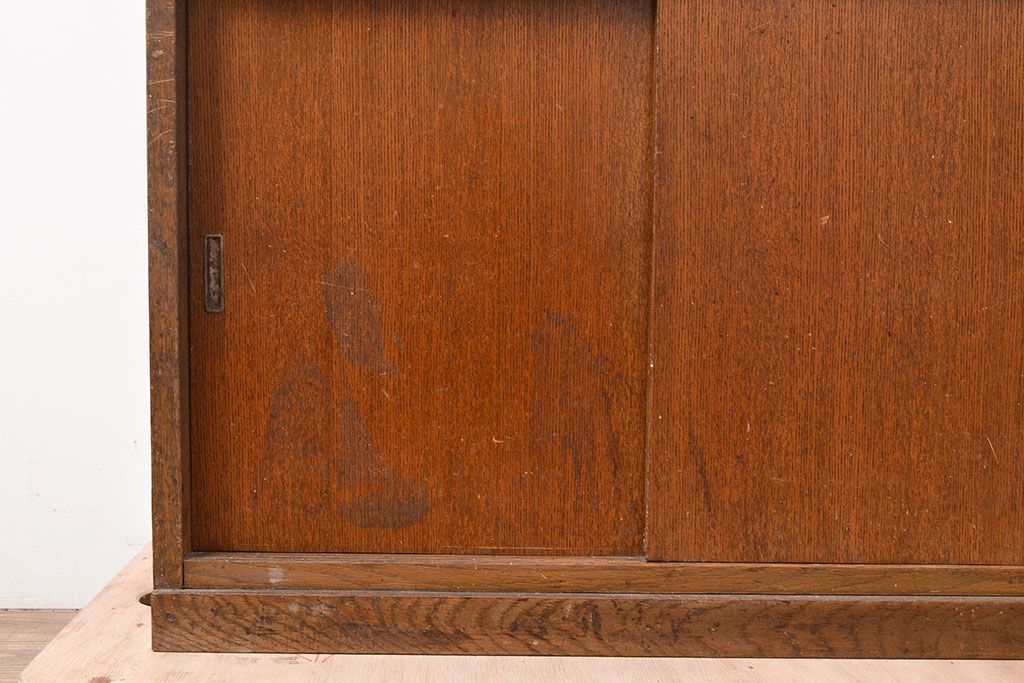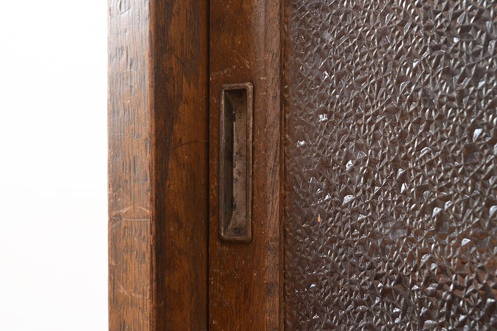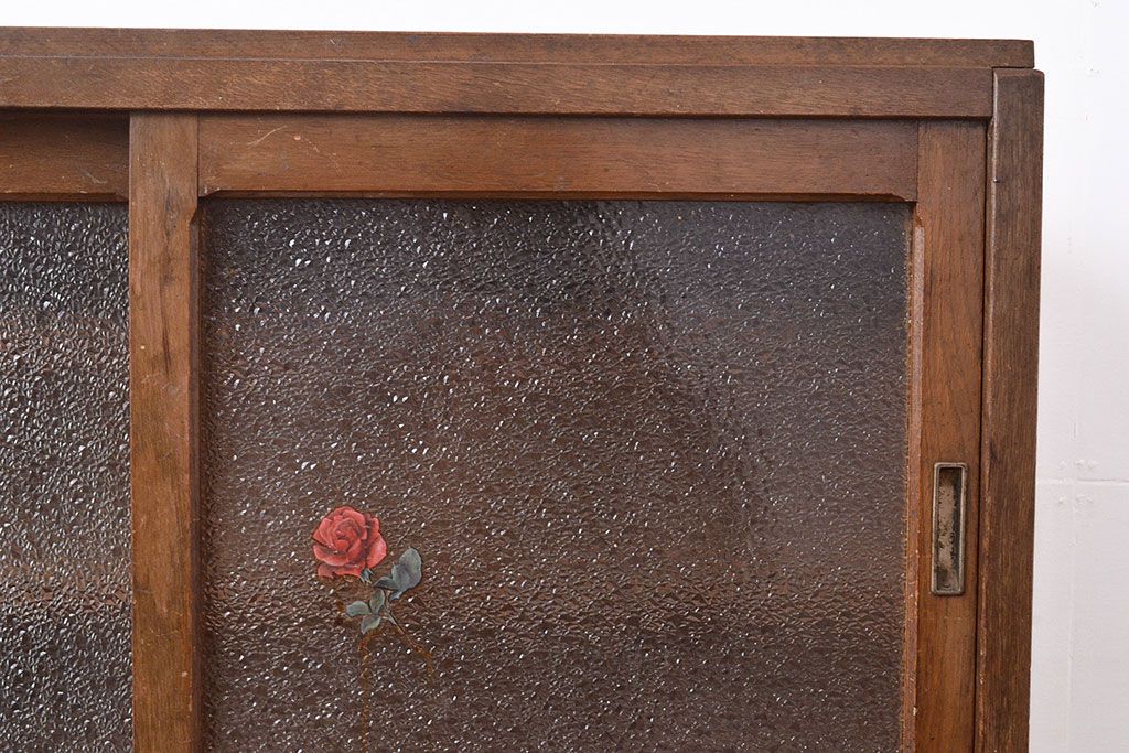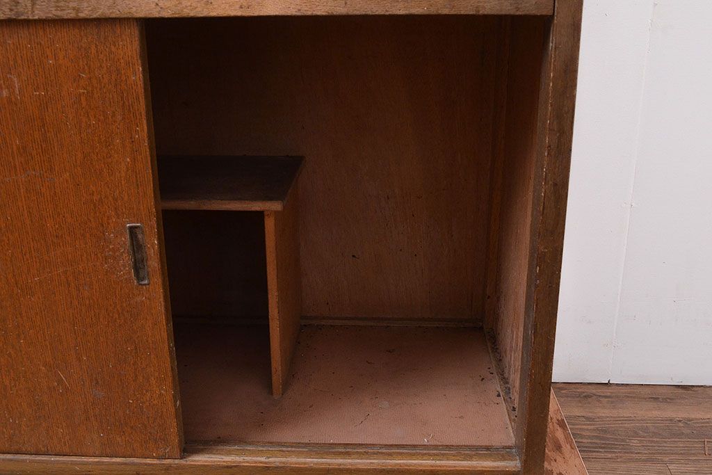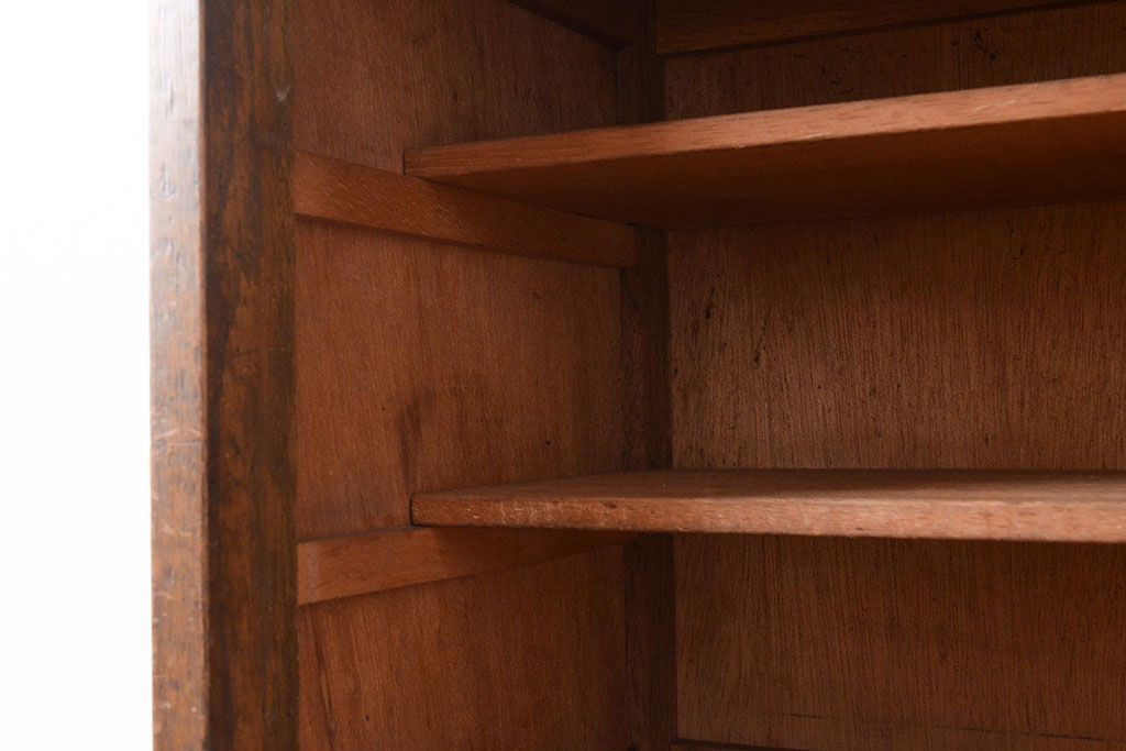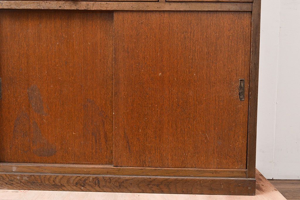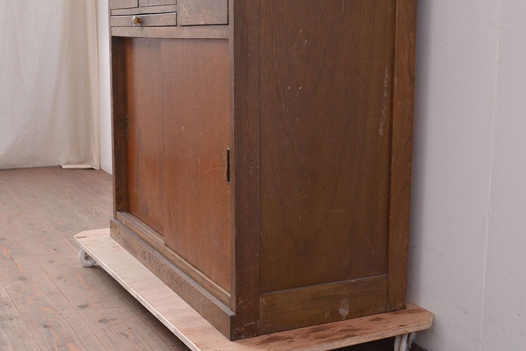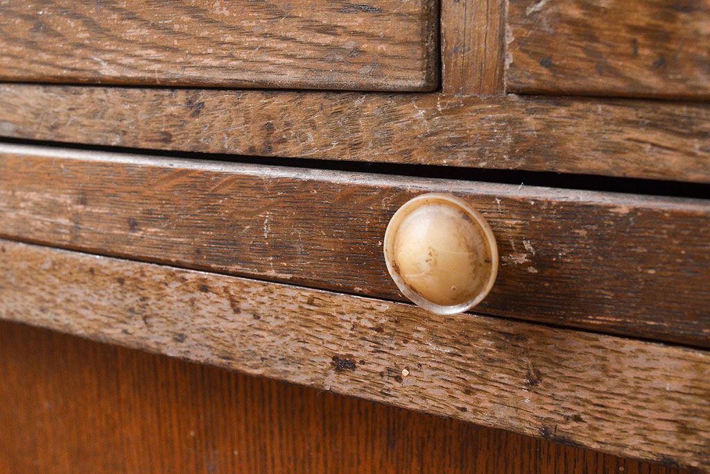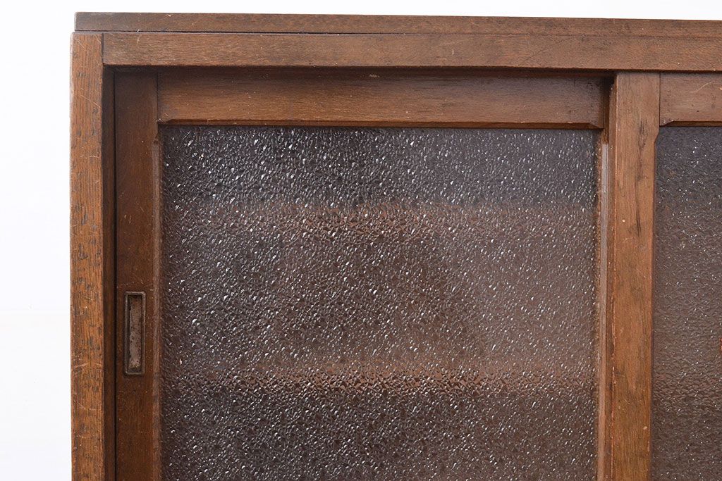 昭和中期 ダイヤガラスが魅力的なナラ材製の作業台付き食器棚(戸棚、収納棚、キャビネット)(R-047497)