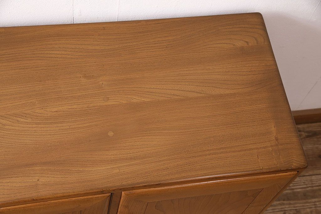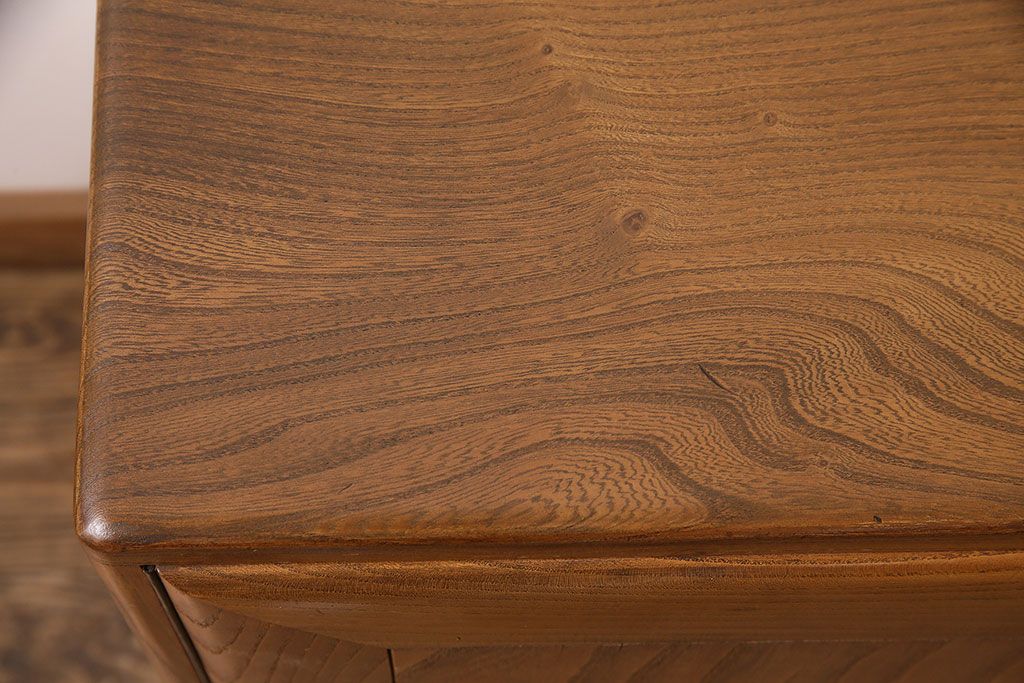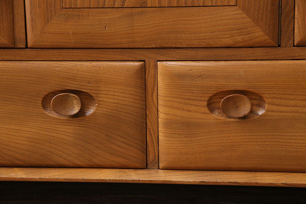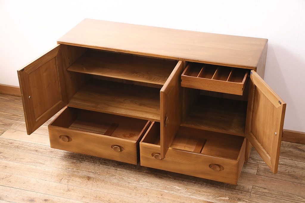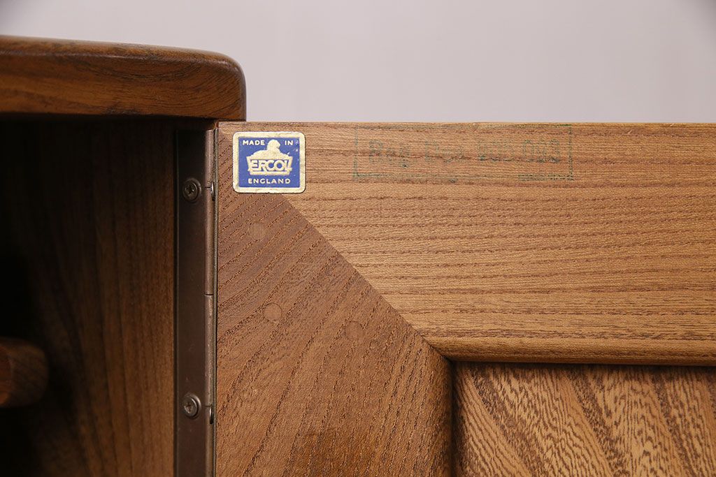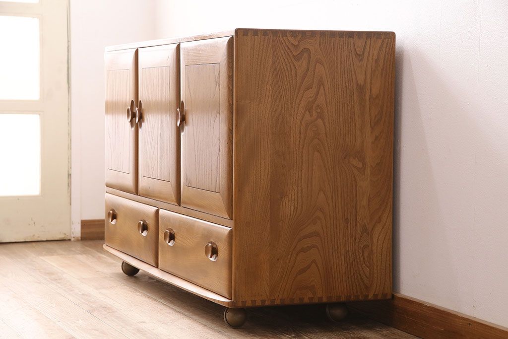 ヴィンテージ 楡材 ERCOL(アーコール) イギリスから届きました!温もり溢れるキャスター付きサイドボード(収納棚、キャビネット、ビンテージ)(R-047684)