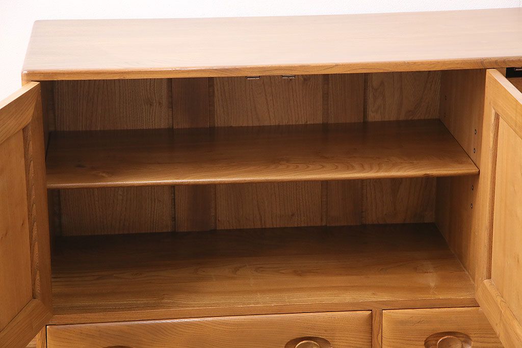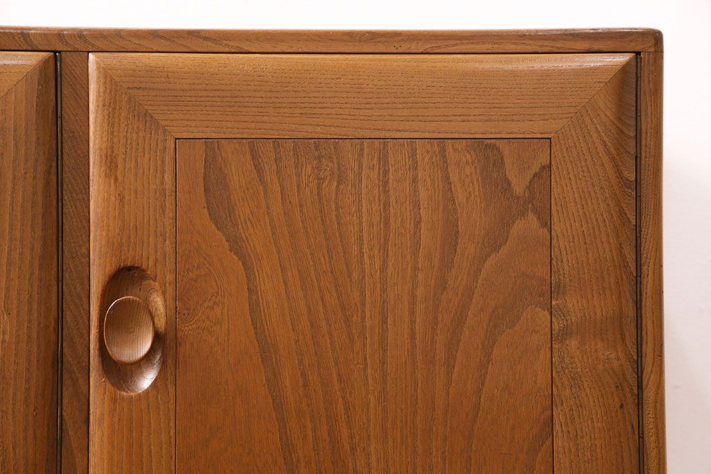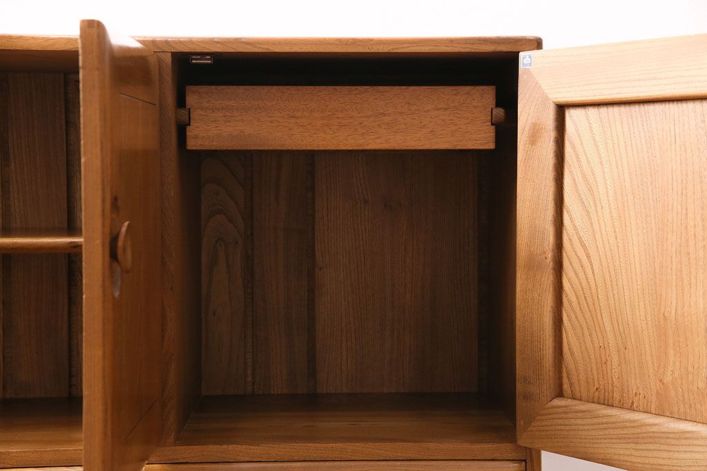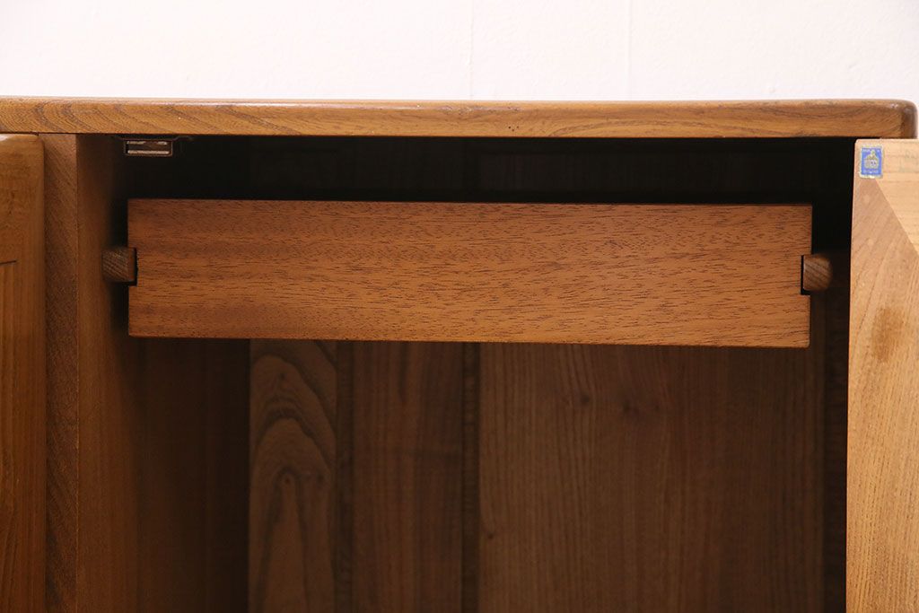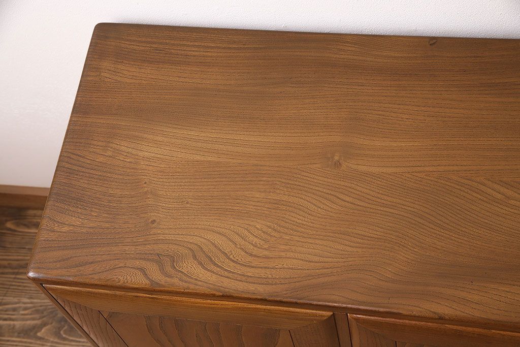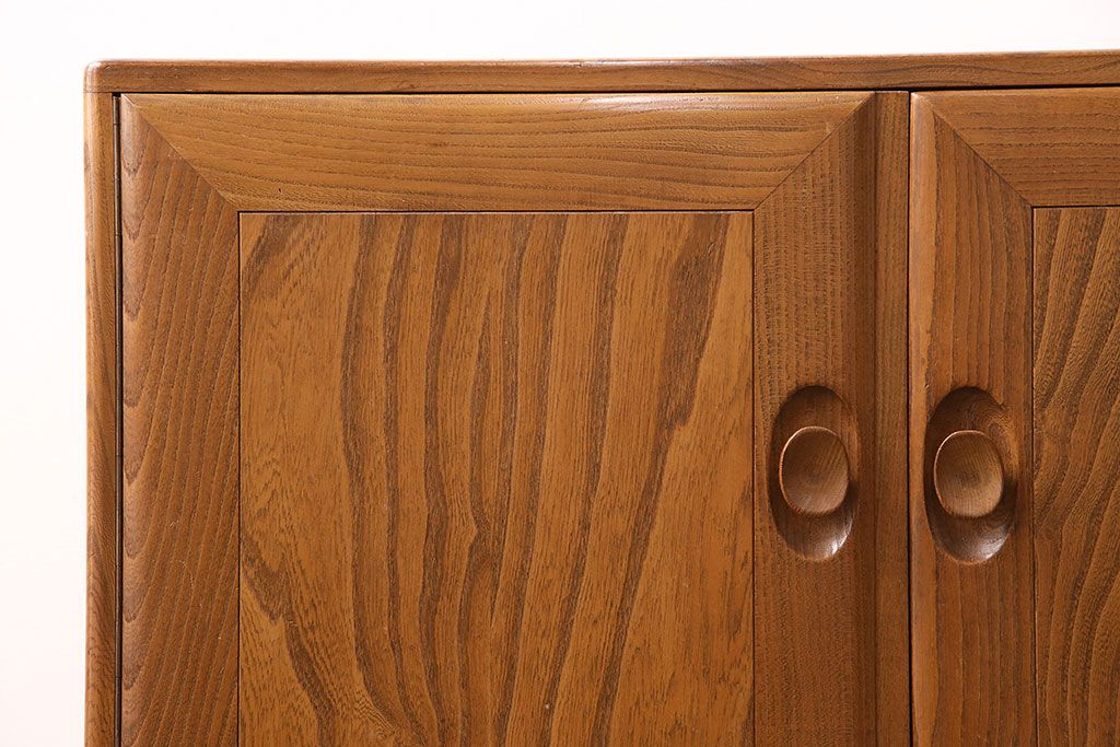 ヴィンテージ 楡材 ERCOL(アーコール) イギリスから届きました!温もり溢れるキャスター付きサイドボード(収納棚、キャビネット、ビンテージ)(R-047684)