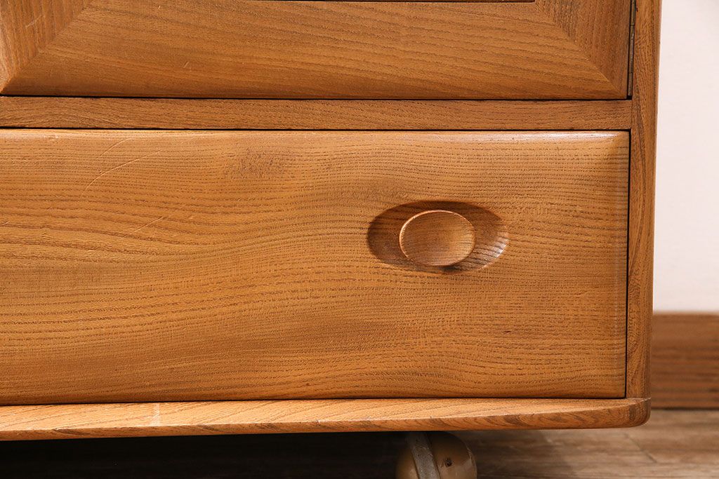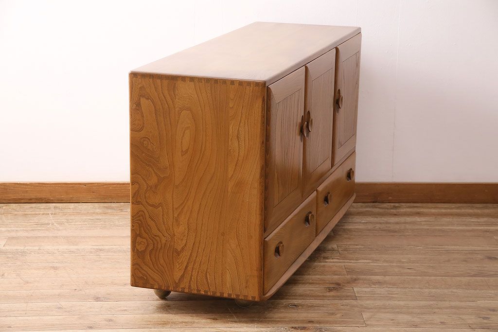 ヴィンテージ 楡材 ERCOL(アーコール) イギリスから届きました!温もり溢れるキャスター付きサイドボード(収納棚、キャビネット)(R-047684)です。