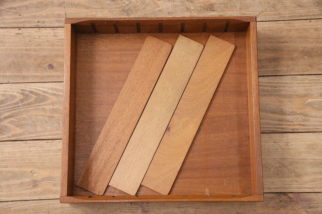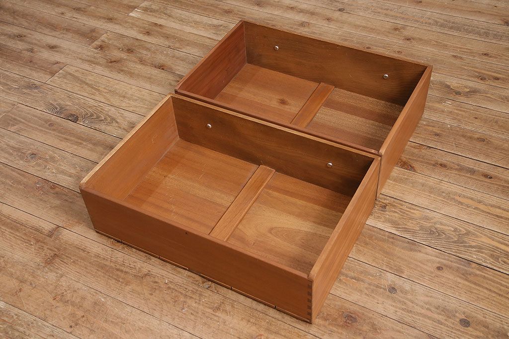 天板・棚板は塗り直しはせず、蜜蝋ワックスを施しております。当時の風合いを残した自然な仕上がりです。