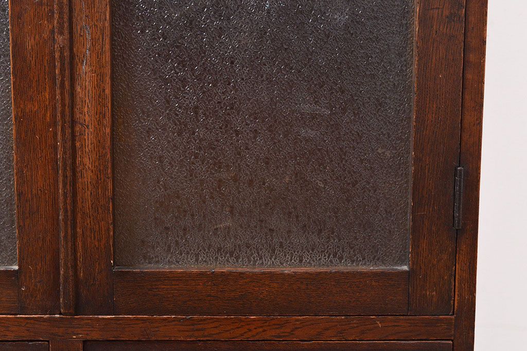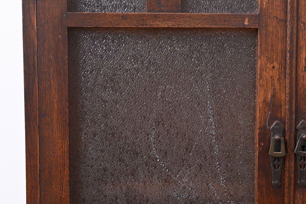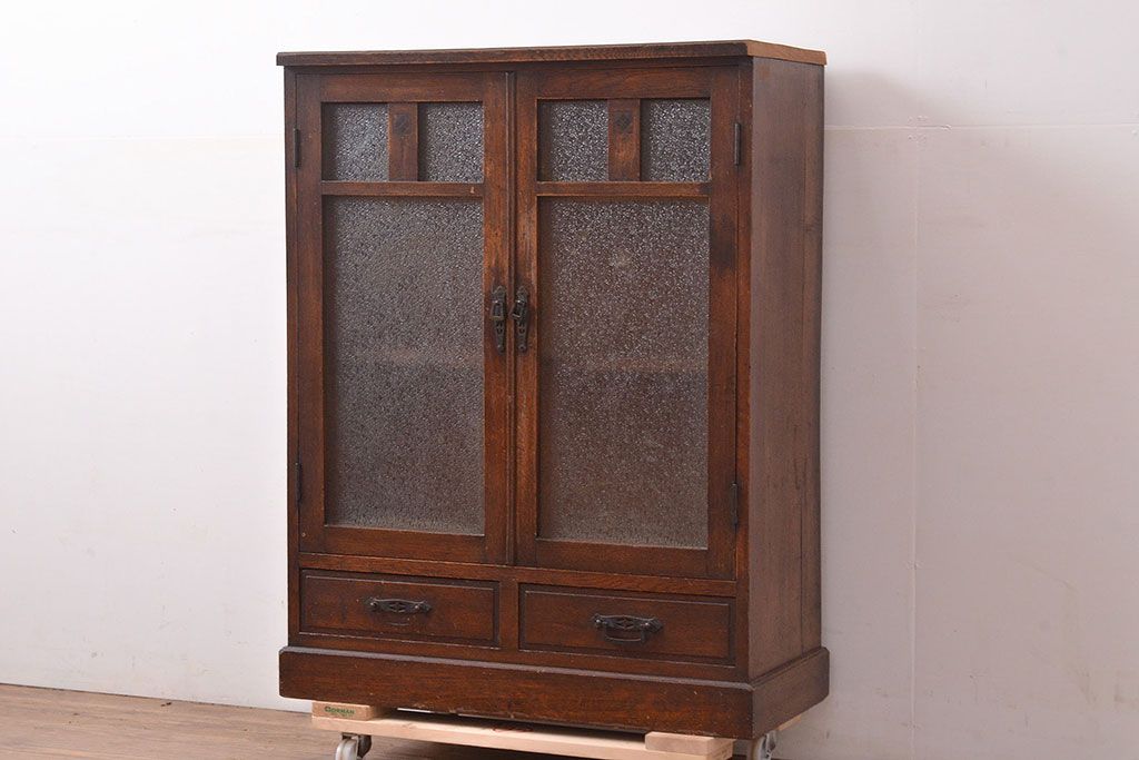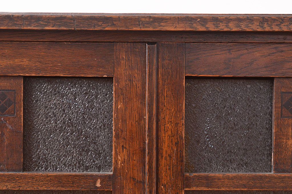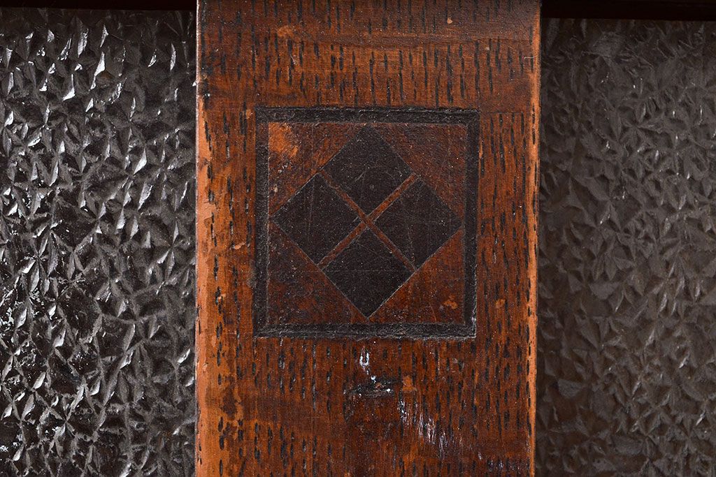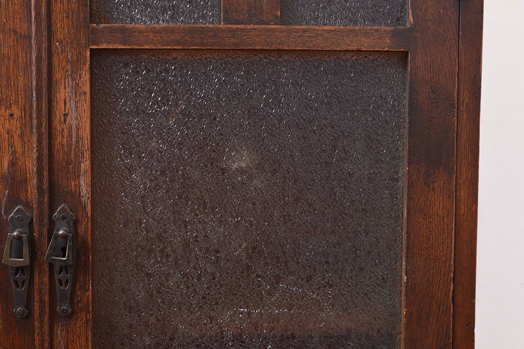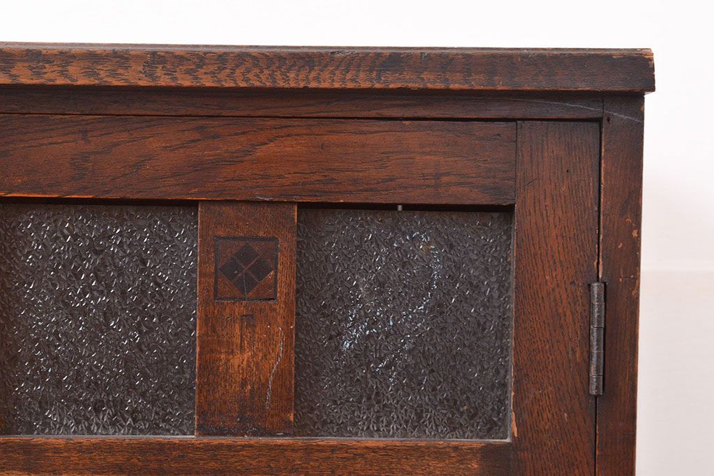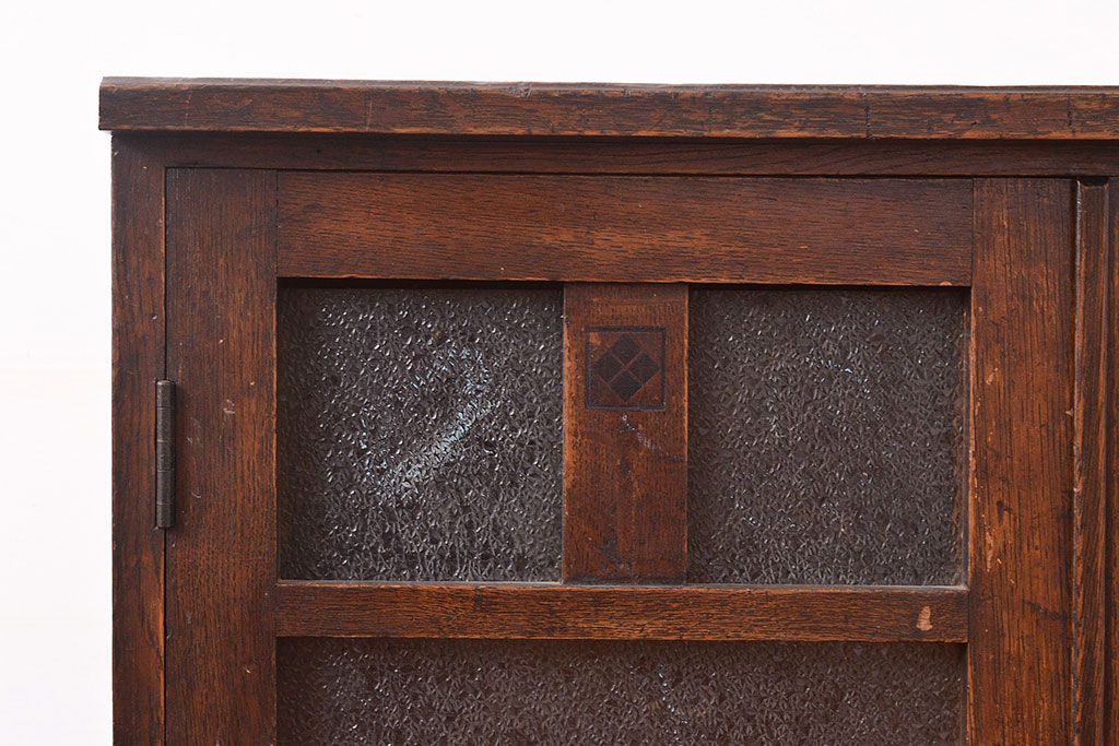 キャビネット・戸棚 > 和製アンティーク ダイヤガラスがレトロな雰囲気を演出する栓材製ガラス戸棚(収納棚、キャビネット)(R-047390)