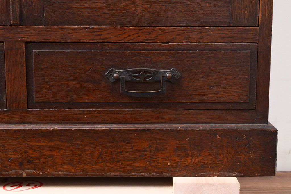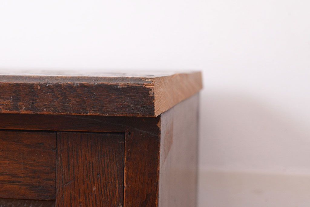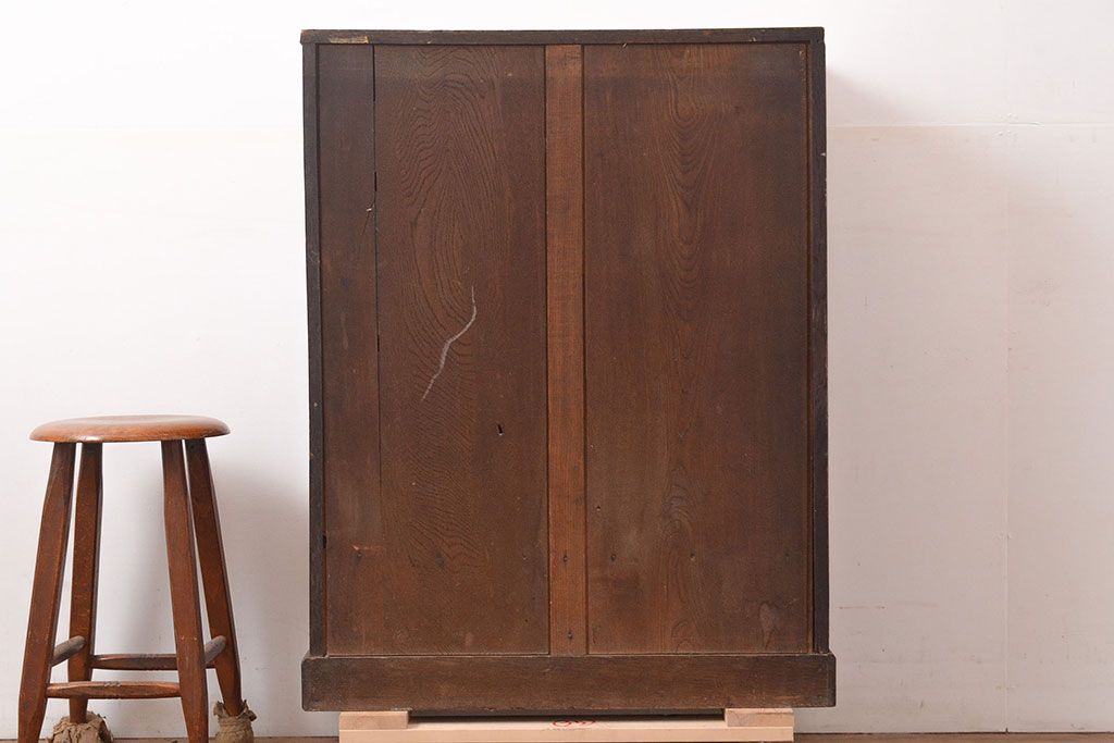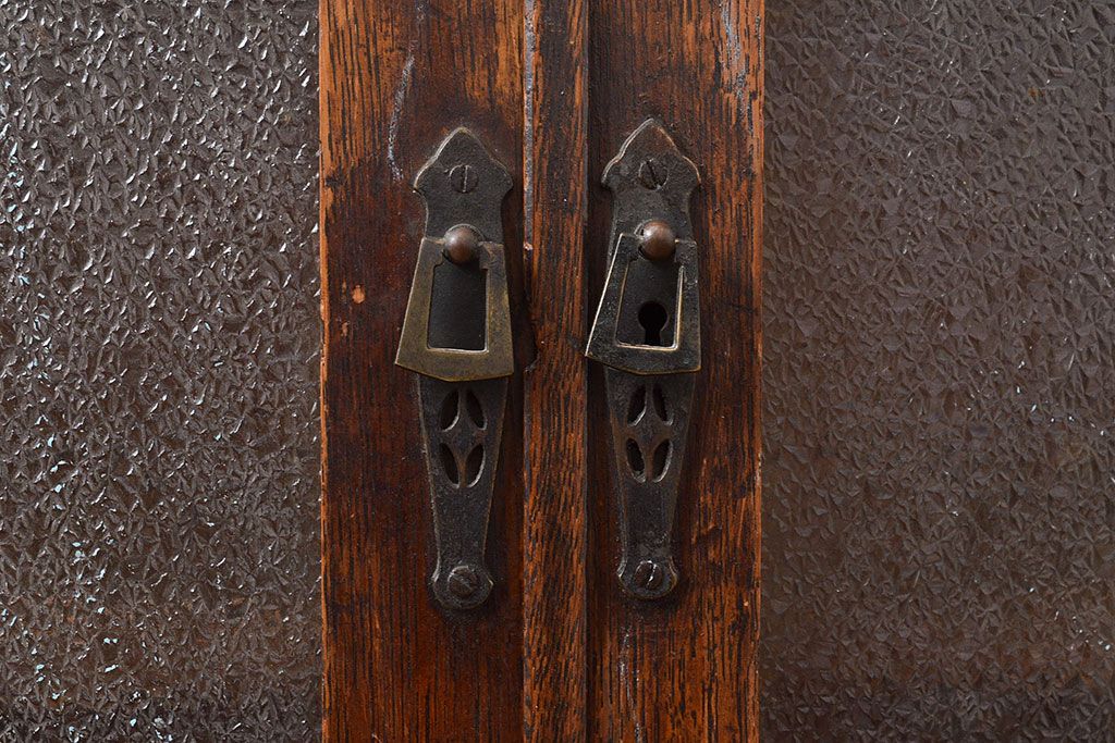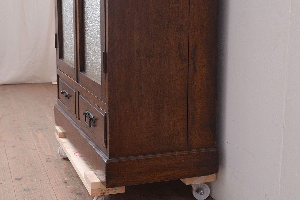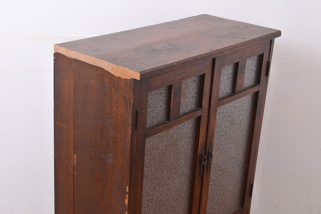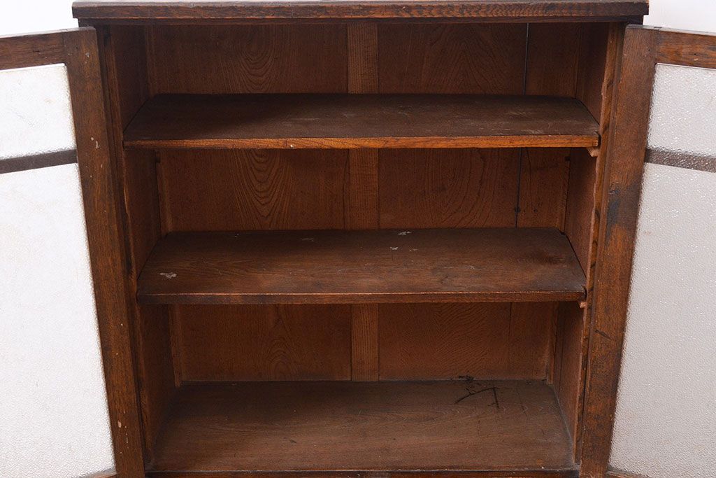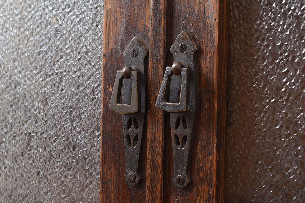 キャビネット・戸棚 > 和製アンティーク ダイヤガラスがレトロな雰囲気を演出する栓材製ガラス戸棚(収納棚、キャビネット)(R-047390)
