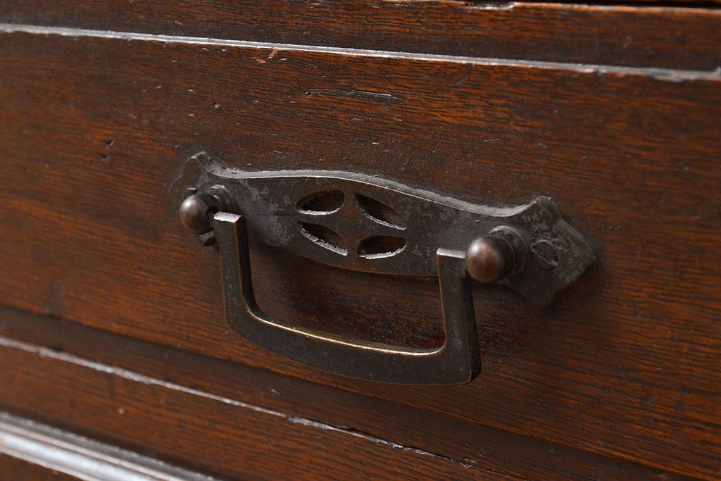 和製アンティーク ダイヤガラスがレトロな雰囲気を演出する栓材製ガラス戸棚(収納棚、キャビネット)(R-047390)です。