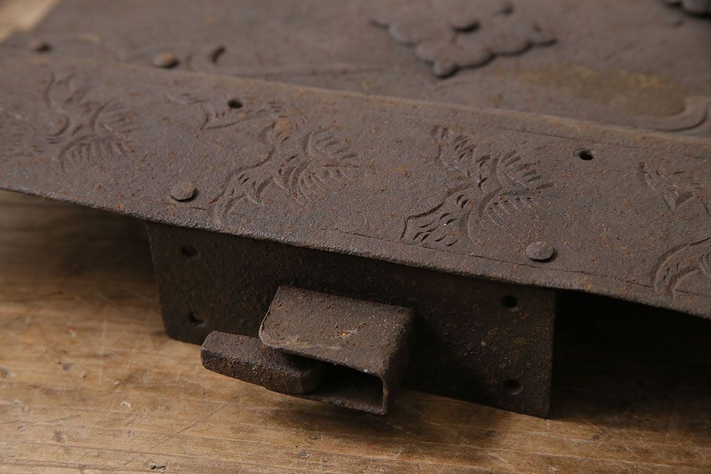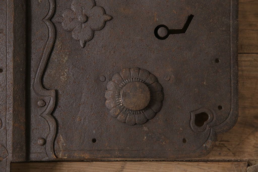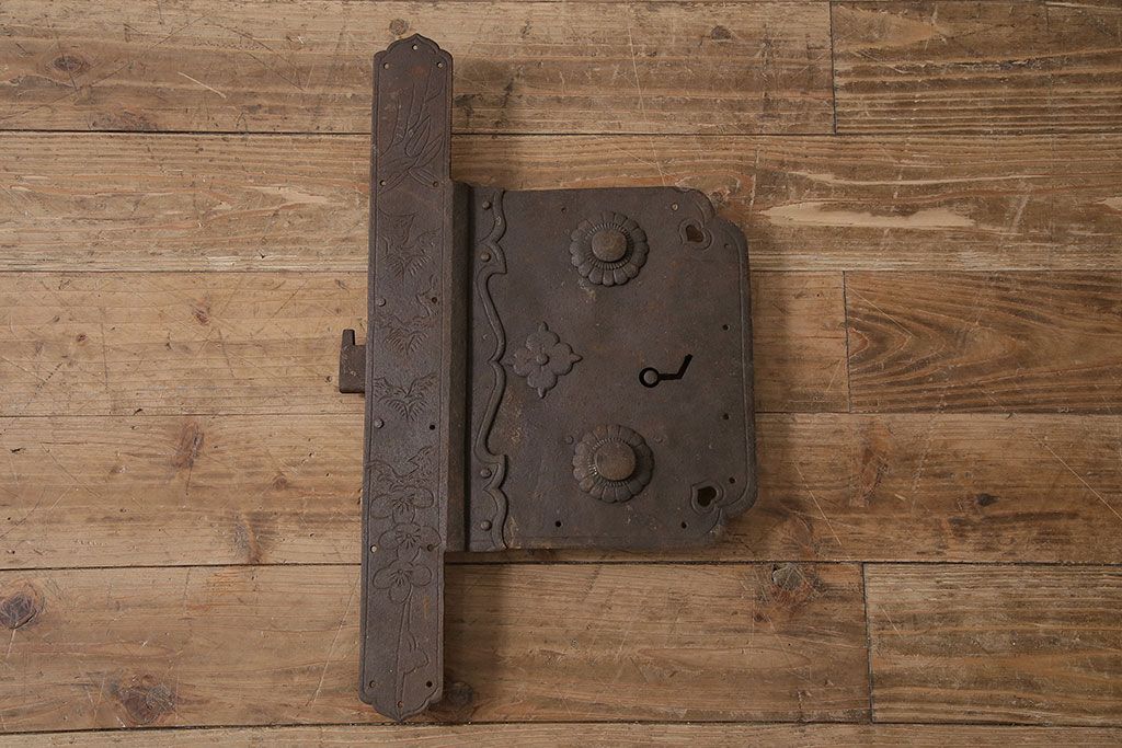アンティーク雑貨 上手物!! 繊細な意匠の技が光る蔵戸の錠前金具(彫金、打ち出し金具、ディスプレイ雑貨、蔵戸パーツ)(R-047486)