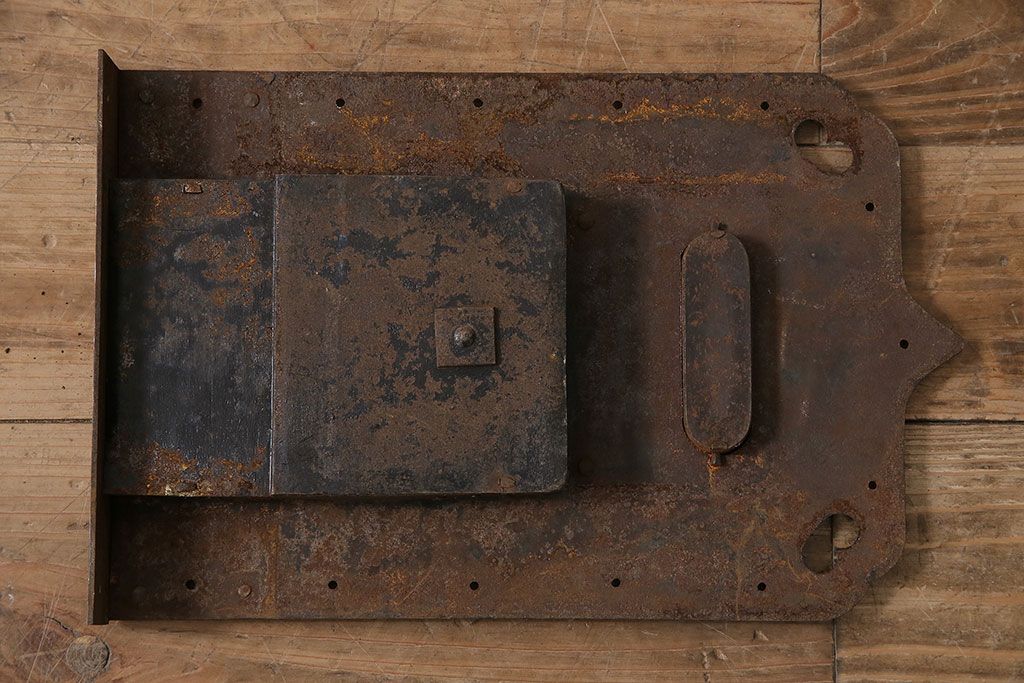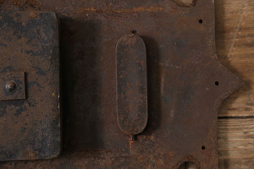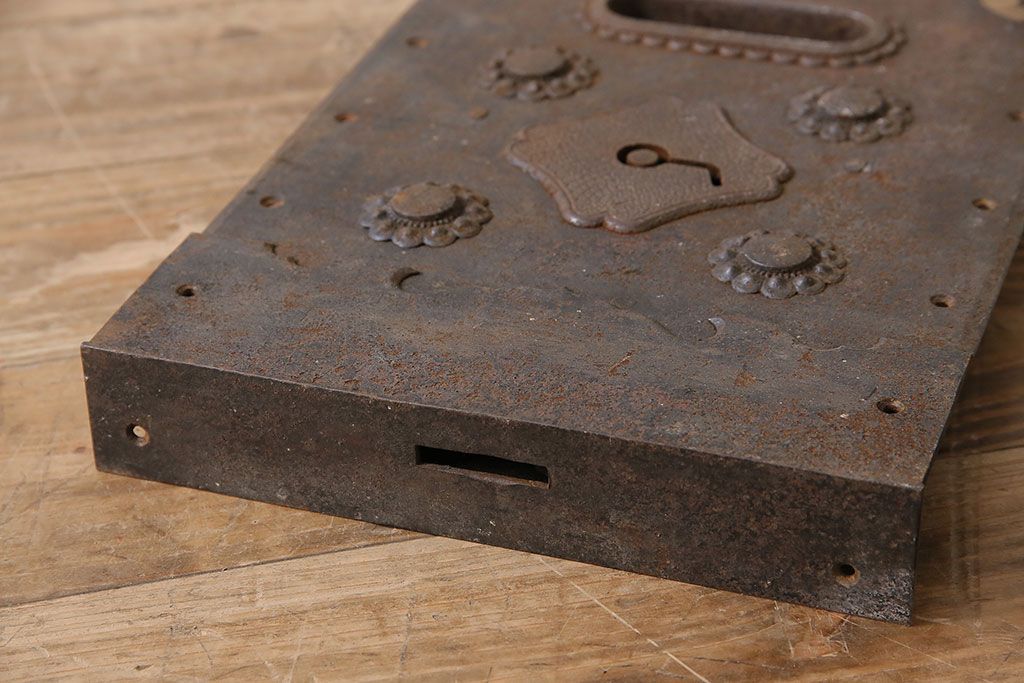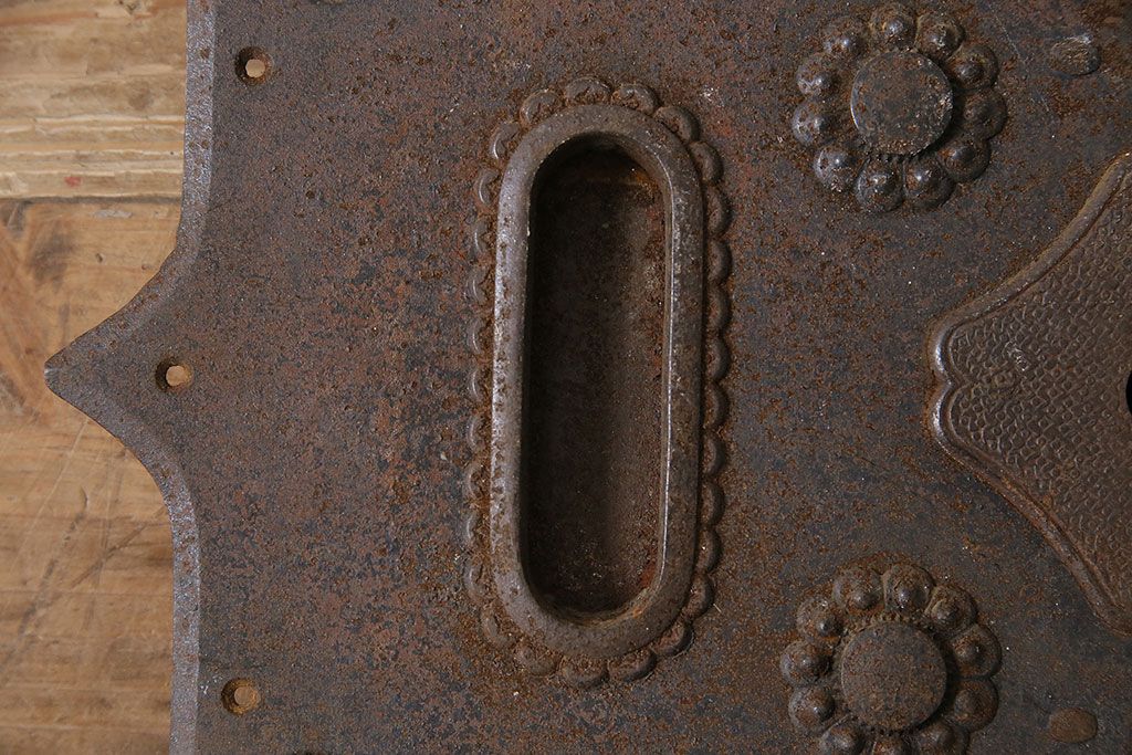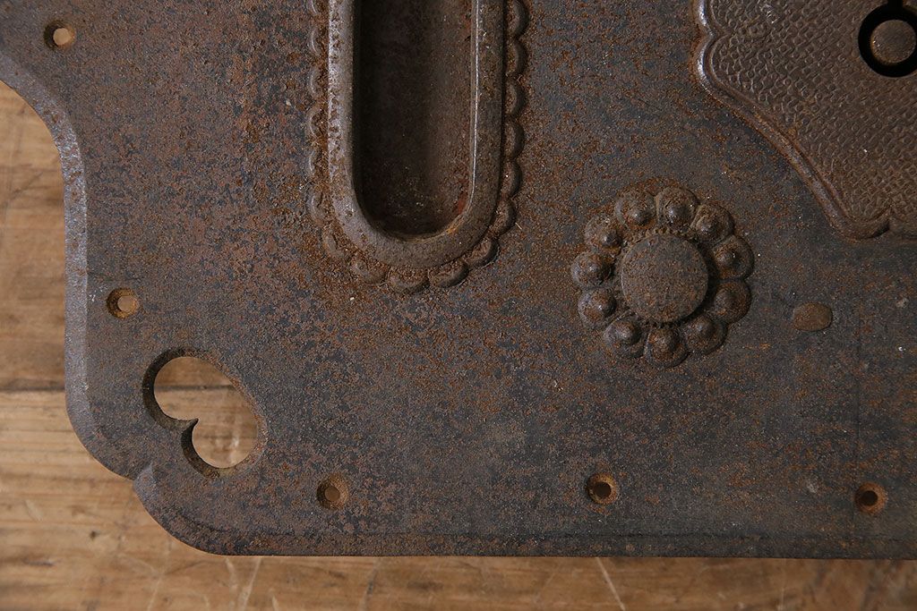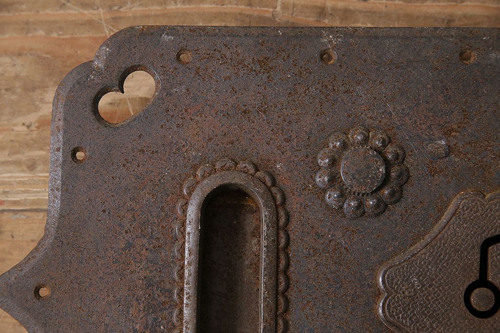 アンティーク雑貨 経年変化の味わいと意匠が魅力的な蔵戸の錠前金具(彫金、ディスプレイ雑貨、蔵戸パーツ)(R-047487)