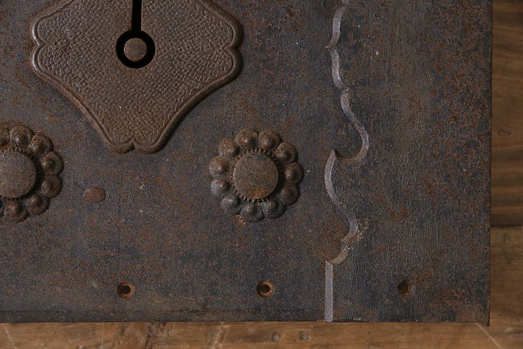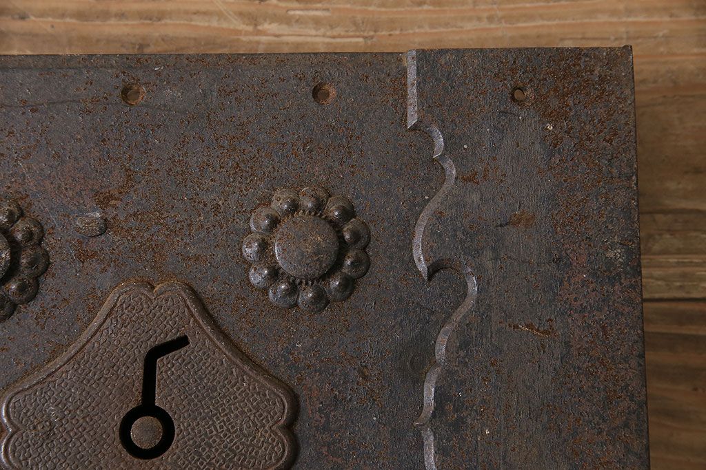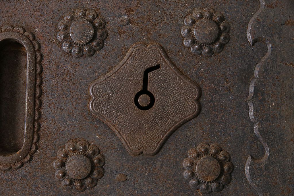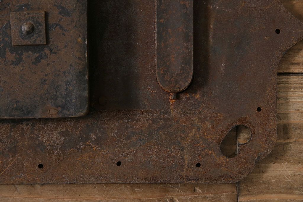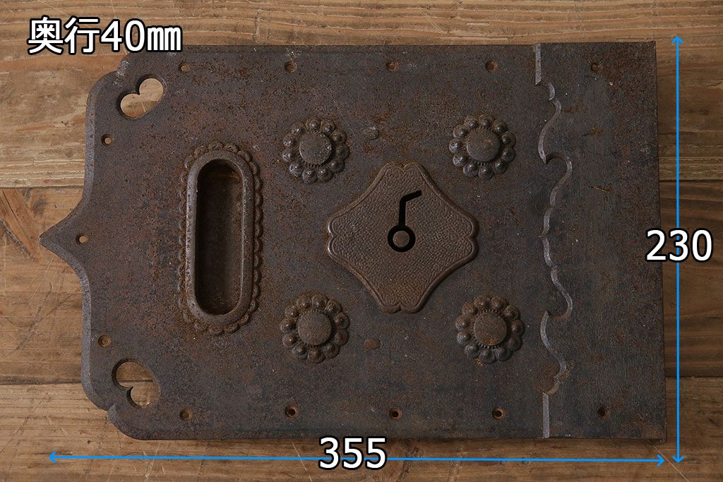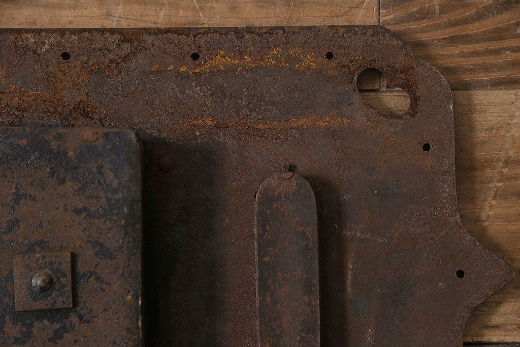 アンティーク雑貨 経年変化の味わいと意匠が魅力的な蔵戸の錠前金具(彫金、ディスプレイ雑貨、蔵戸パーツ)(R-047487)