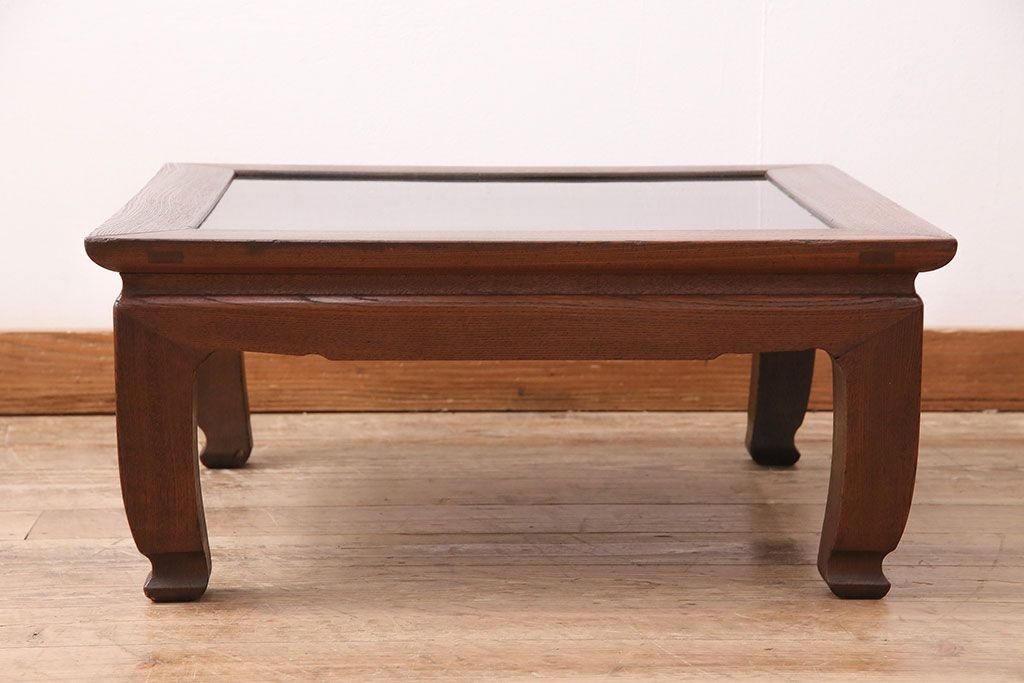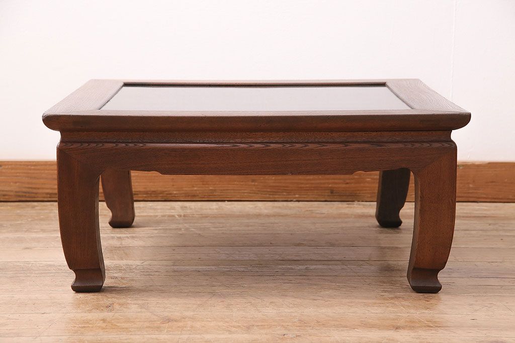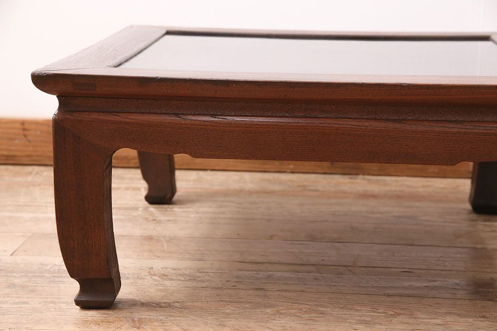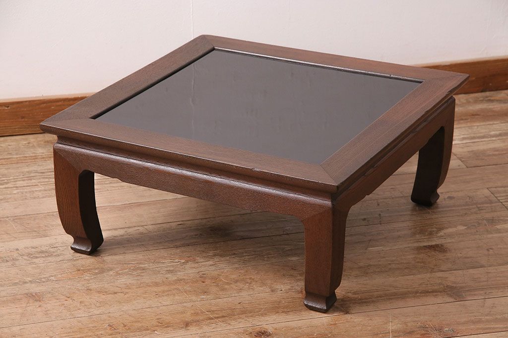 アンティーク ケヤキ材製 異素材の組み合わせがお洒落な小振りの座卓(センターテーブル、ローテーブル)(R-047817)