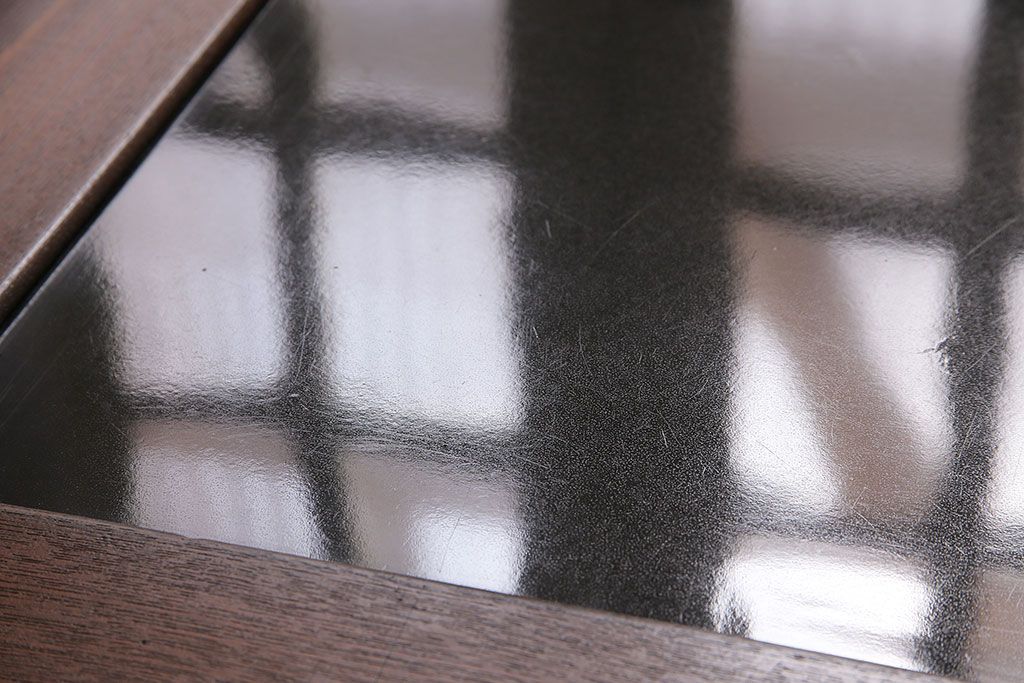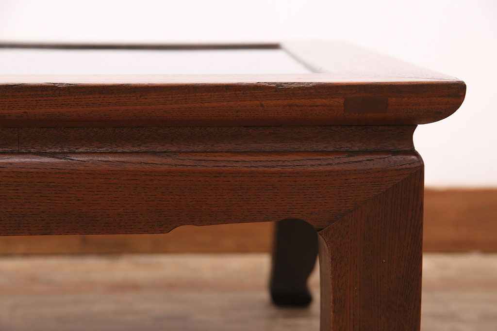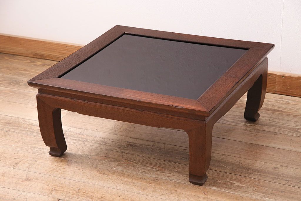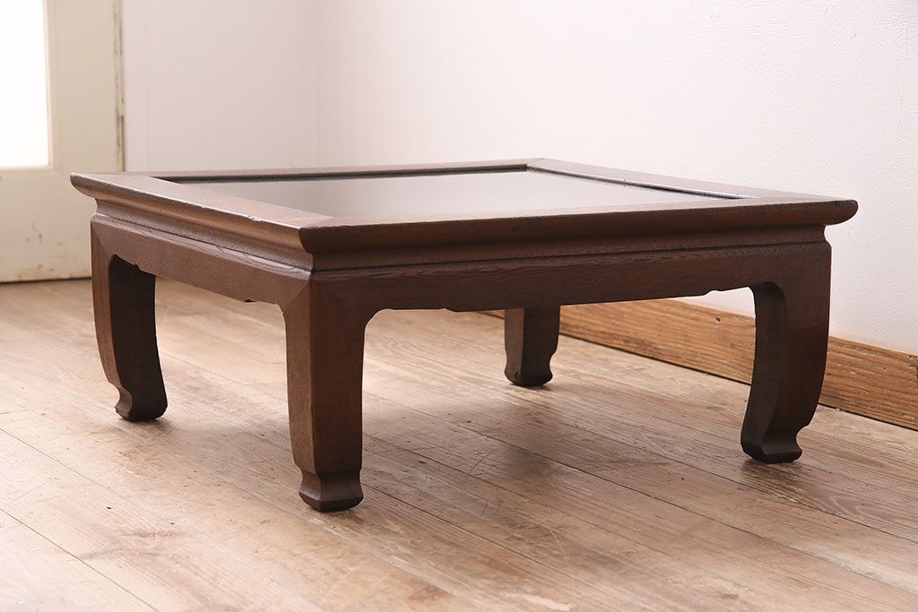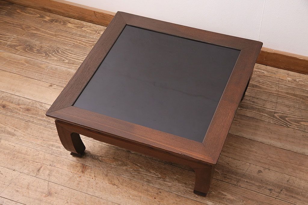 アンティーク ケヤキ材製 異素材の組み合わせがお洒落な小振りの座卓(センターテーブル、ローテーブル)(R-047817)