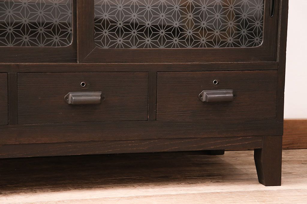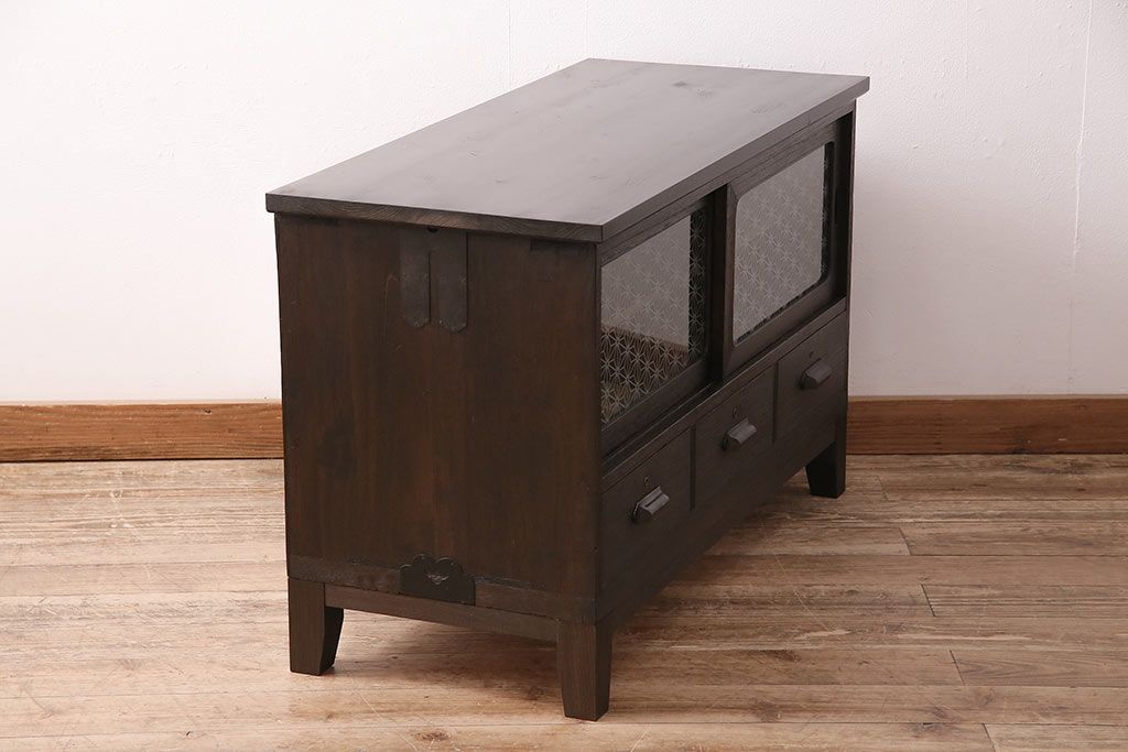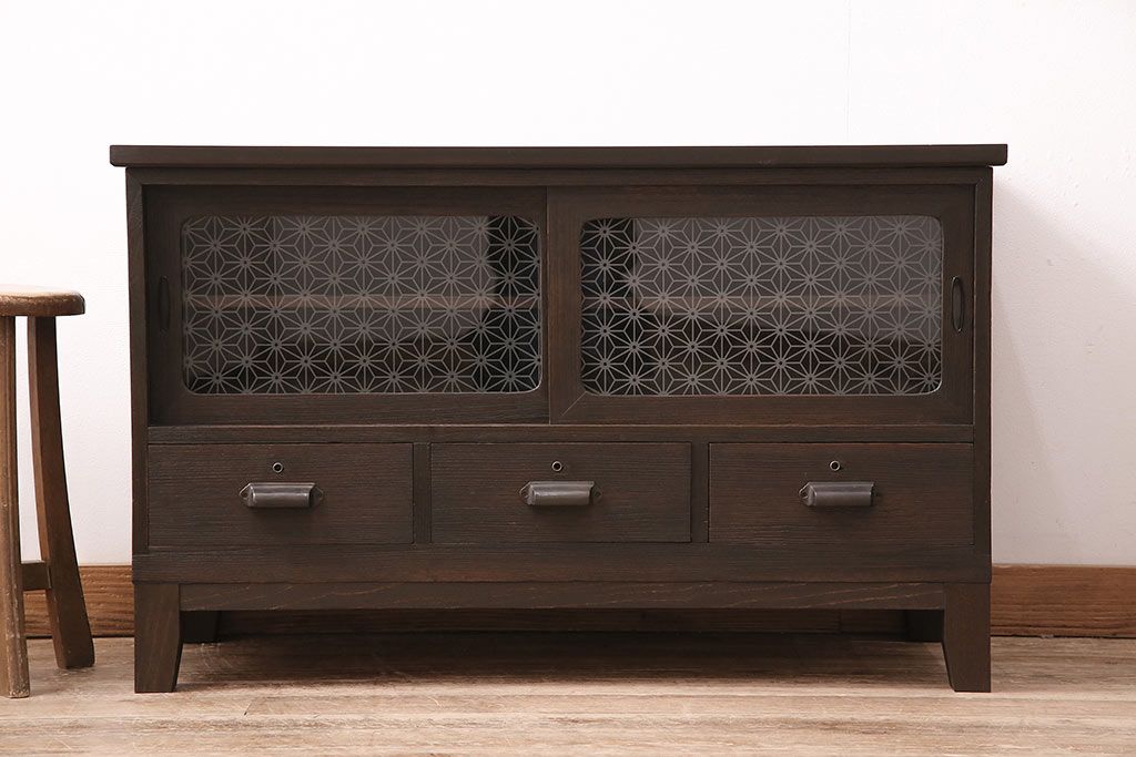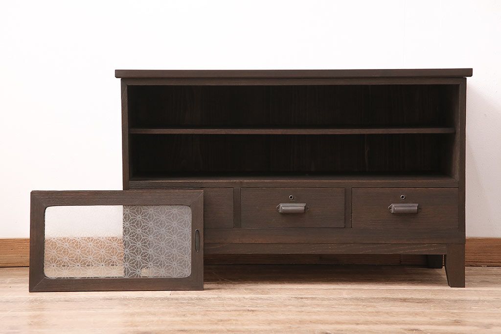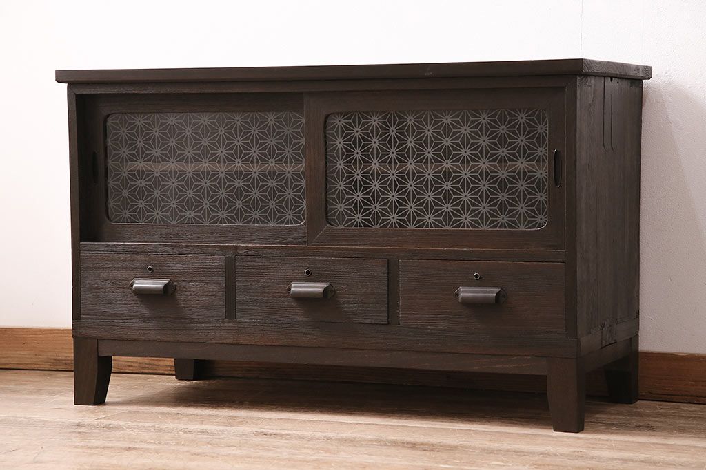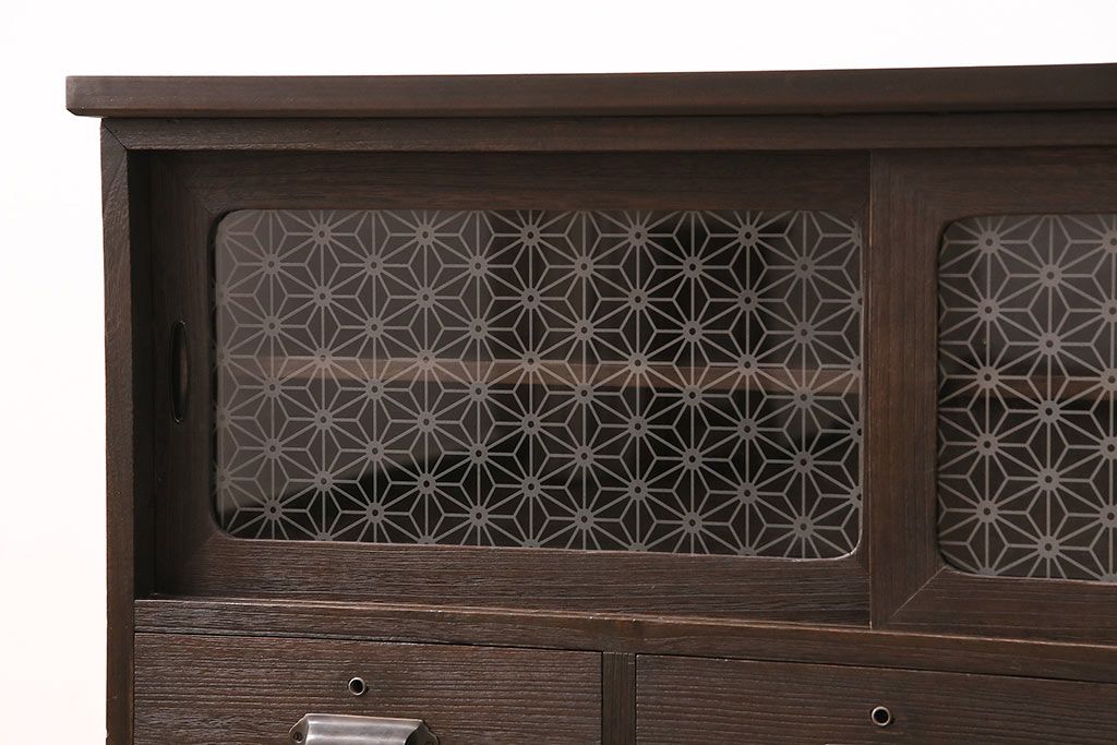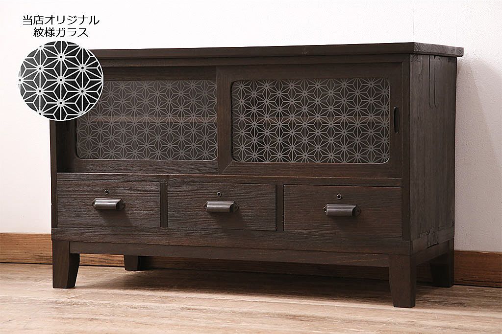 キャビネット・戸棚> 				テレビ台・ローボード				> 和製アンティーク 当店オリジナル模様のガラス入り!味わい深い前面桐材製の箪笥ローボード(収納棚、テレビ台、テレビボード)(R-047842)