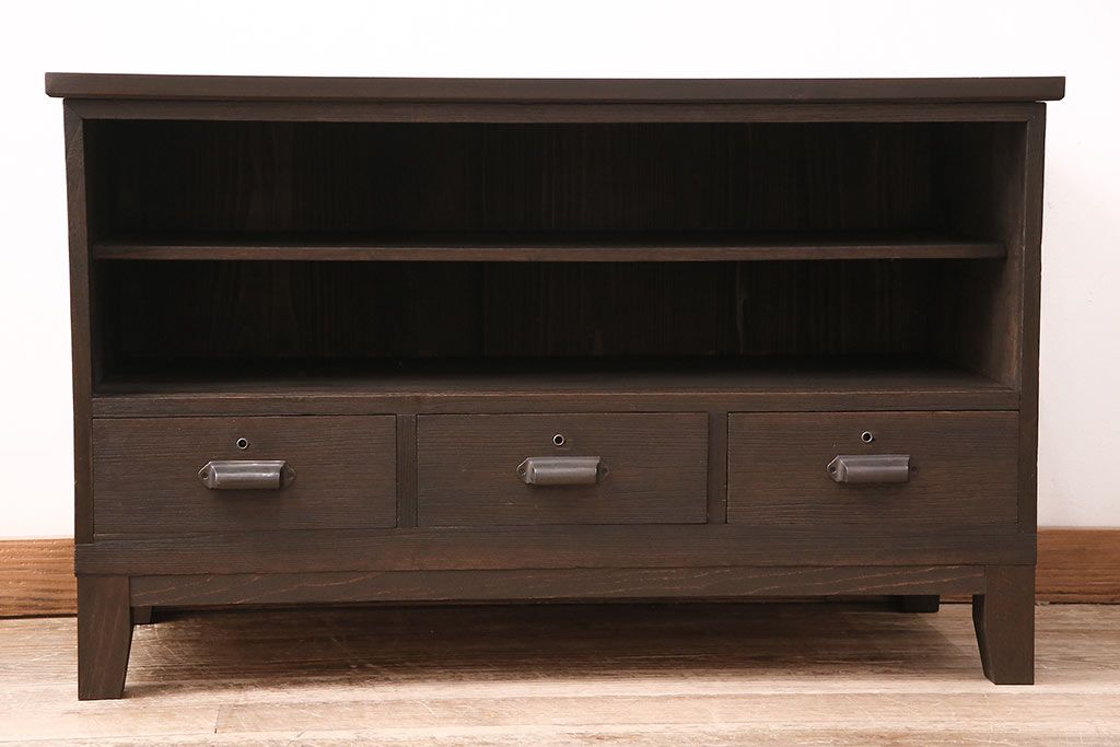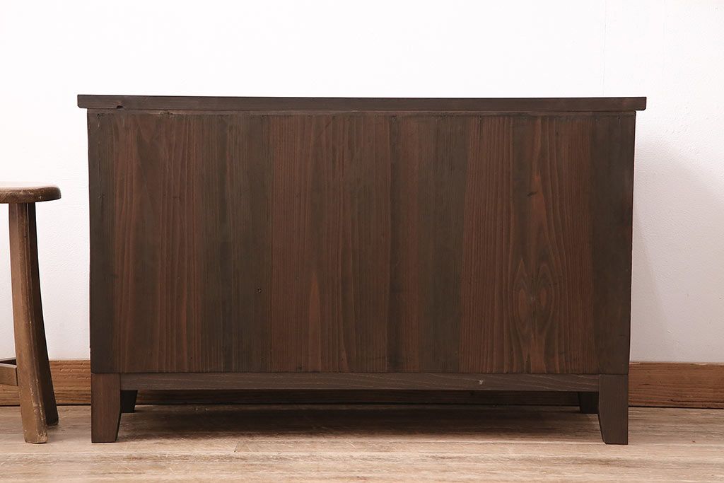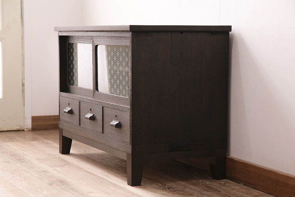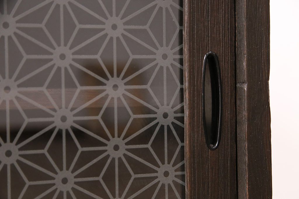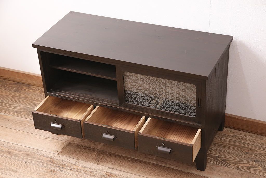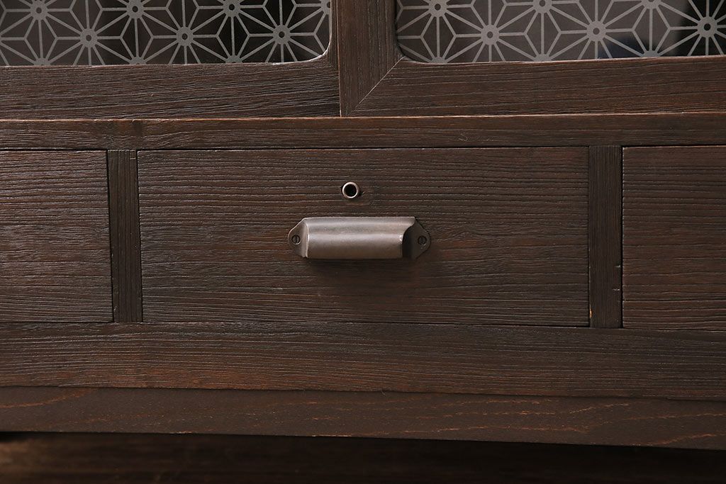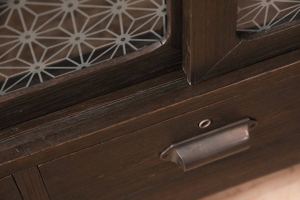 キャビネット・戸棚> 				テレビ台・ローボード				> 和製アンティーク 当店オリジナル模様のガラス入り!味わい深い前面桐材製の箪笥ローボード(収納棚、テレビ台、テレビボード)(R-047842)
