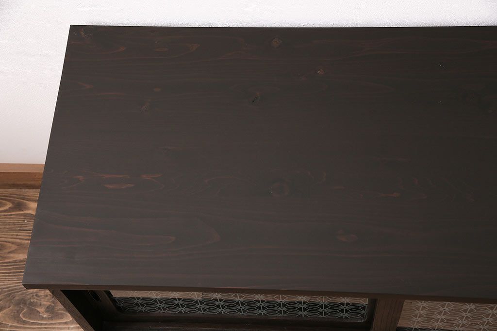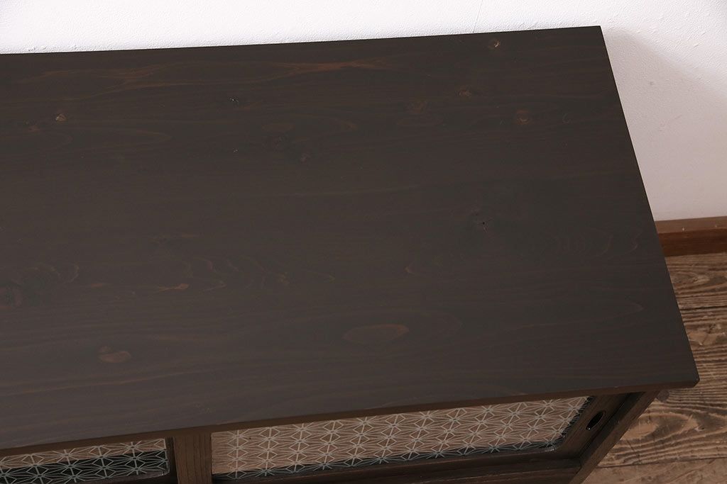 和製アンティーク 当店オリジナル模様のガラス入り!味わい深い前面桐材製の箪笥ローボード(収納棚、テレビ台、テレビボード)(R-047842)です。