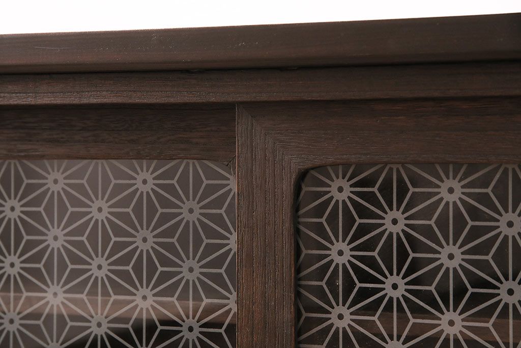 和製アンティーク 当店オリジナル模様のガラス入り!味わい深い前面桐材製の箪笥ローボード(収納棚、テレビ台、テレビボード)(R-047842)