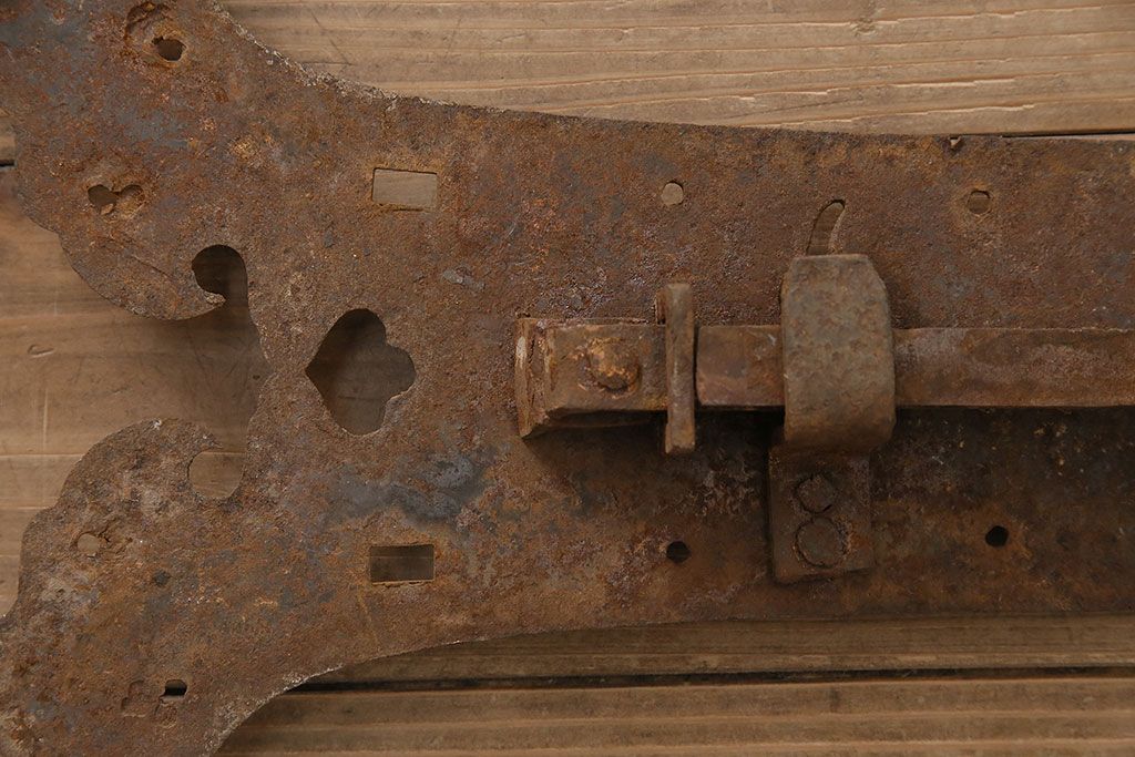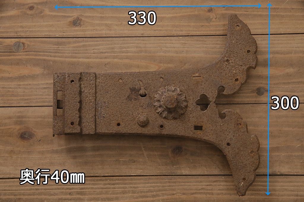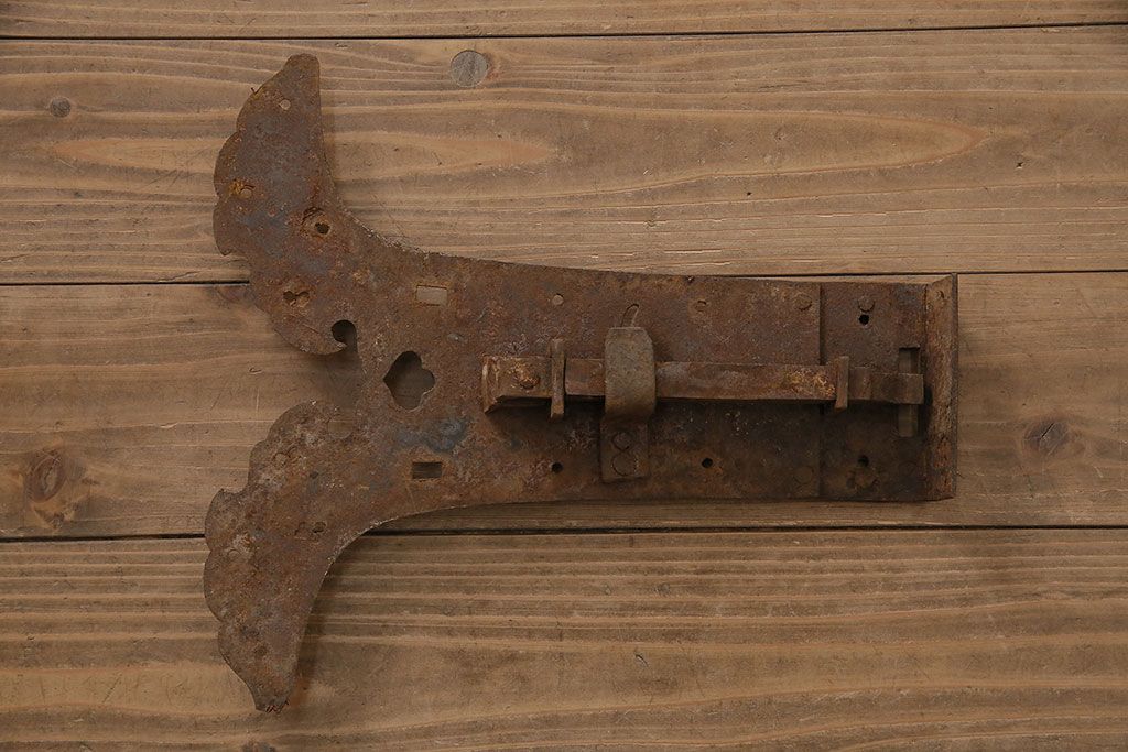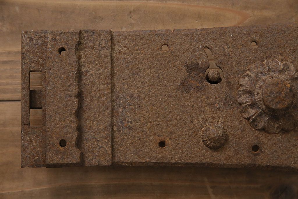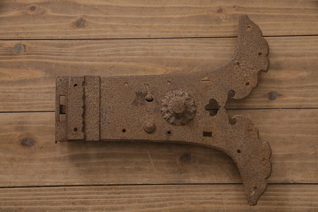 和製アンティーク 個性的な形が目を引く上質な造りの錠前金具(ディスプレイ雑貨)(R-047476)