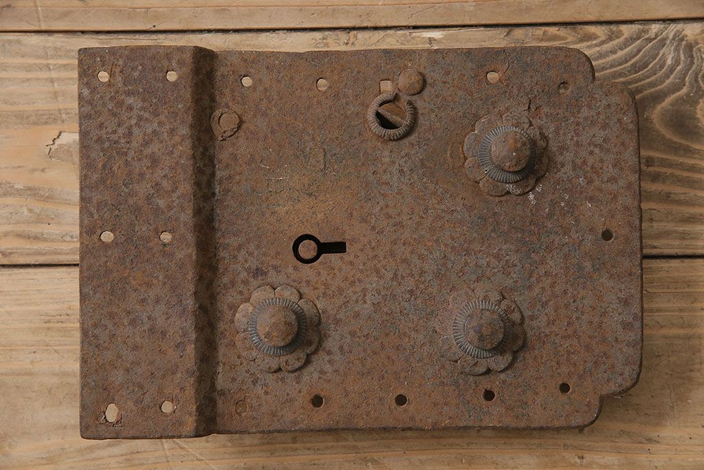和製アンティーク 使い込まれた風合いがかっこいい上質な造りの錠前金具(ディスプレイ雑貨)(R-047477)