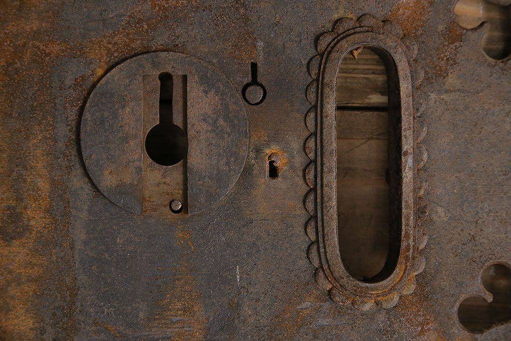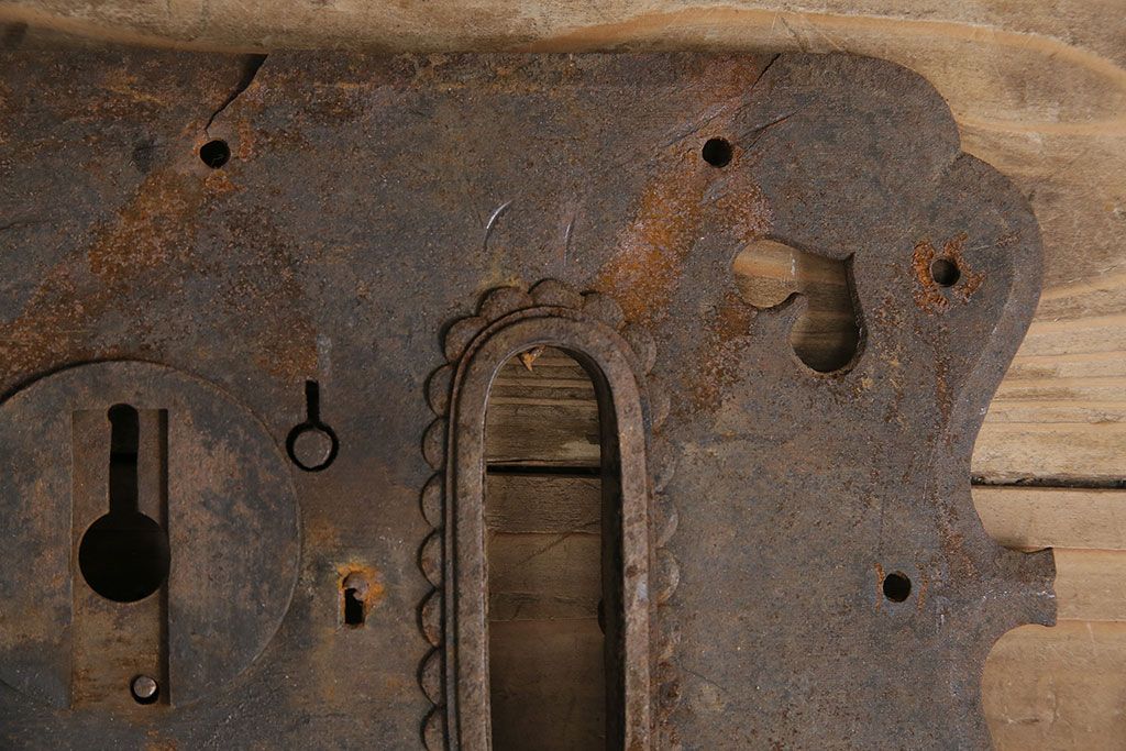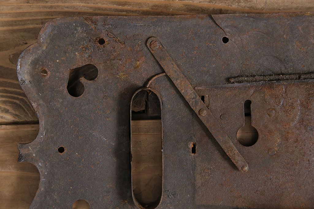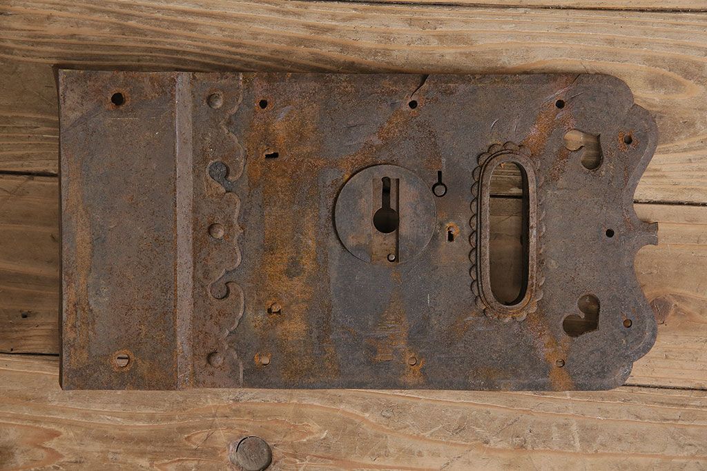 和製アンティーク ごつごつした質感が味わい深い上質な造りの錠前金具(ディスプレイ雑貨)(R-047478)