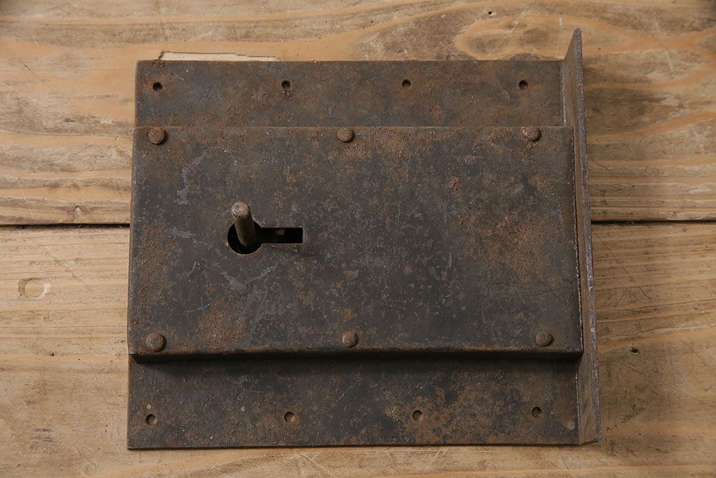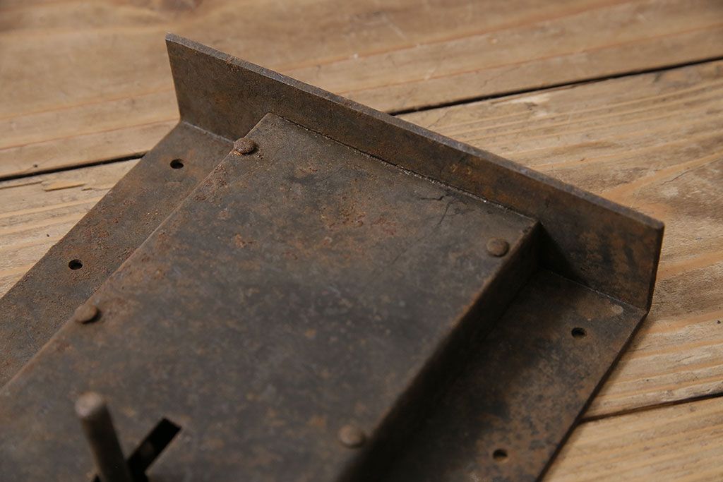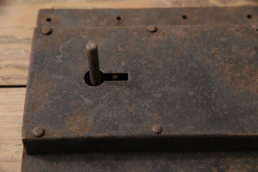 和製アンティーク シンプルなつくりが魅力的な蔵戸の錠前金具(ディスプレイ雑貨、蔵戸パーツ)(R-047479)