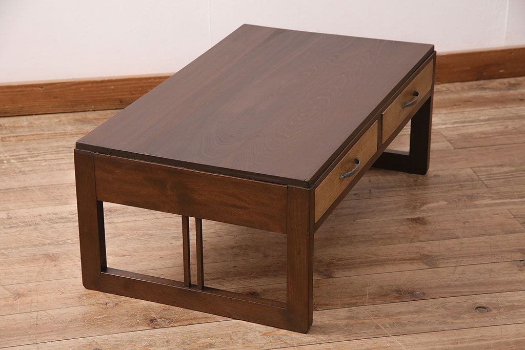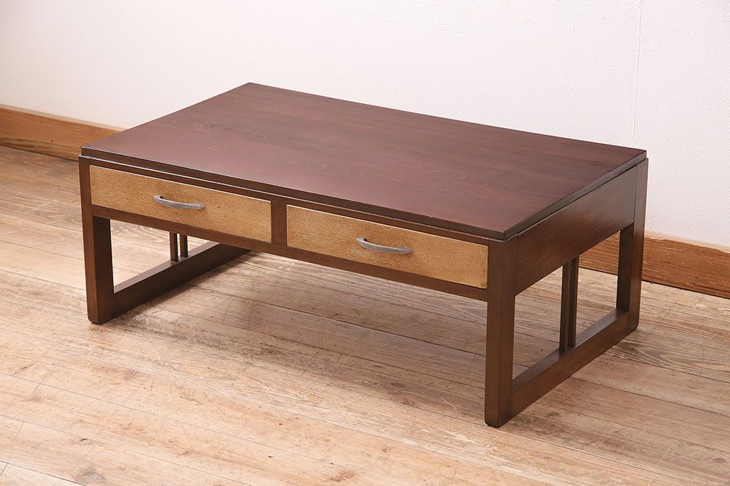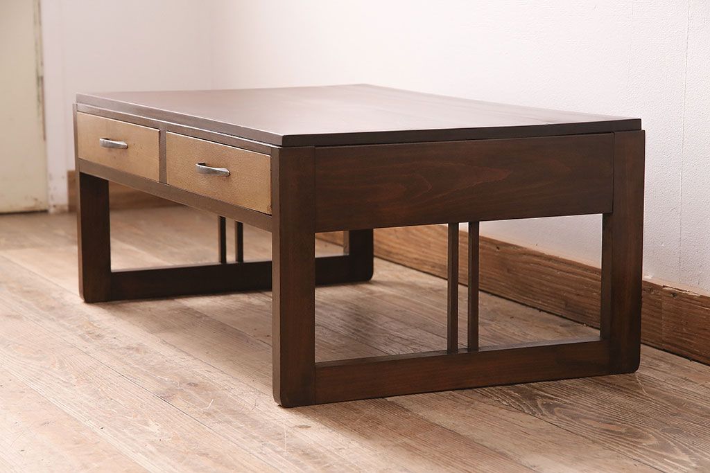 昭和レトロ 2色の色使いが存在感を程よく放つ文机(座卓、座机、ローテーブル、センターテーブル)(R-047815)