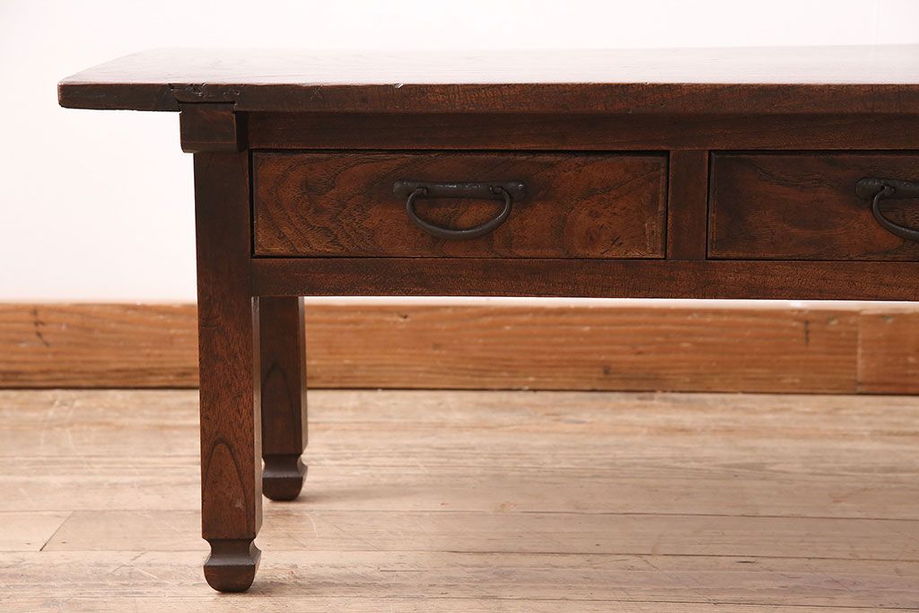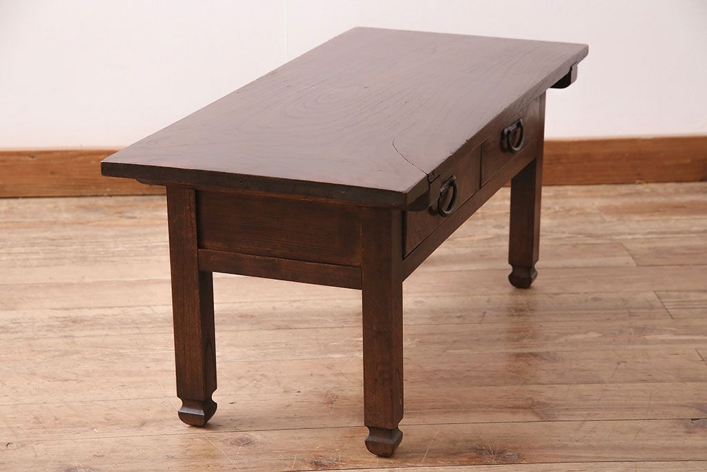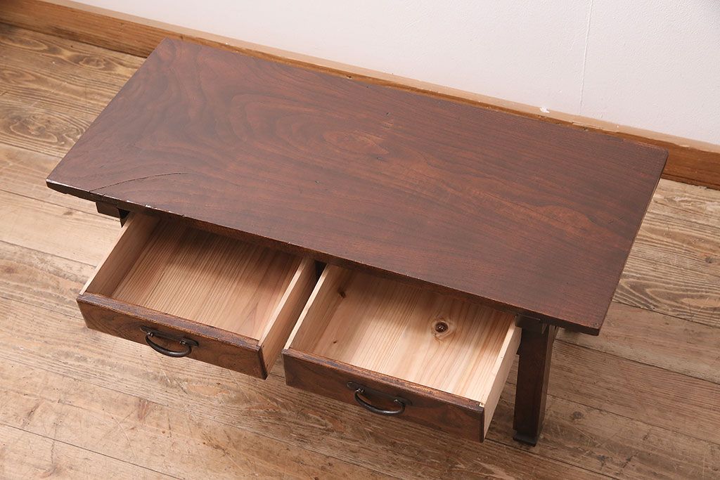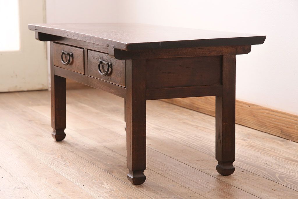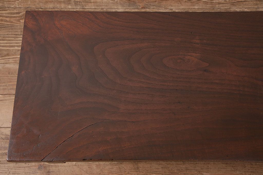 和製アンティーク 脚のシルエットがアクセントになる総栗材製の文机(座卓、座机、ローテーブル、センターテーブル)(R-047816)