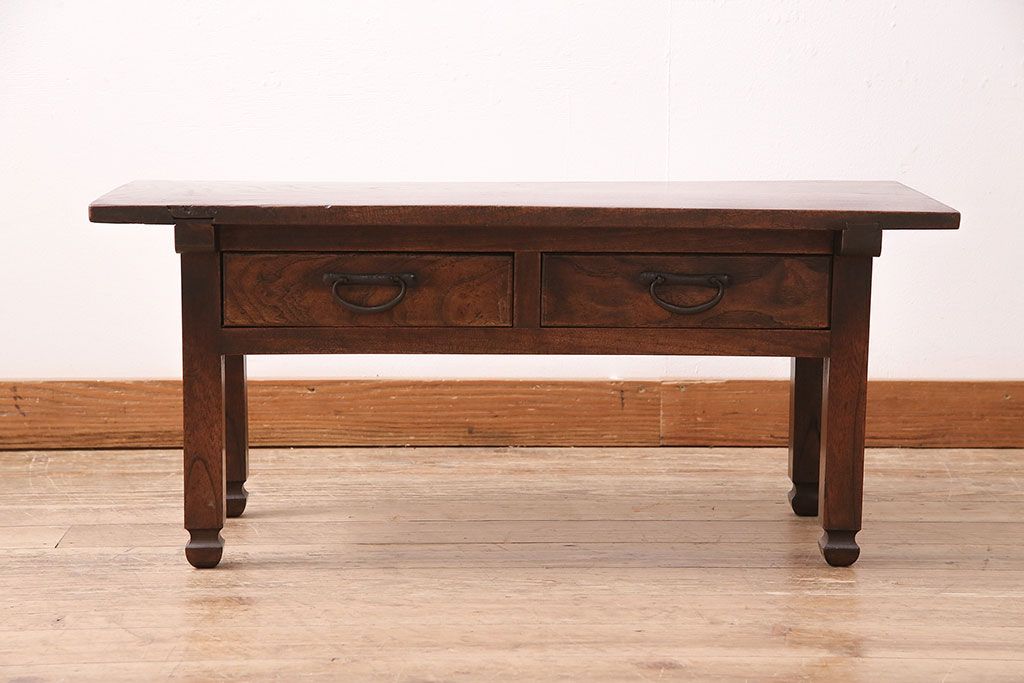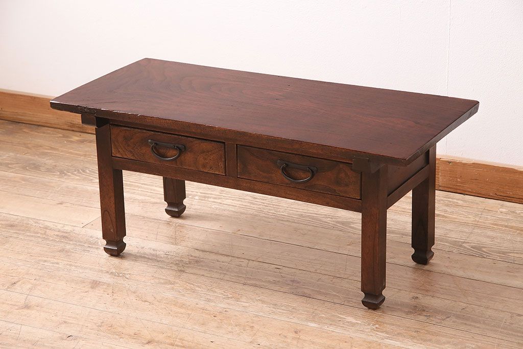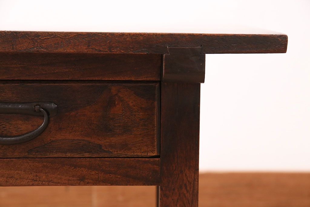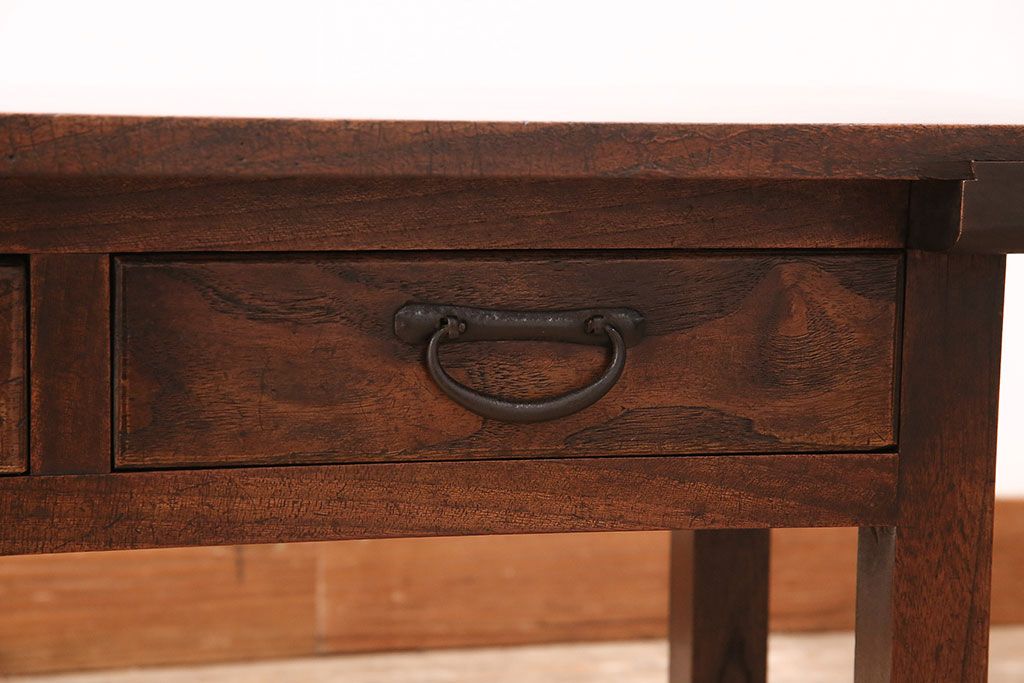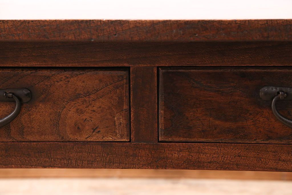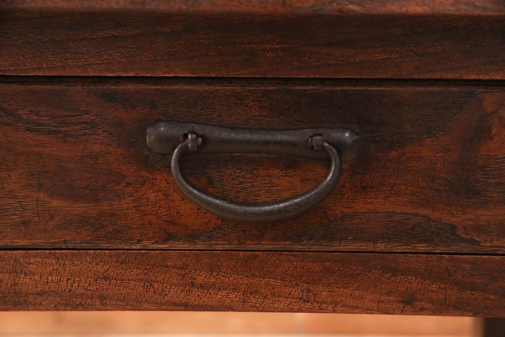 和製アンティーク 脚のシルエットがアクセントになる総栗材製の文机(座卓、座机、ローテーブル、センターテーブル)(R-047816)