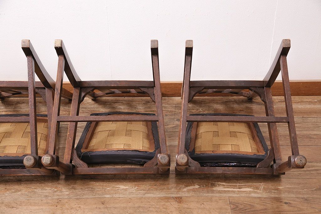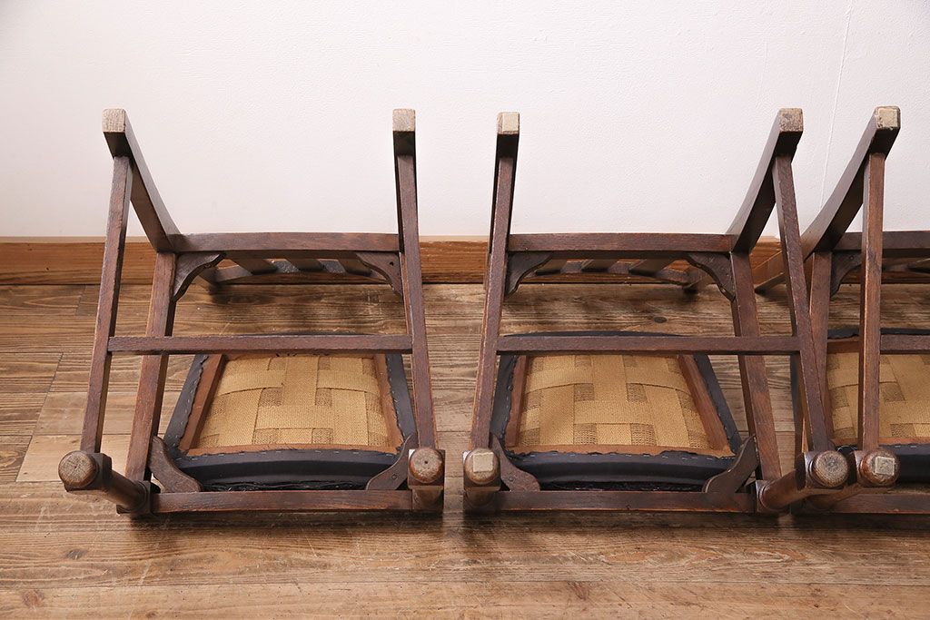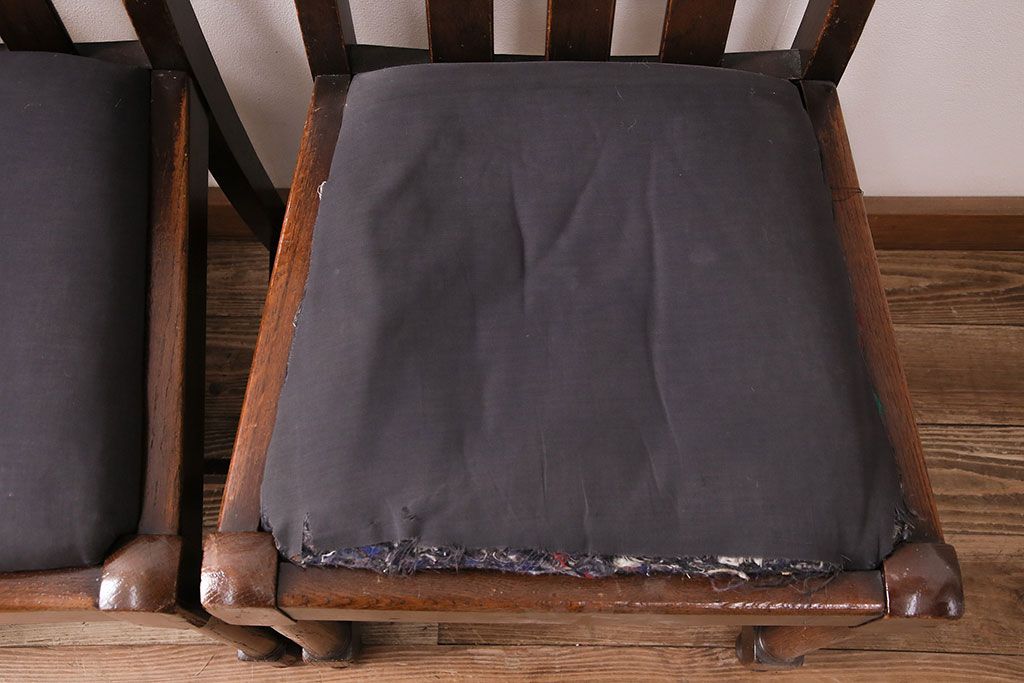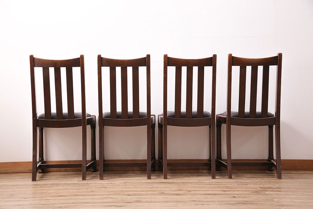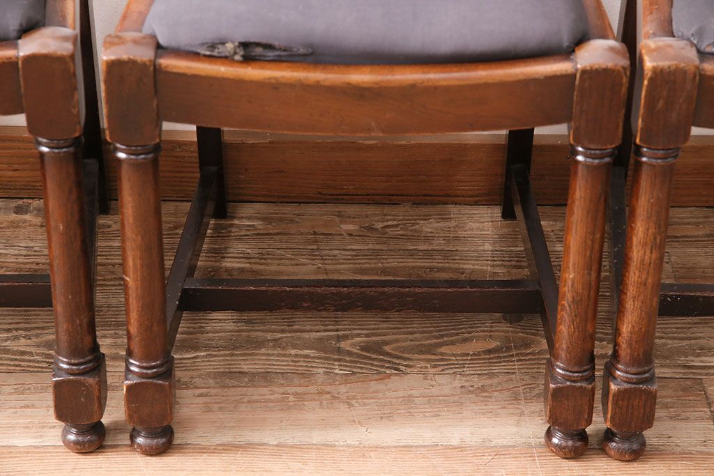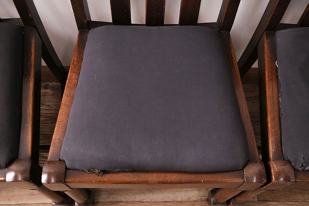 状態が気になる方には現状販売はおすすめできませんので、慎重なご検討をお願いいたします。イギリスアンティーク オーク材 落ち着いた雰囲気が魅力のシンプルなチェア4脚セット(ダイニングチェア、椅子)(R-047809)です。