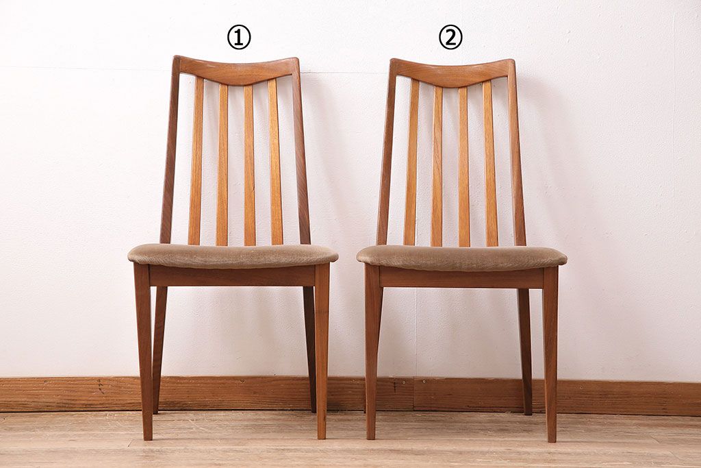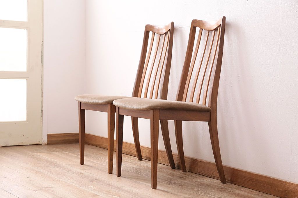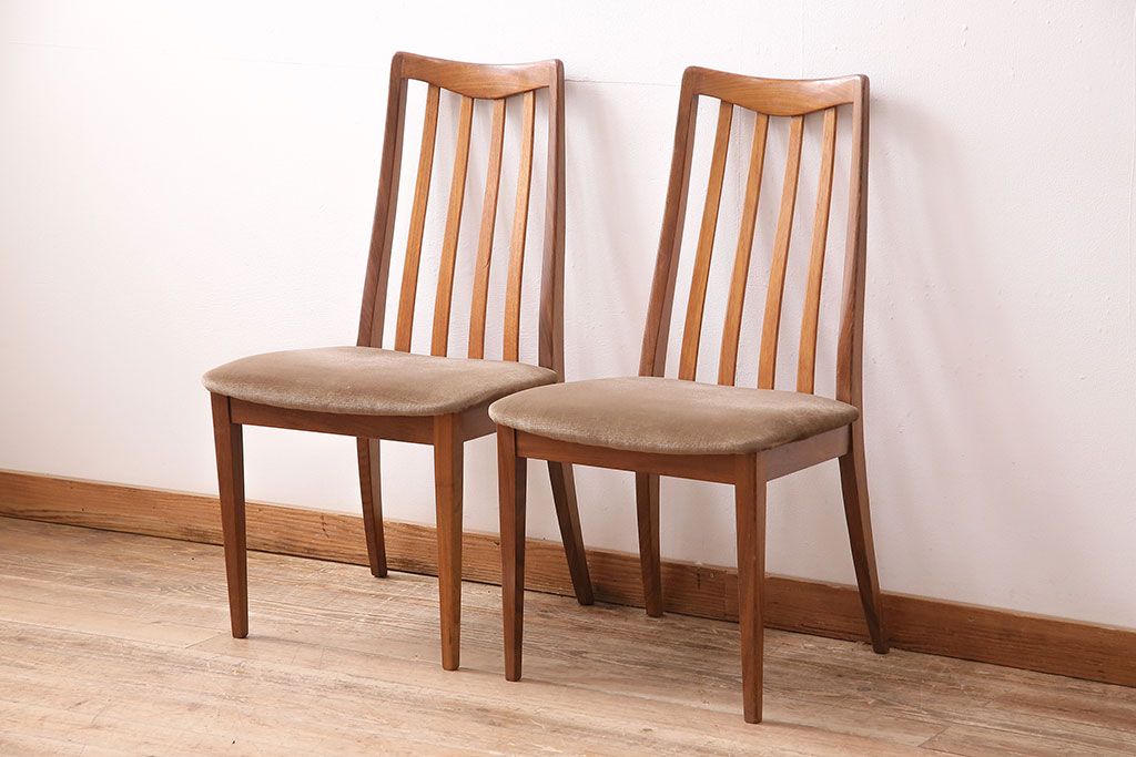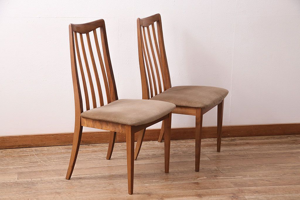 イギリスヴィンテージ G-PLAN(ジープラン) 北欧テイストの心安らぐ空間づくりにおすすめなチーク材製チェア2脚セット(ダイニングチェア、椅子)(R-047803)です。