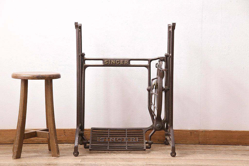 イギリスアンティーク 昔ながらの佇まいが魅力的なシンガーミシンの鉄脚(ミシンテーブル、ミシン台)(R-047691)