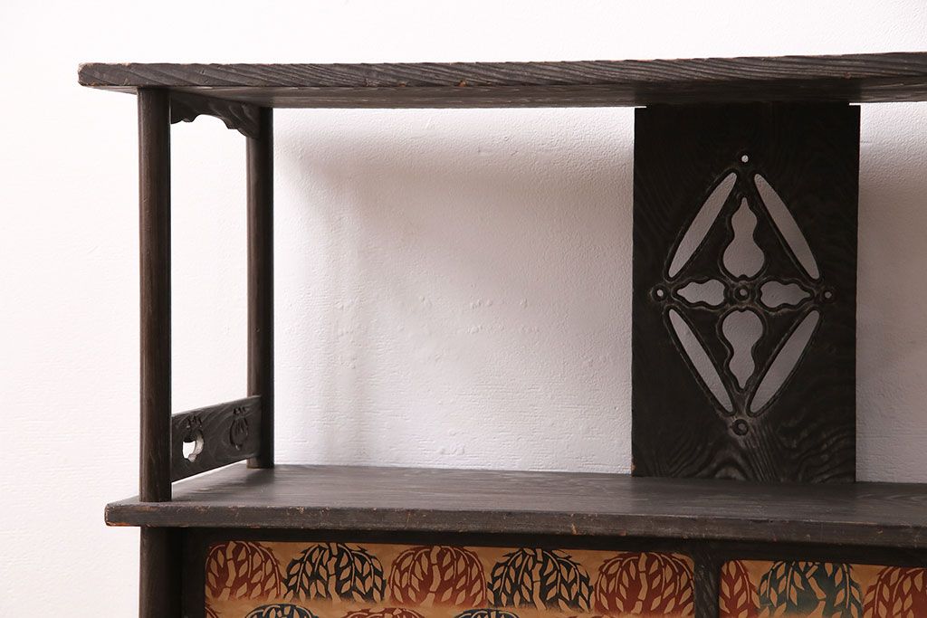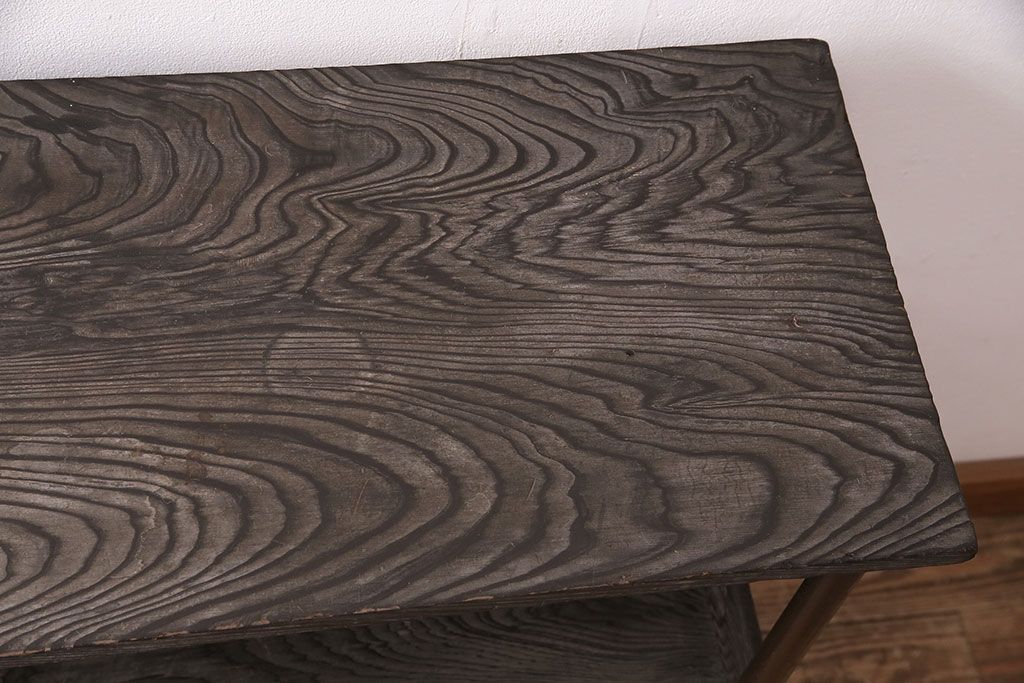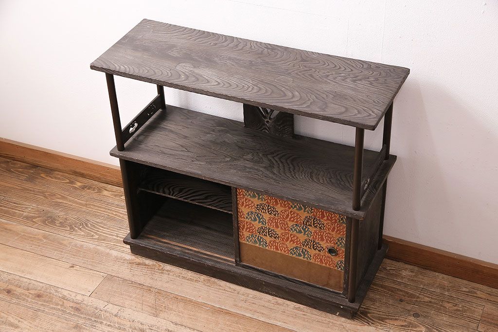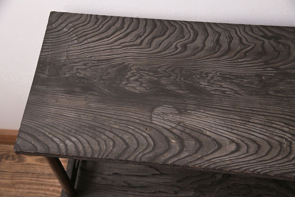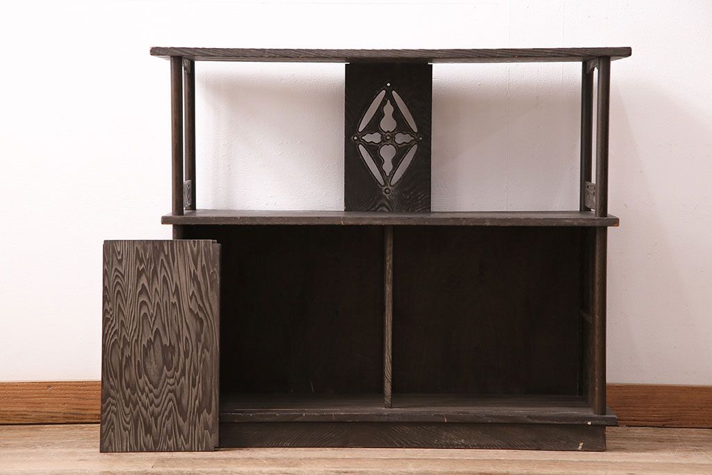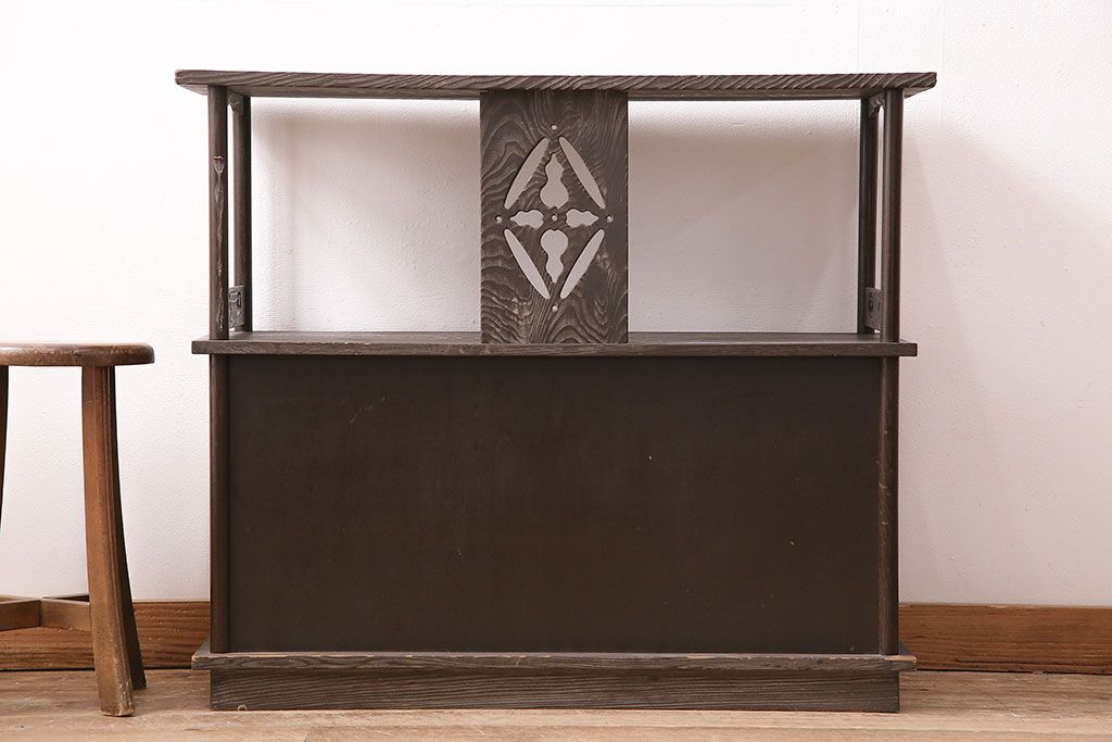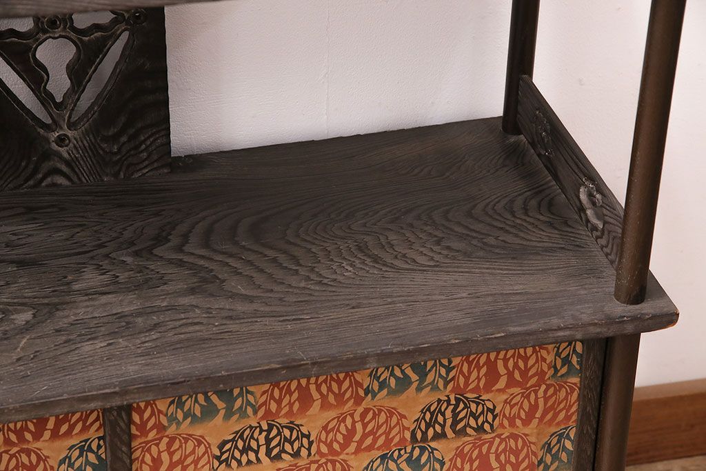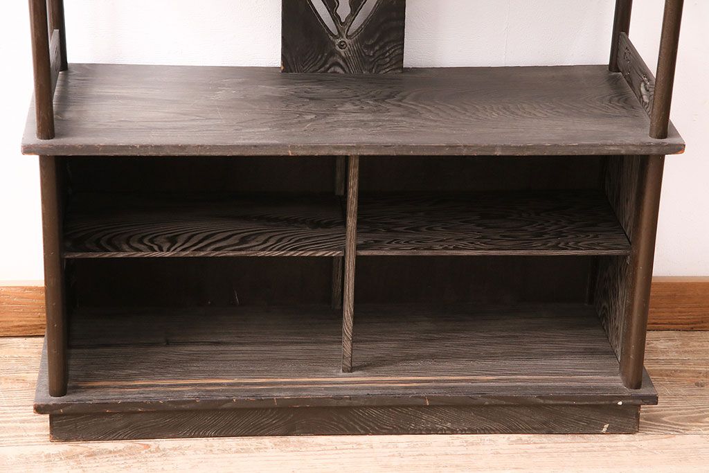 和製ビンテージ 高級杉材 独特の趣が感じられる浮造り仕上げの飾り棚(茶棚、陳列棚)(R-047801)