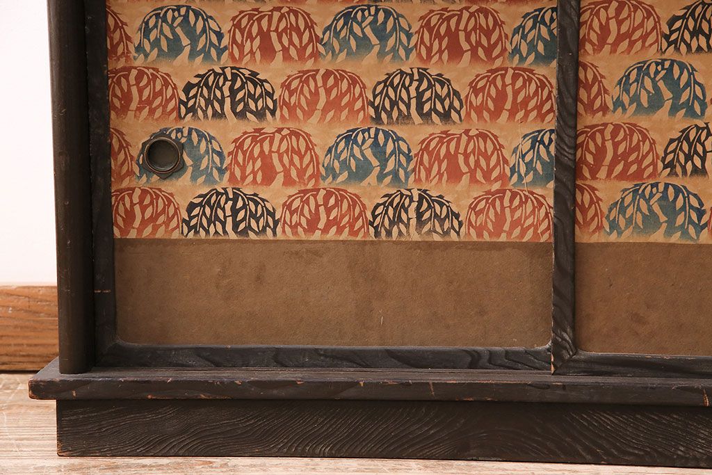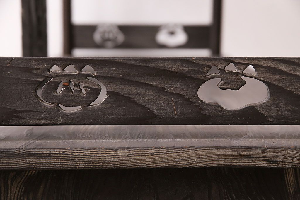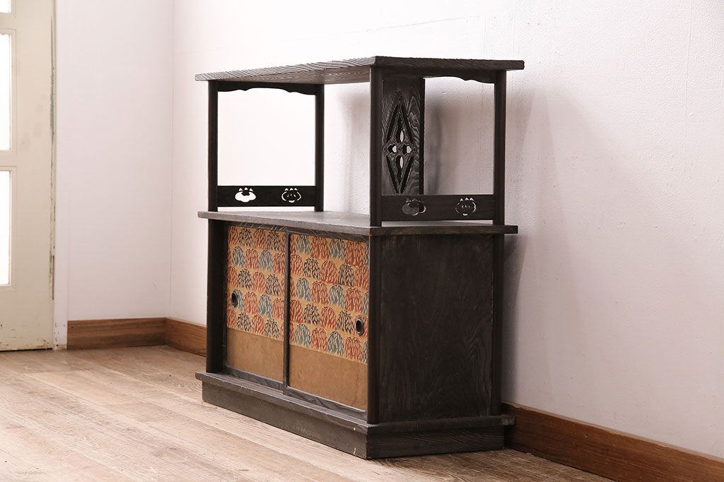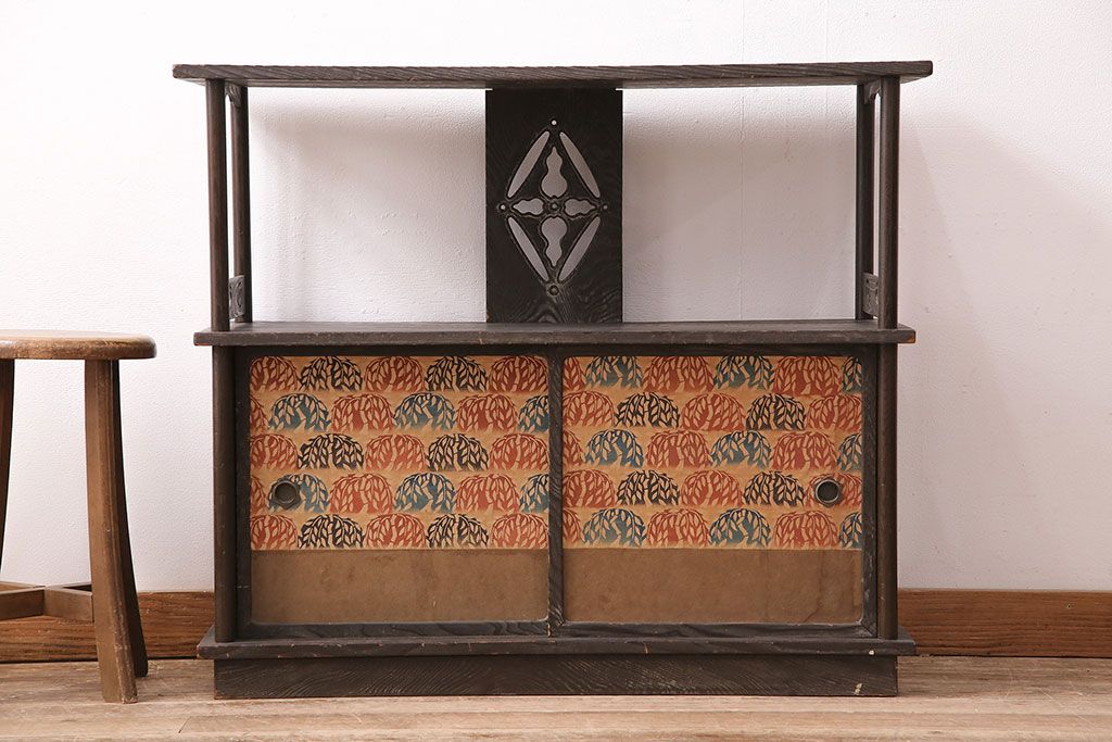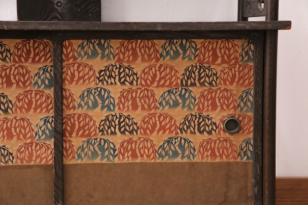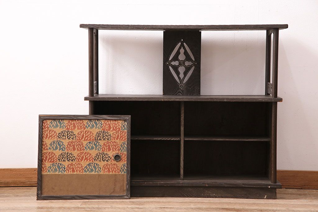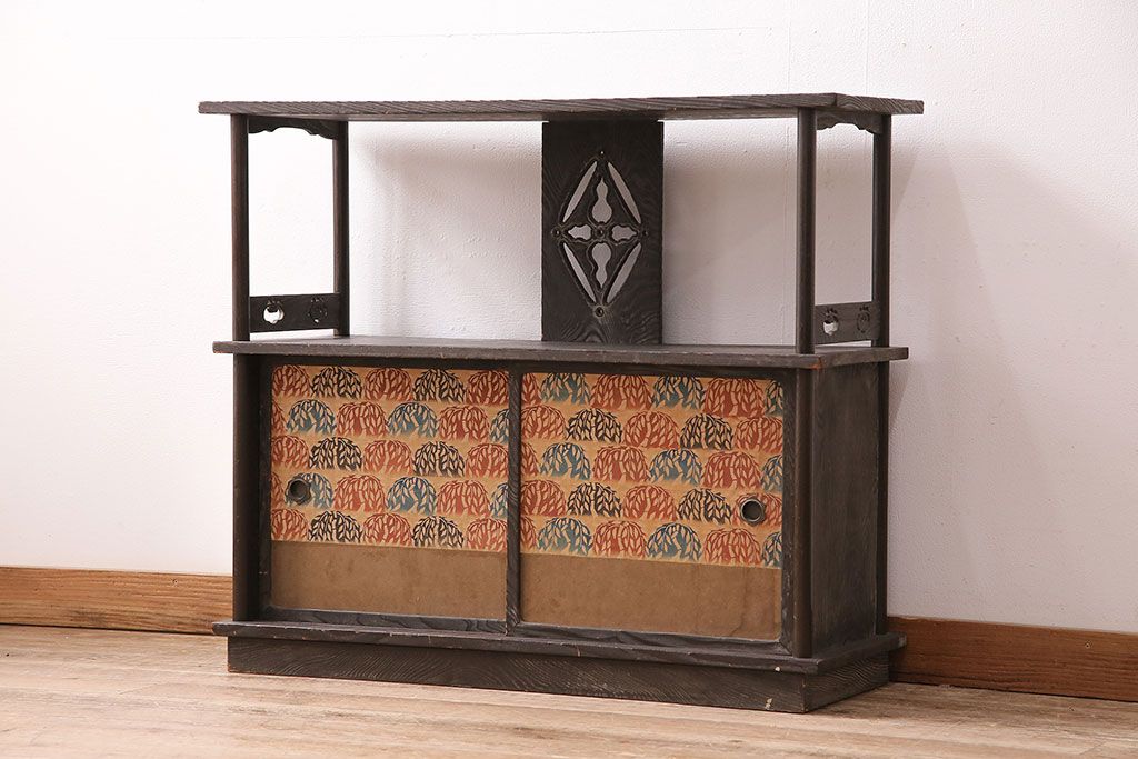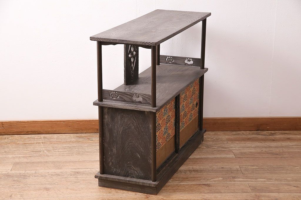 和製ビンテージ 高級杉材 独特の趣が感じられる浮造り仕上げの飾り棚(茶棚、陳列棚)(R-047801)