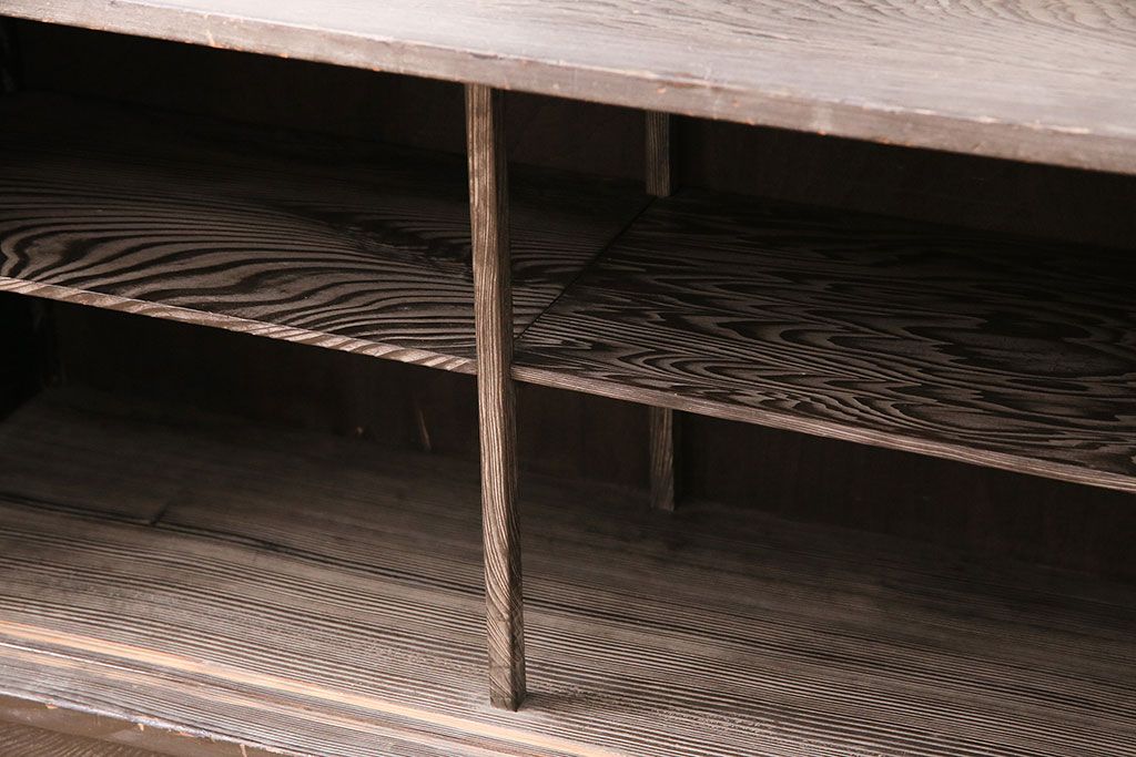 和製ビンテージ 高級杉材 独特の趣が感じられる浮造り仕上げの飾り棚(茶棚、陳列棚)(R-047801)です。